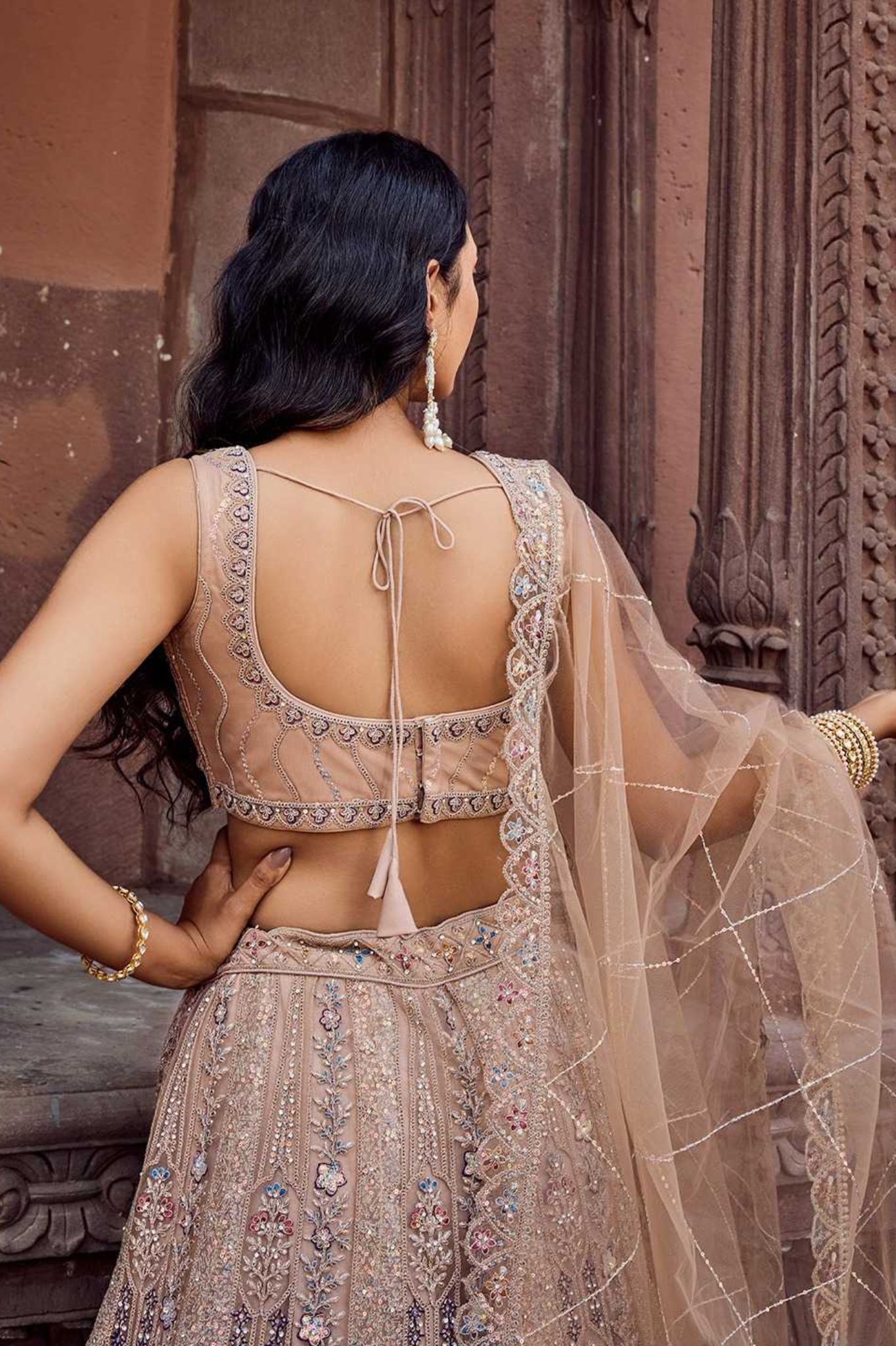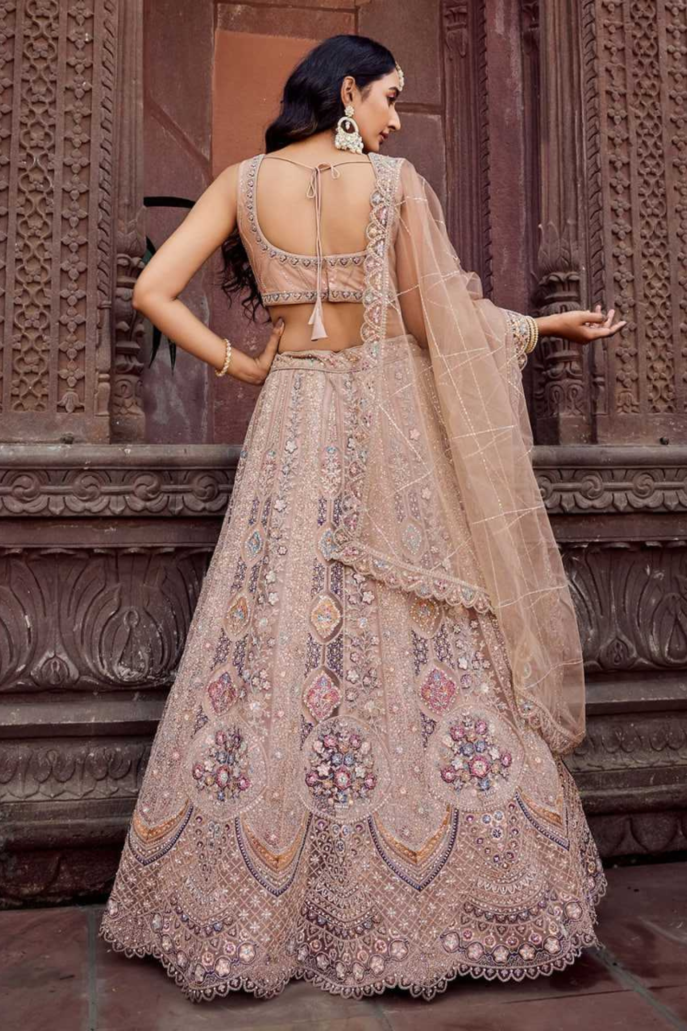 Crafted for the bride and bridesmaid who love soft, dreamy and royal tones — this lehenga set delivers unmatched elegance and guarantees a breathtaking entrance at any celebration.