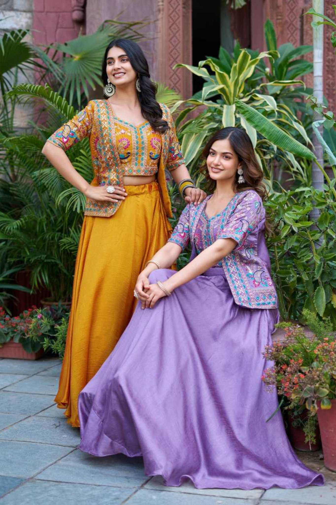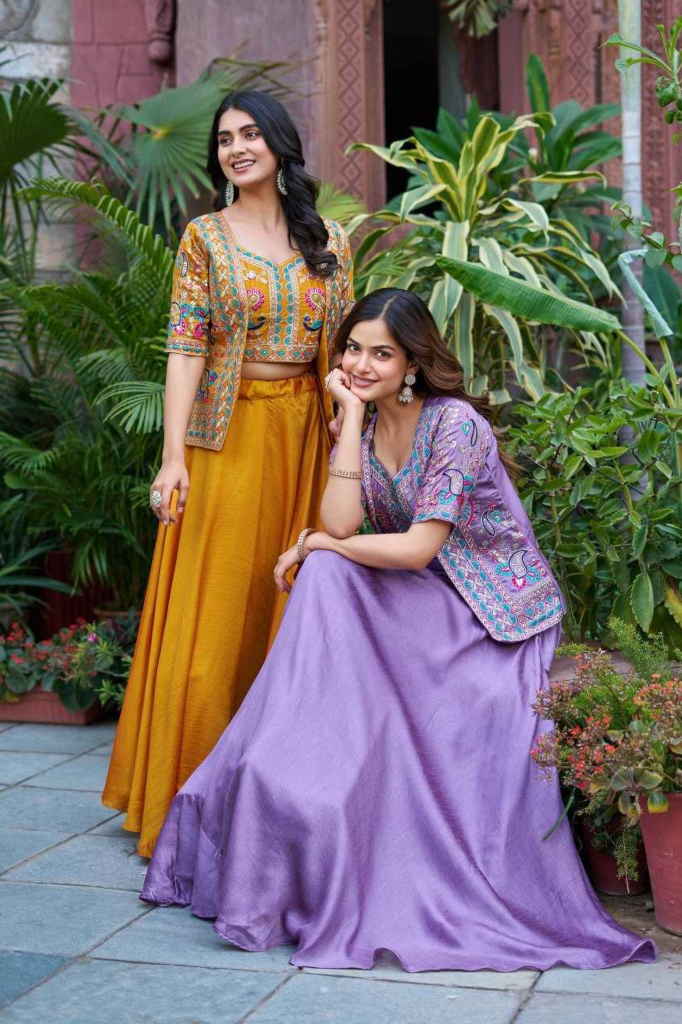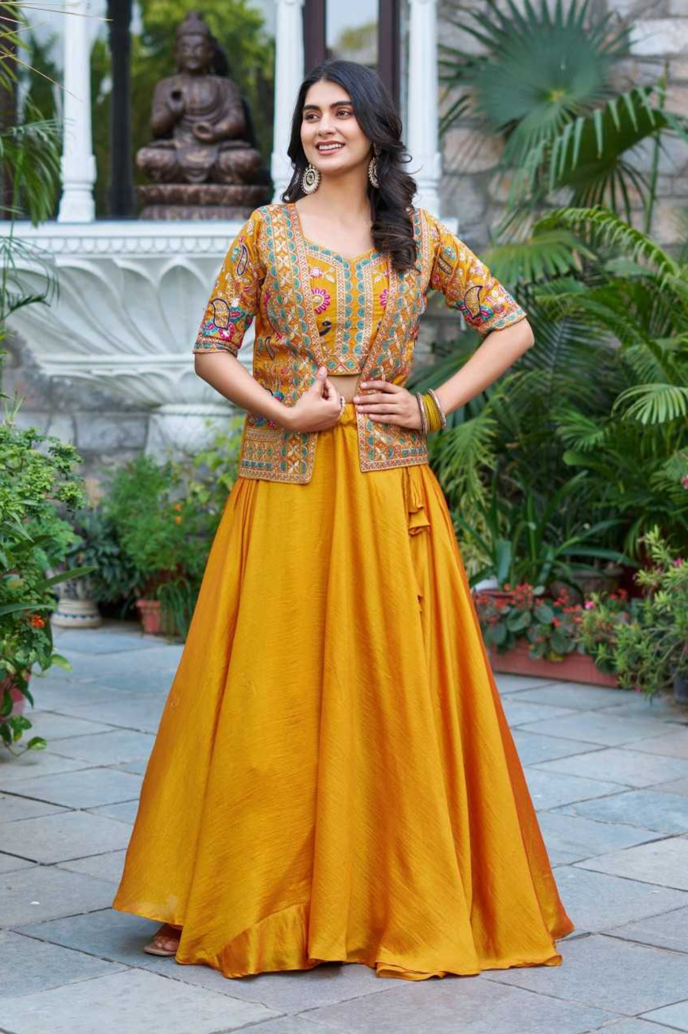 Mustard Glow Vichitra Silk Lehenga with Embroidered Koti