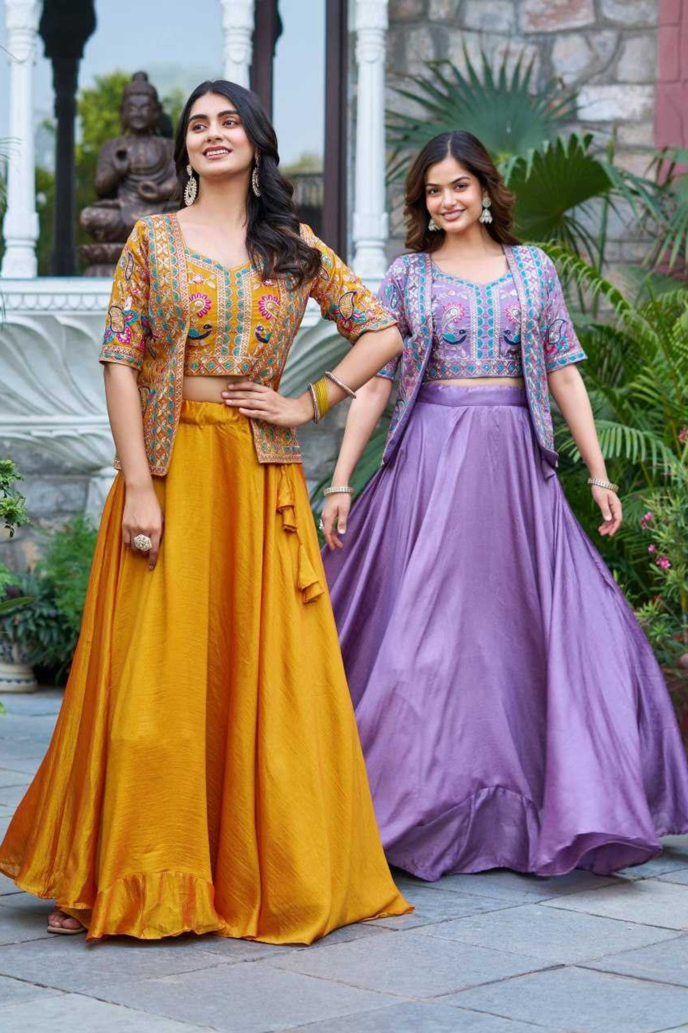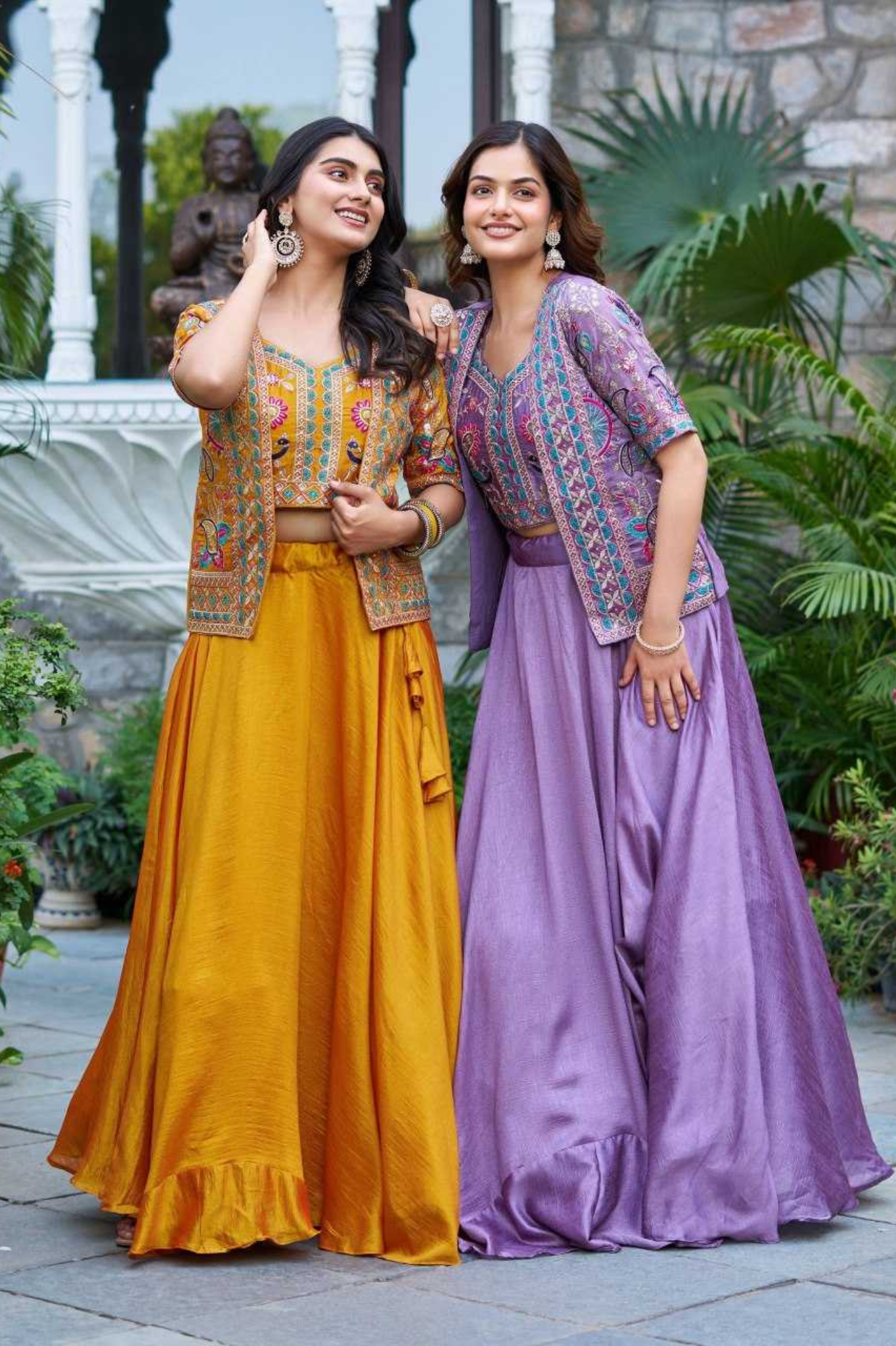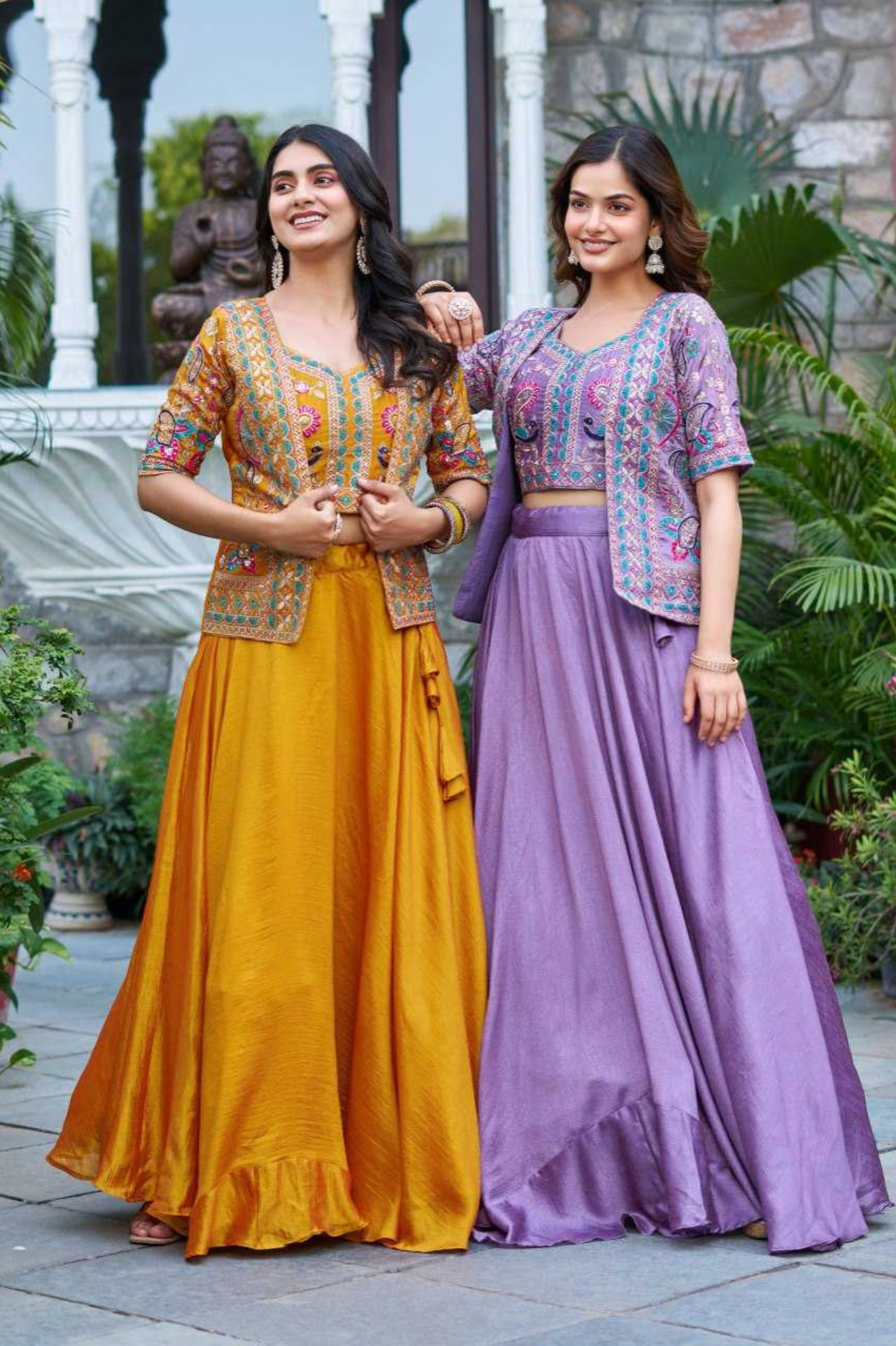 Mustard Glow Vichitra Silk Lehenga with Embroidered Koti