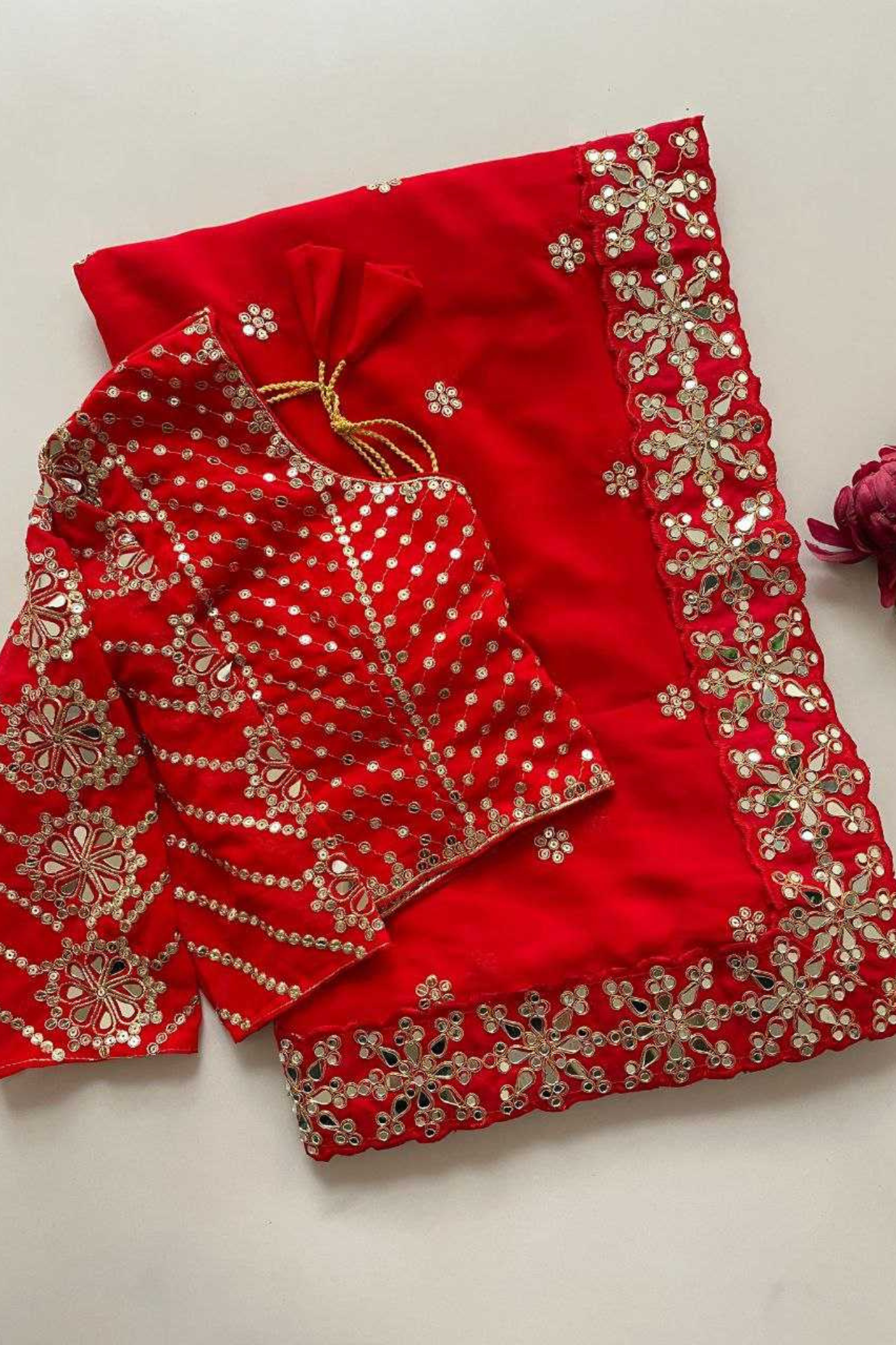 Red Faux Georgette Saree with Heavy Sequin Embroidery and Mirror Lace Border