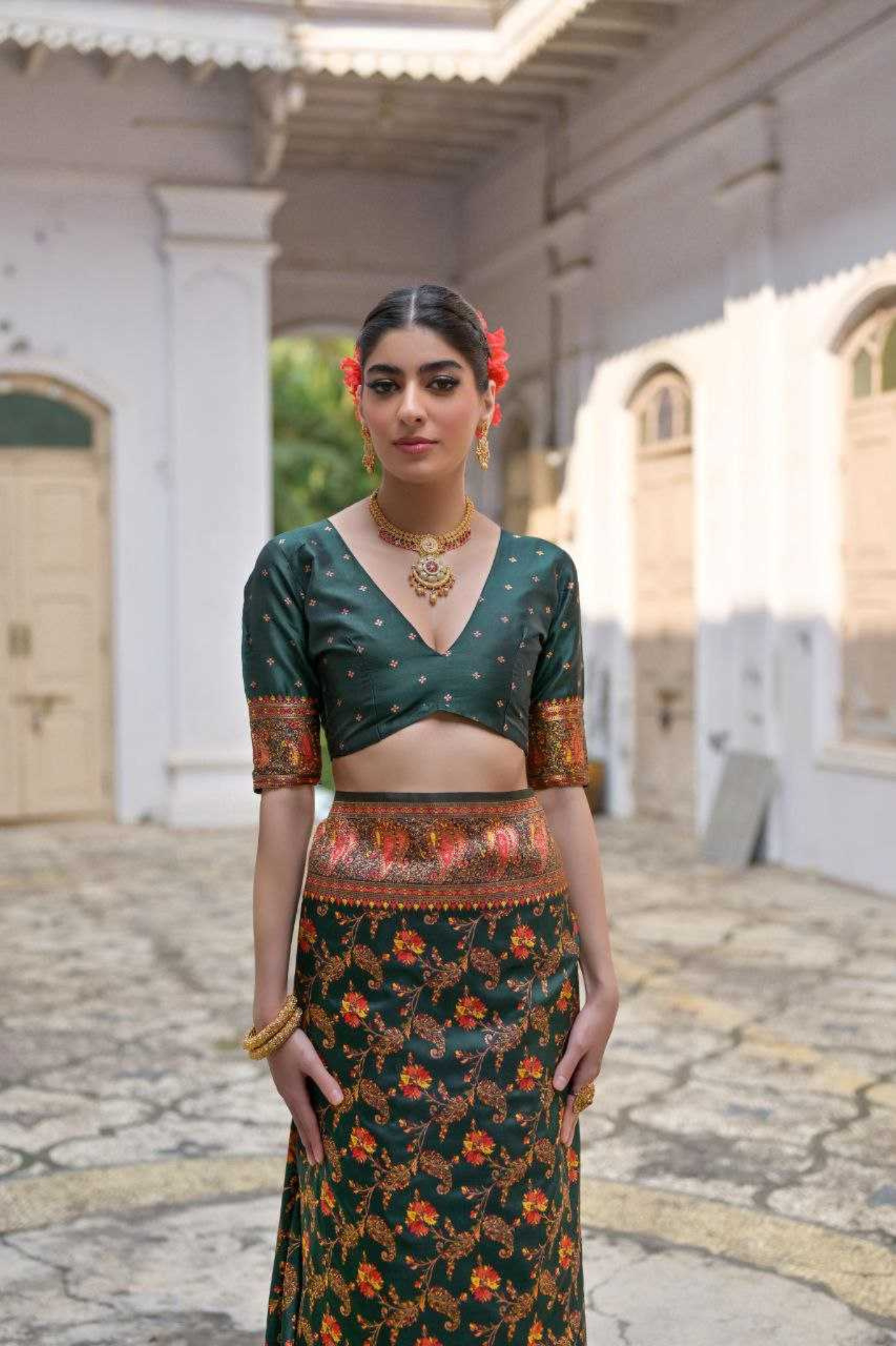 Dark Green Extra Soft Pashmina Silk Saree with Kashmiri Jal Weaving & Zari-Meena Work