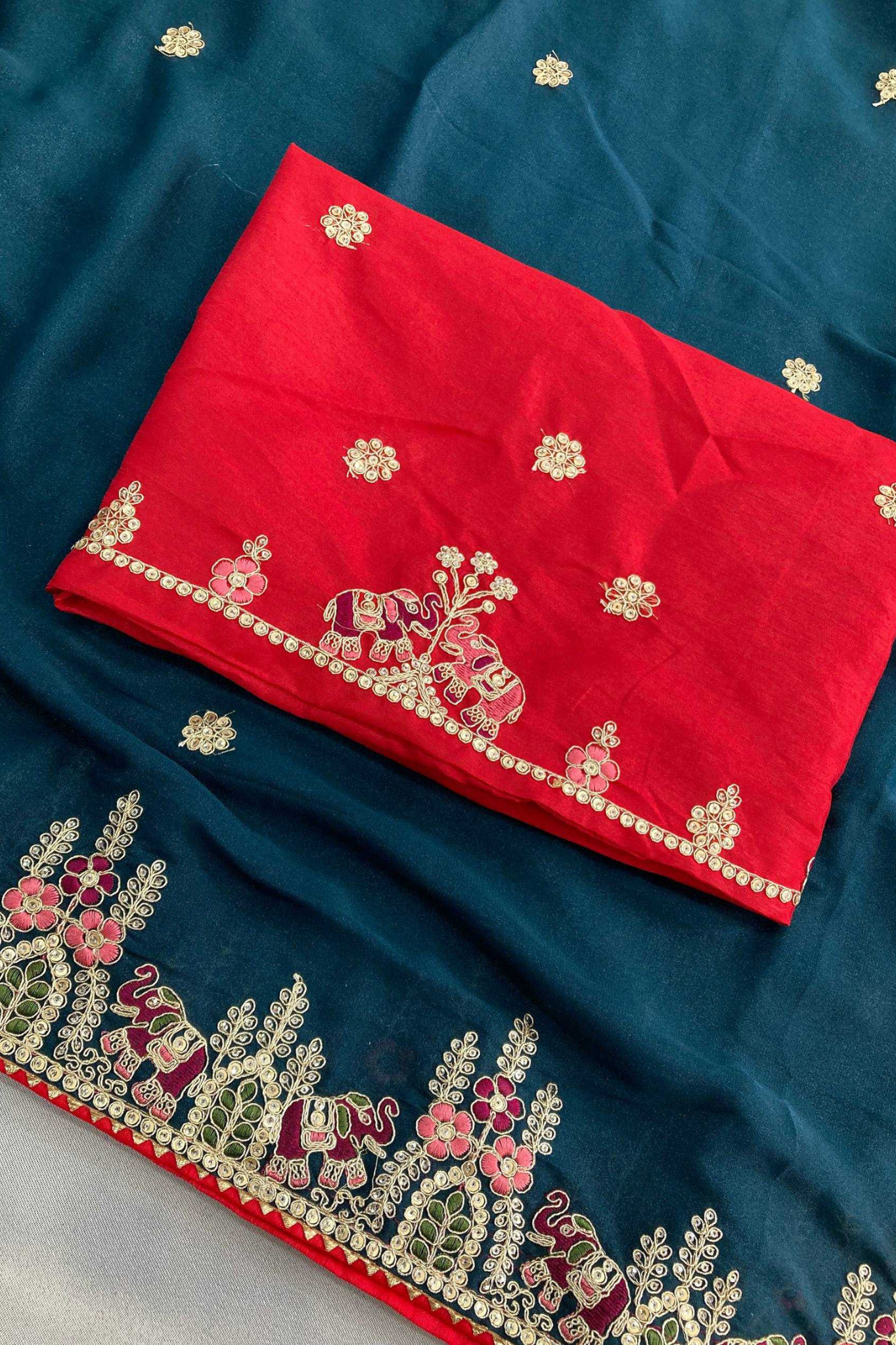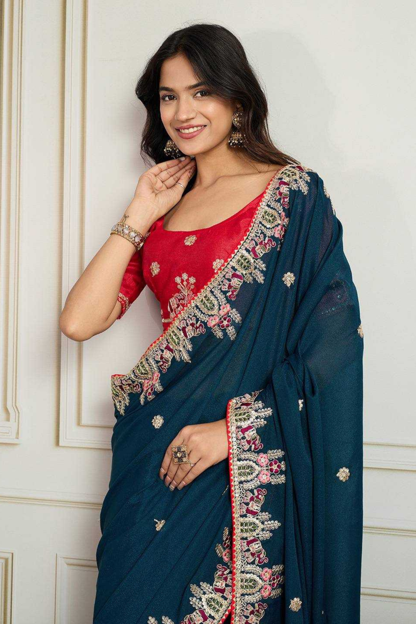 Looking for a stunning saree in this same vibrant shade for weddings and festive occasions? This premium Soft Star Georgette Saree is designed with exquisite C-pallu embroidery buttas and a piping border, offering a luxurious blend of modern charm and timeless craftsmanship.
