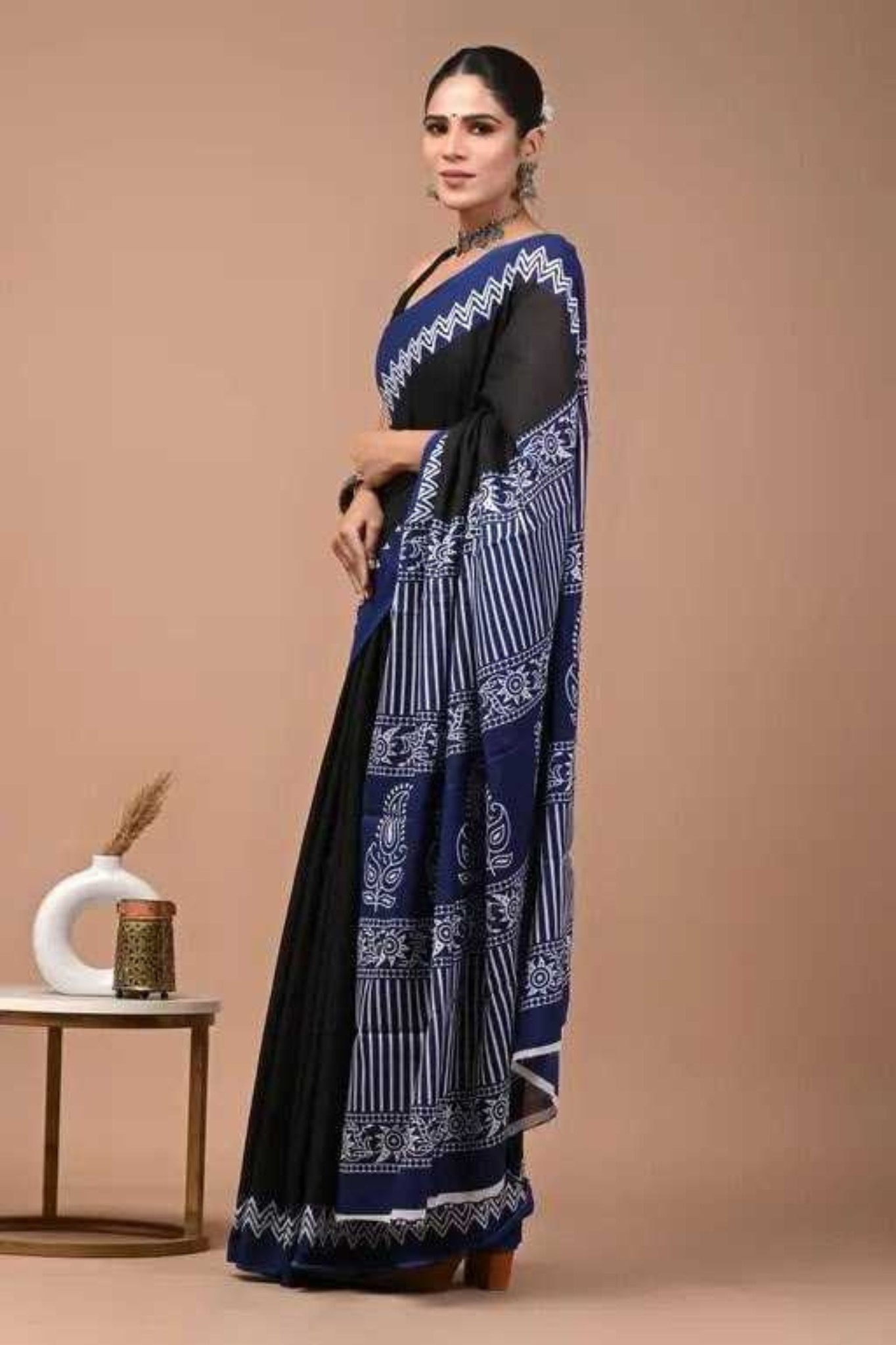 This stunning saree is crafted from premium plain linen fabric, offering a perfect blend of comfort and sophistication. Featuring a contemporary digital print that enhances its classic charm, this saree is designed for women who appreciate minimal elegance with a touch of tradition. The contrasting blue pallu and intricate border detailing make it an ideal pick for festive occasions, office wear, and casual gatherings.