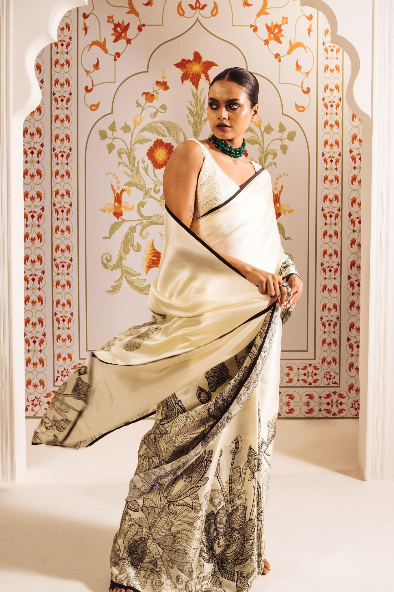 Premium Japan Satin Saree with Digital Print & Matching Blouse