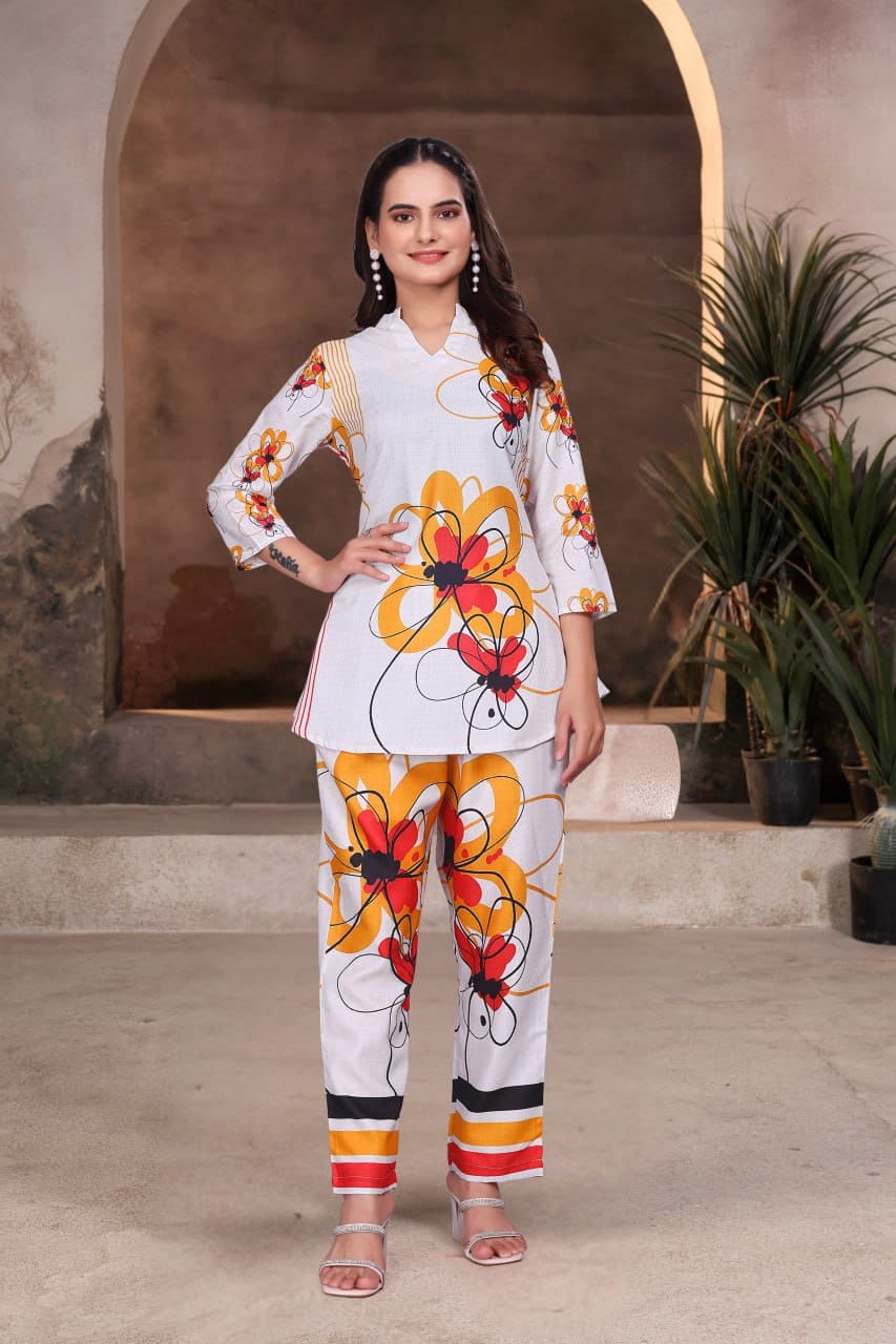 Bring energy and elegance to your wardrobe with the Sunburst Bloom Cotton Co-ord Set. Made from soft, breathable cotton, this set is designed for all-day comfort while keeping your look bold and chic.