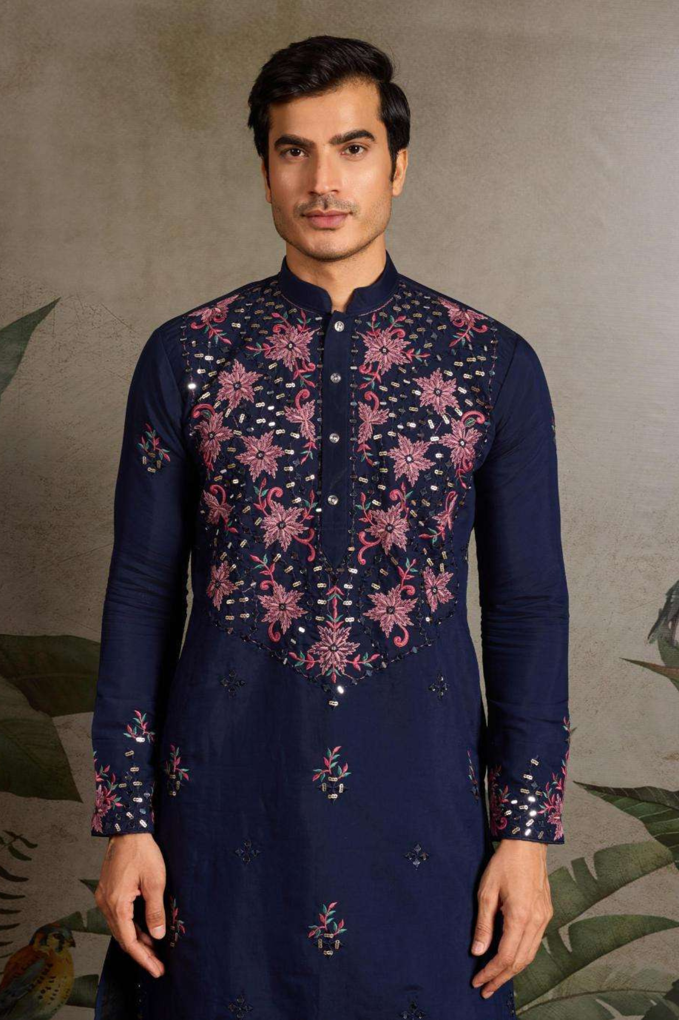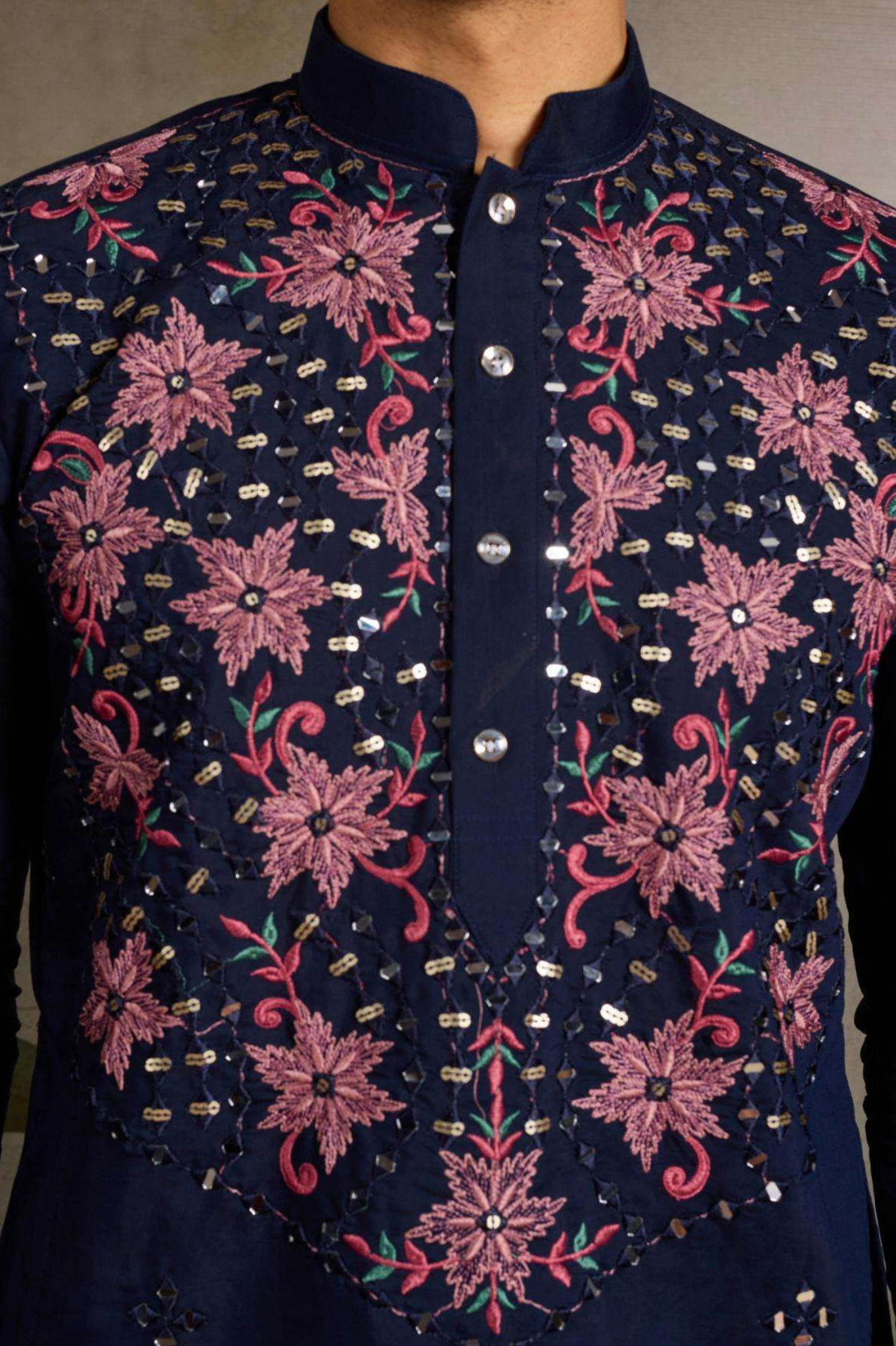 This Navy Blue Kurta Set is crafted for elegance and grandeur, featuring exquisite embroidery in floral patterns on the front...