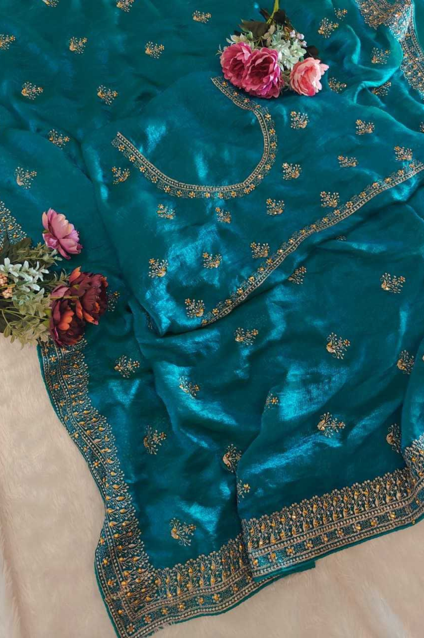 Soft Fancy Chiffon Saree with Zari Pallu & Hand Stone Work
