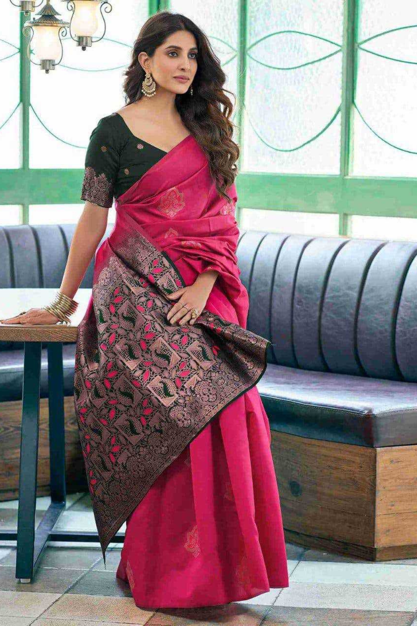 Deep Pink Lichi Silk Saree with Rich Pallu & Jacquard Weave