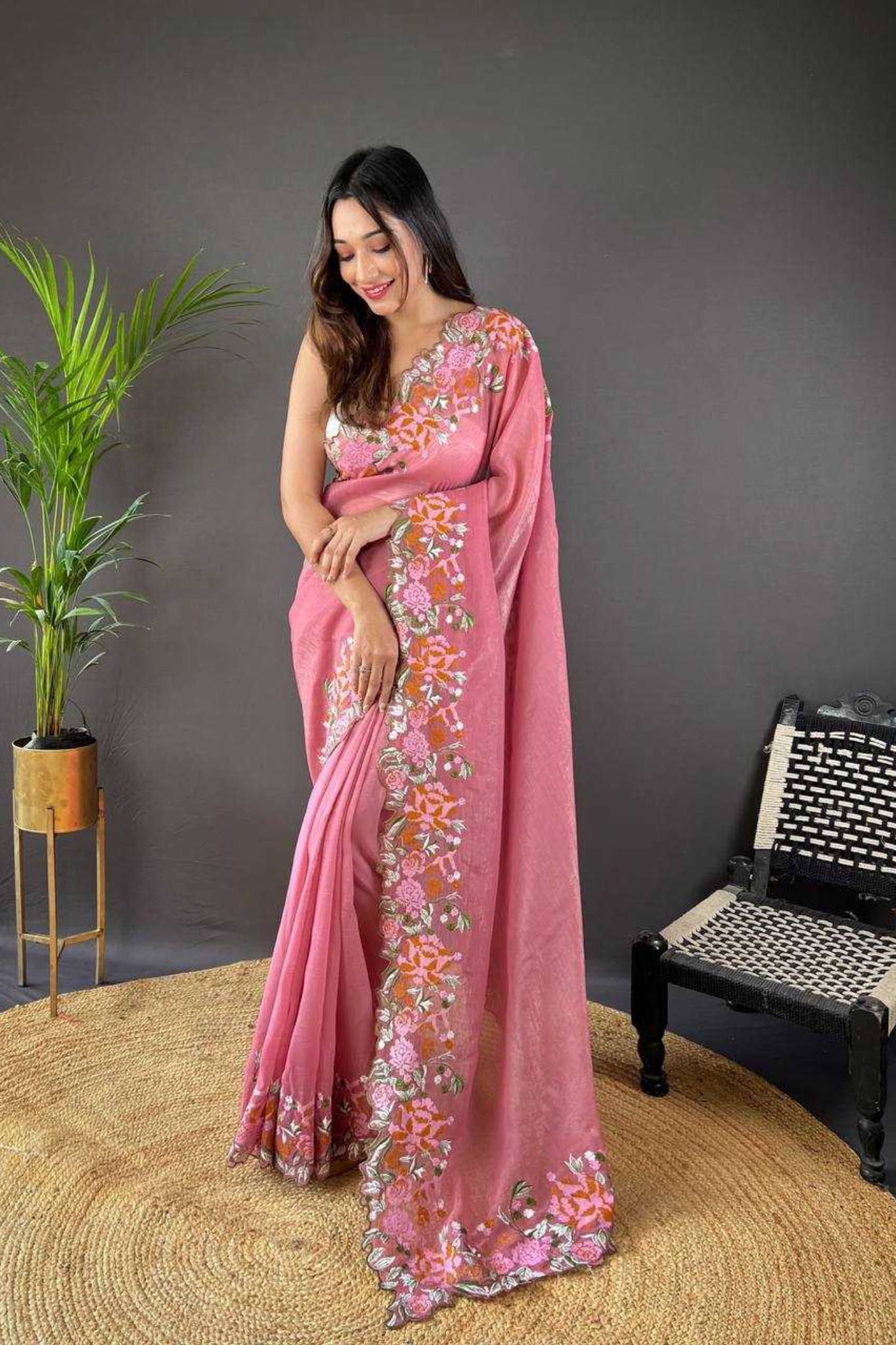 Experience timeless elegance with this Soft Glossy Silk Saree, beautifully detailed with designer cross-stitch floral embroidery along the border. The...
