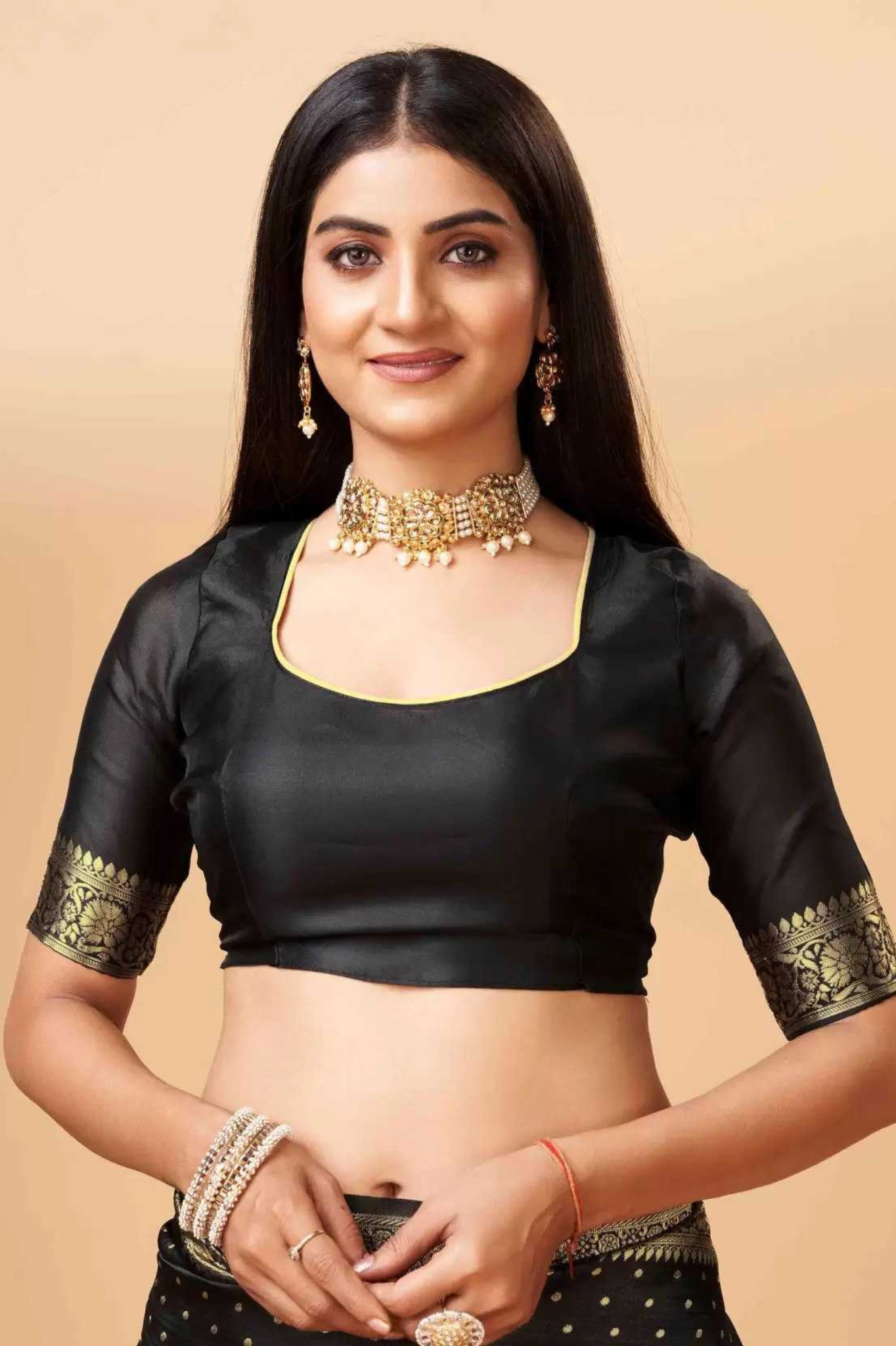 Blouse Fabric: Matching Art Silk with Zari Border (0.8 meters, unstitched)