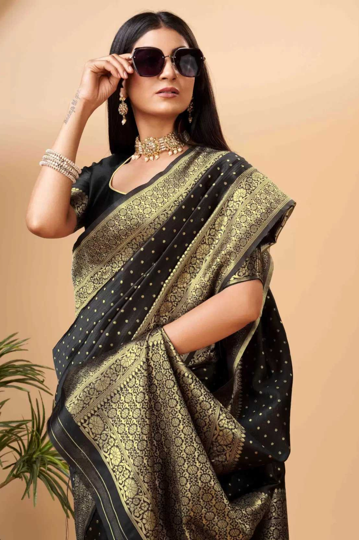 Elegant Black Banarasi Art Silk Saree with Golden Zari Work
