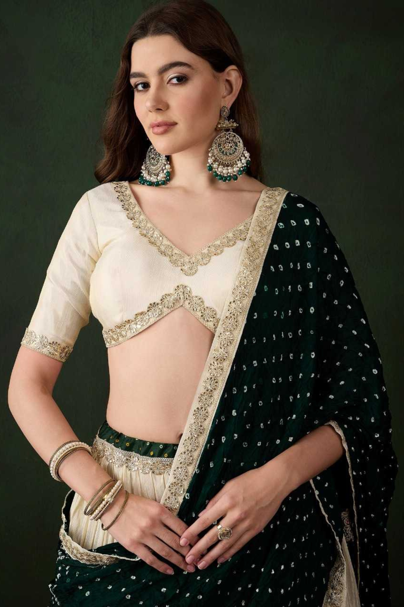 An elegant drape crafted from premium crunchy chiffon, this saree features a graceful scallop design with fine thread embroidery work, making it a timeless addition to your festive and wedding wardrobe. The satin digital print blouse complements the saree beautifully, adding a modern touch...