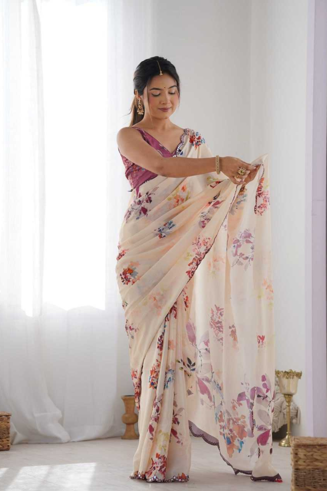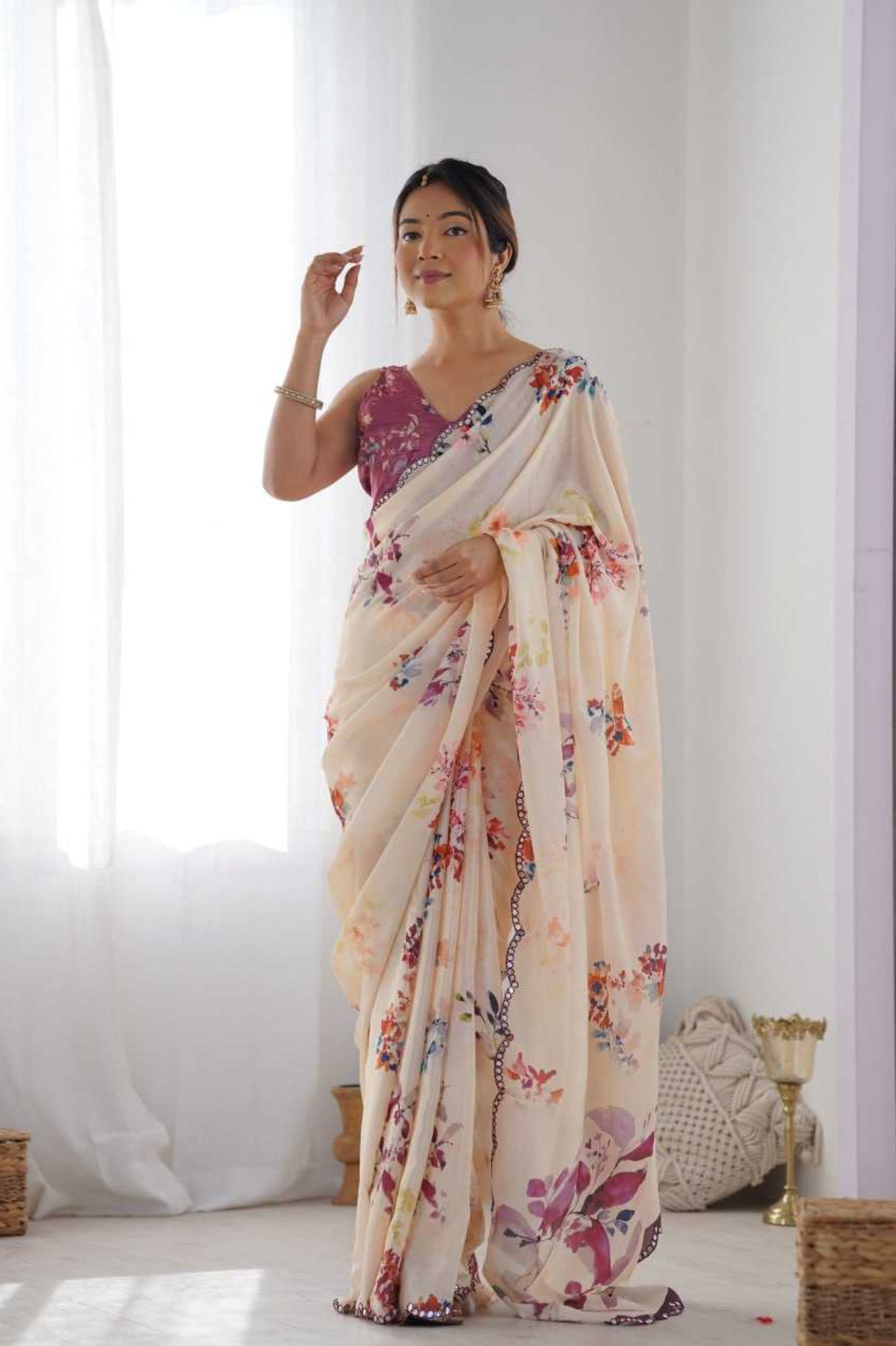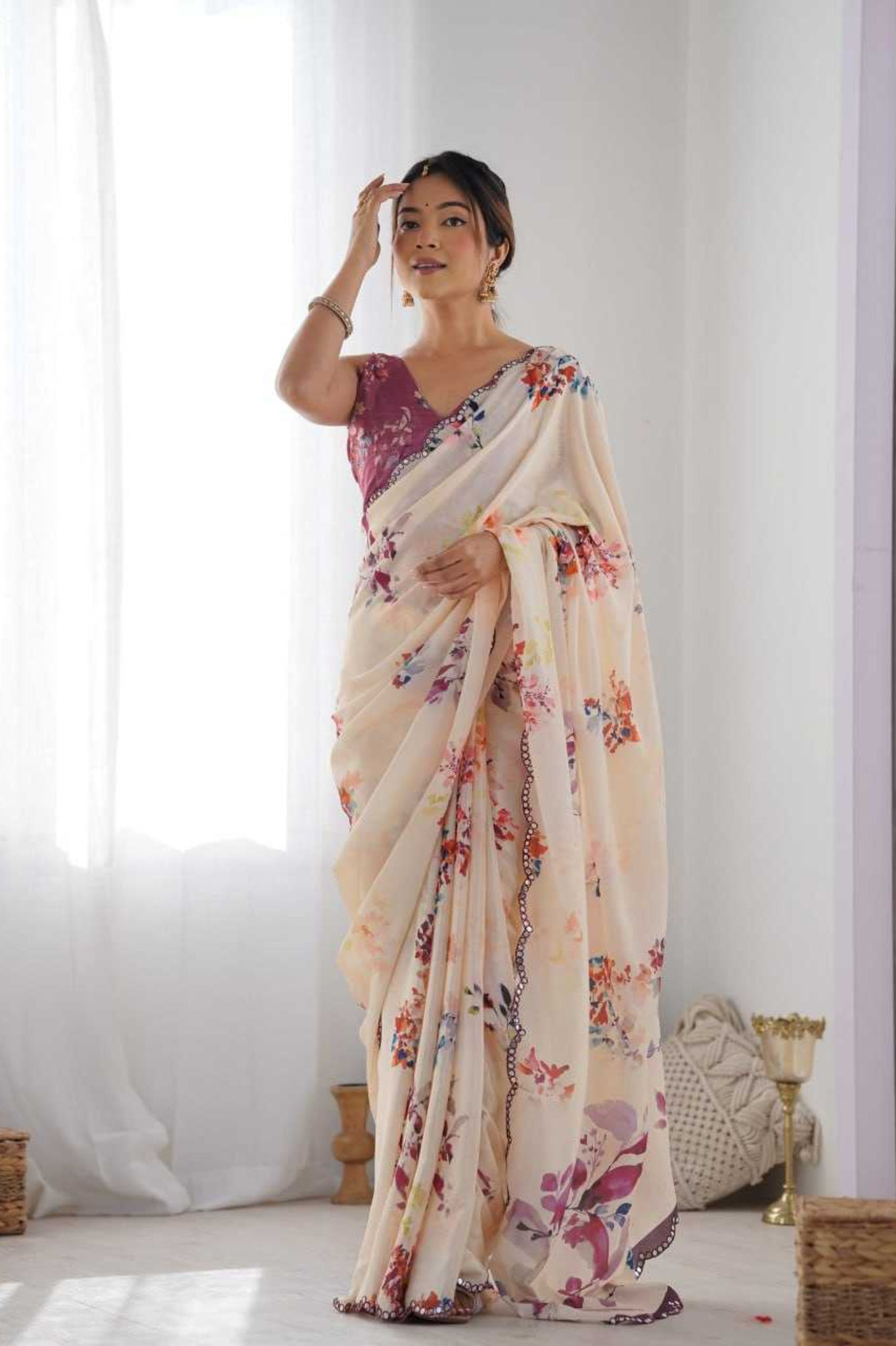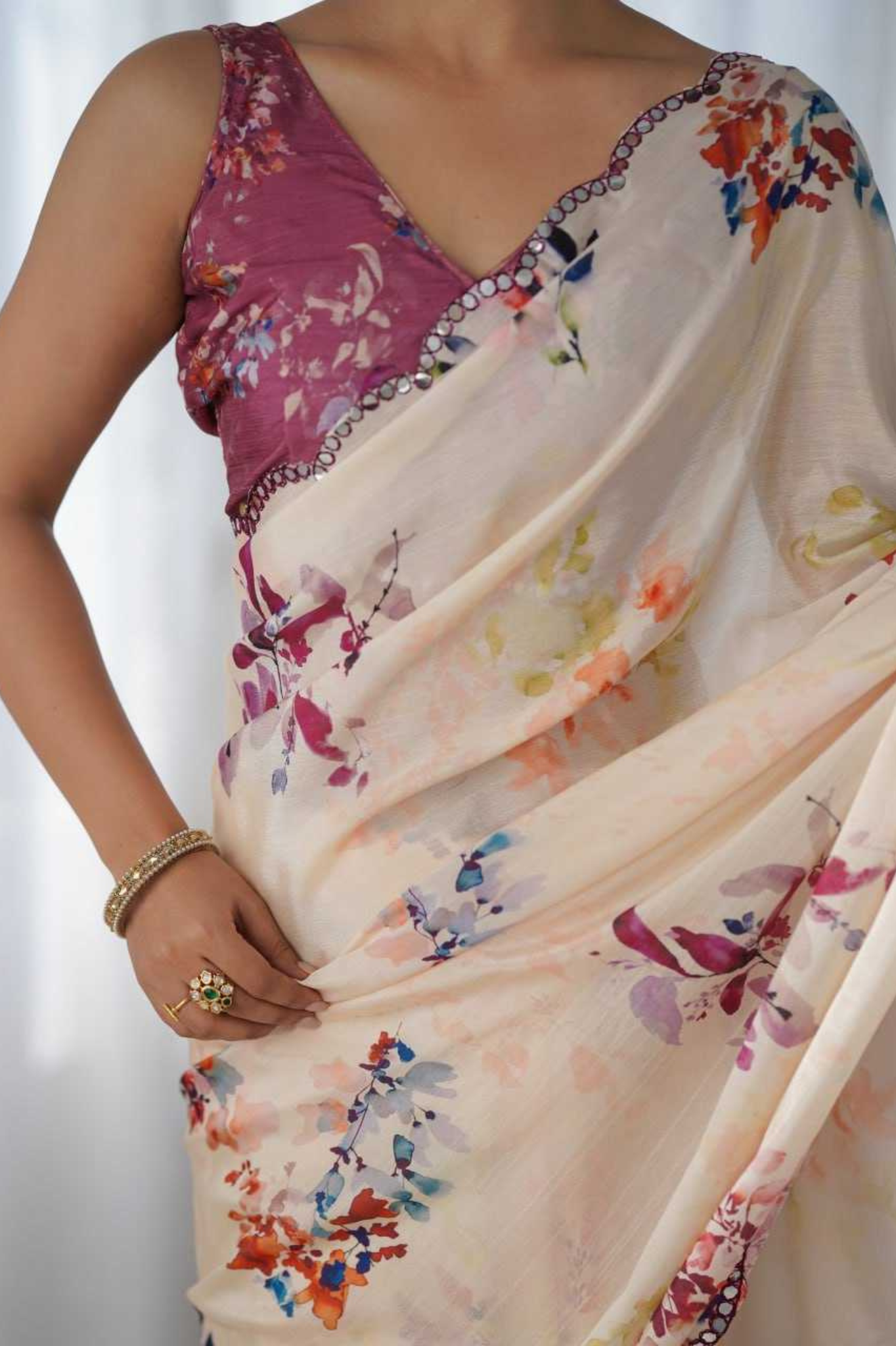 Light as air, lovely as a dream. Embrace effortless elegance with our Chiffon Saree, featuring floral prints kissed with a dainty pearl lace border. Whether it’s a festive brunch or a graceful evening look, this saree lets you float through the moment in soft...
