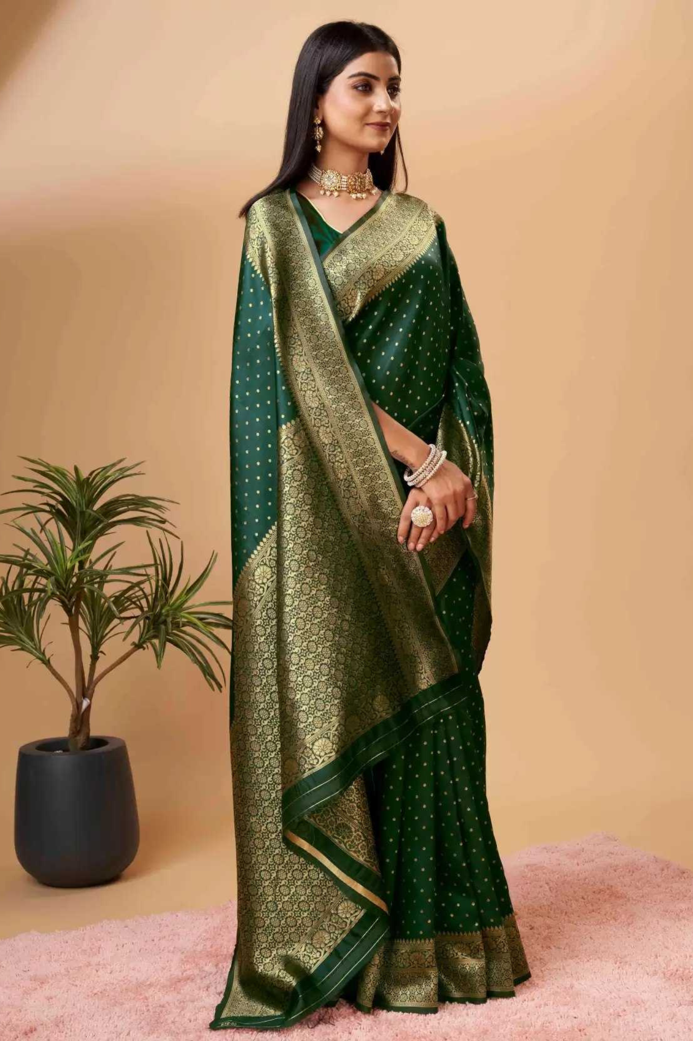 Elegant Green Banarasi Art Silk Saree with Golden Zari Work
