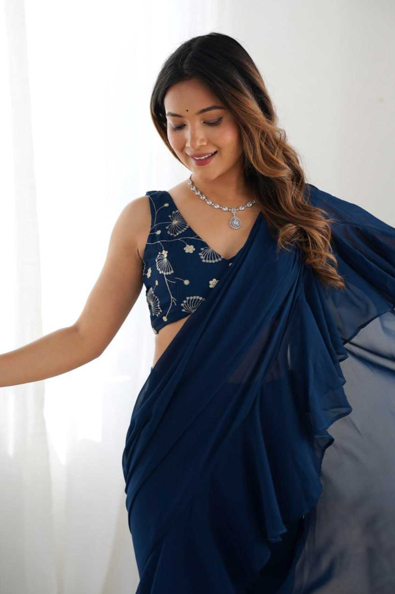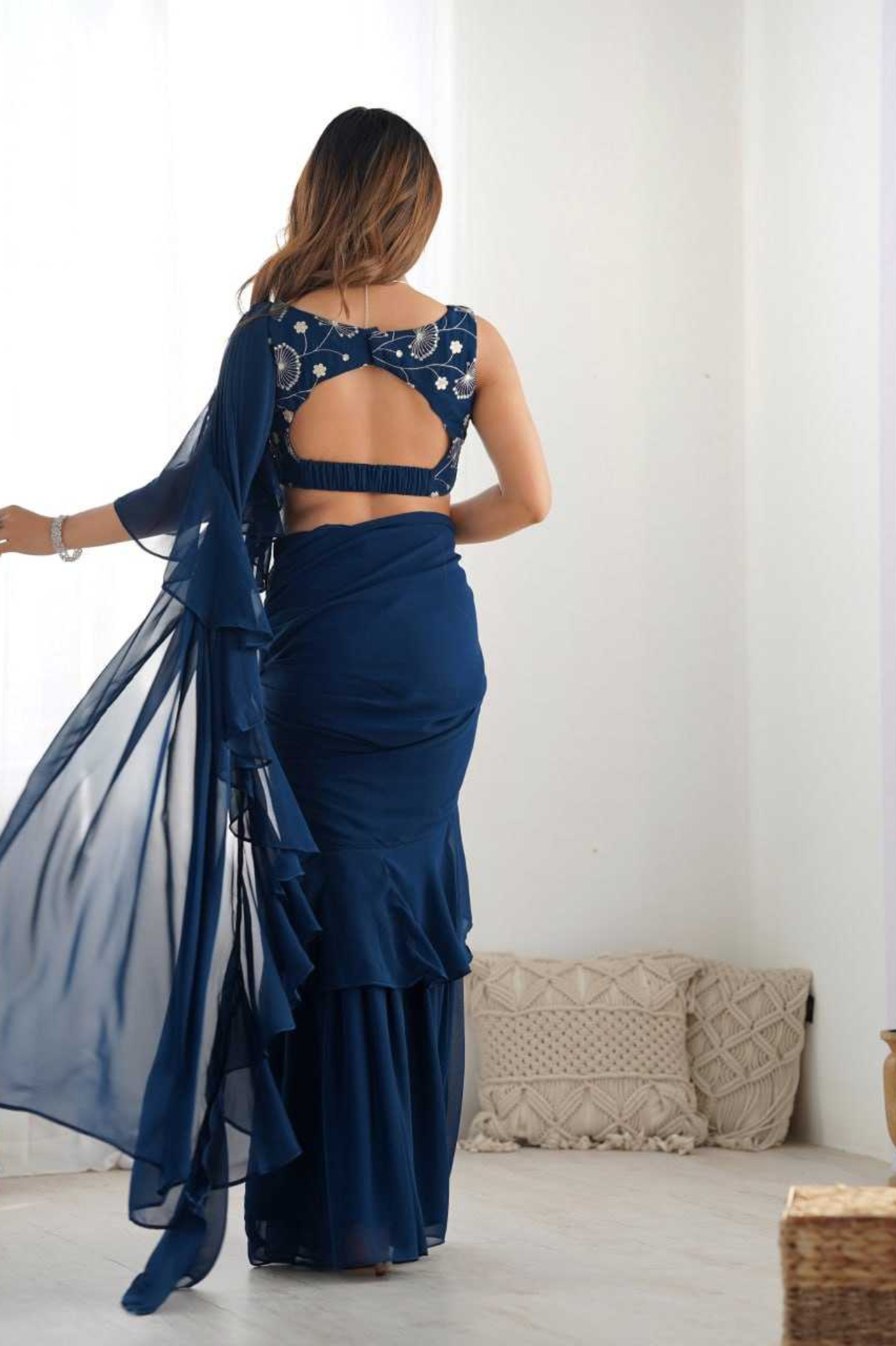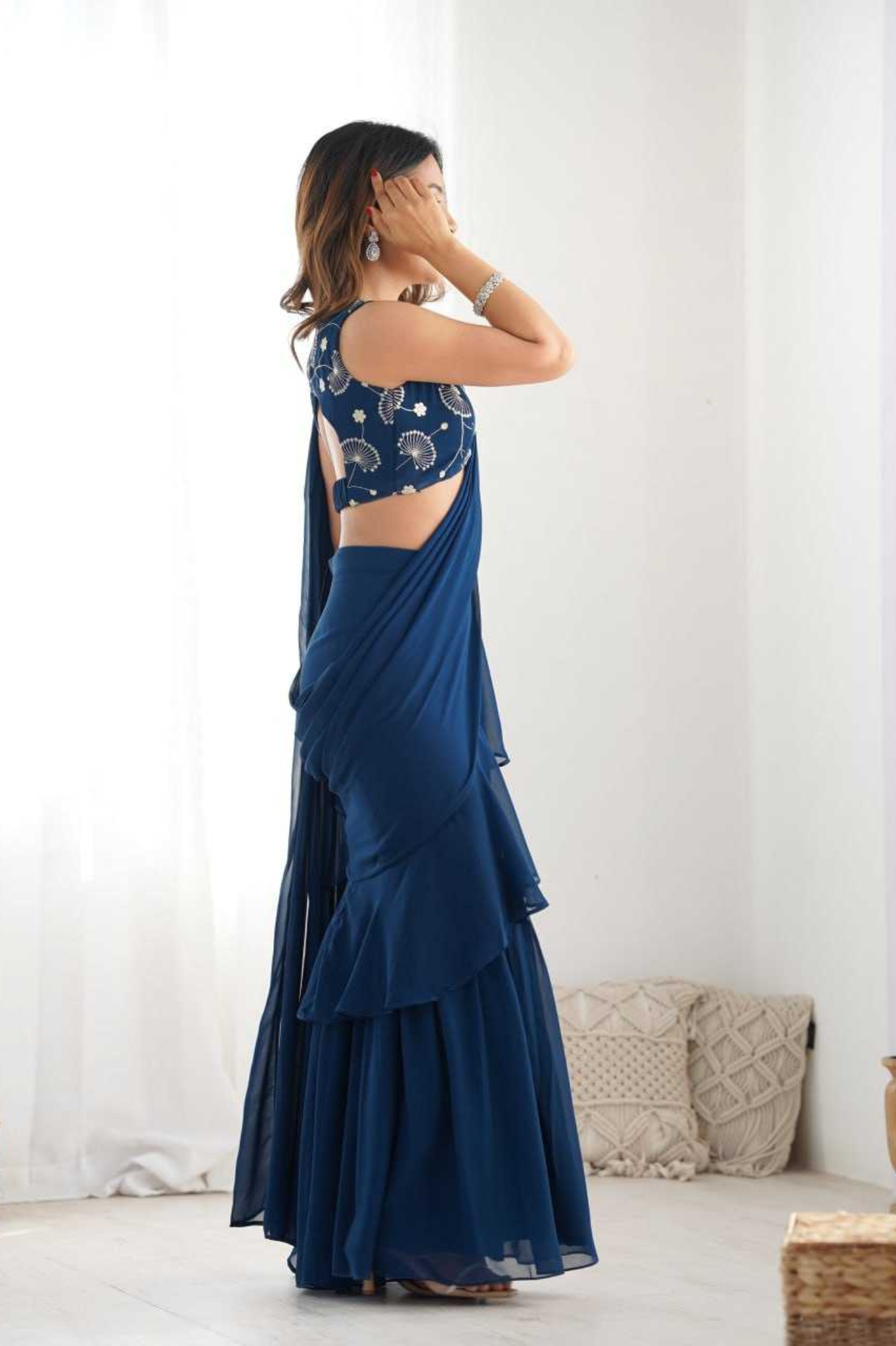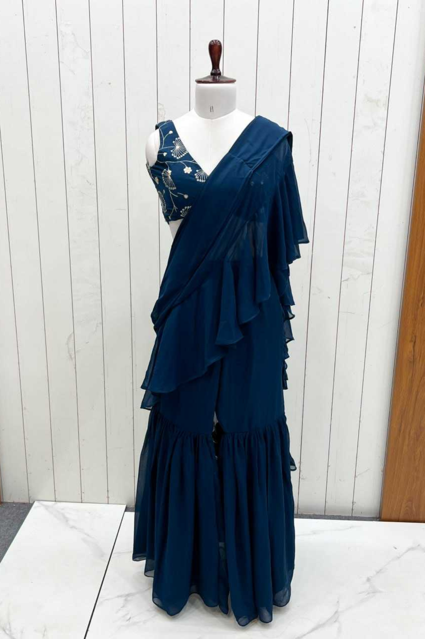 Elegant Navy Blue Pure Georgette Sharara Saree with Sequin Embroidered Blouse