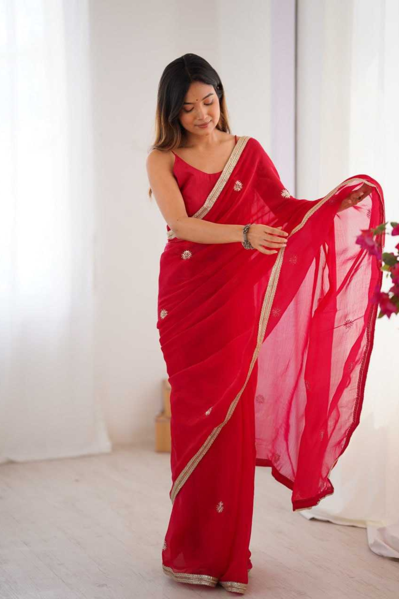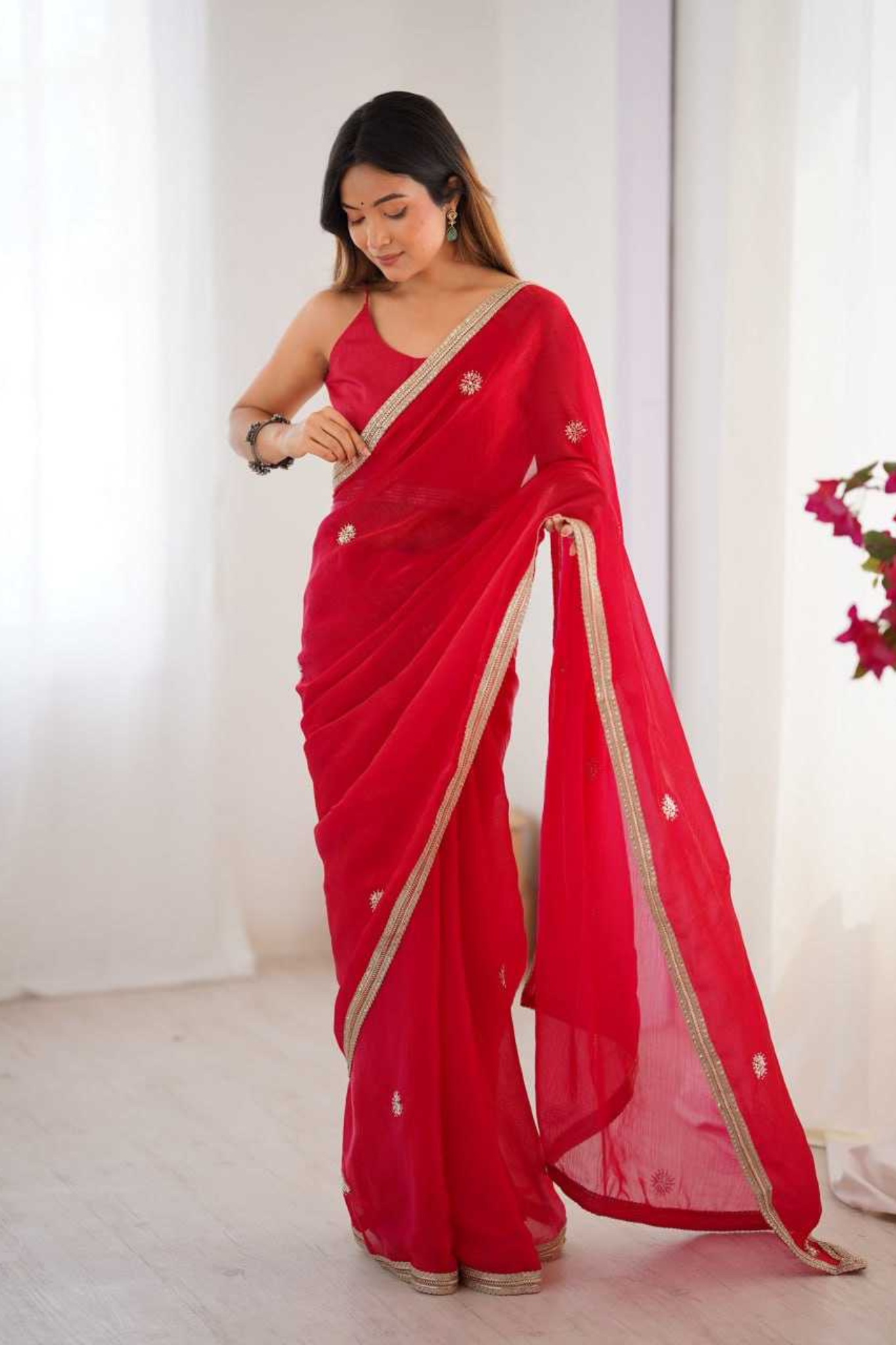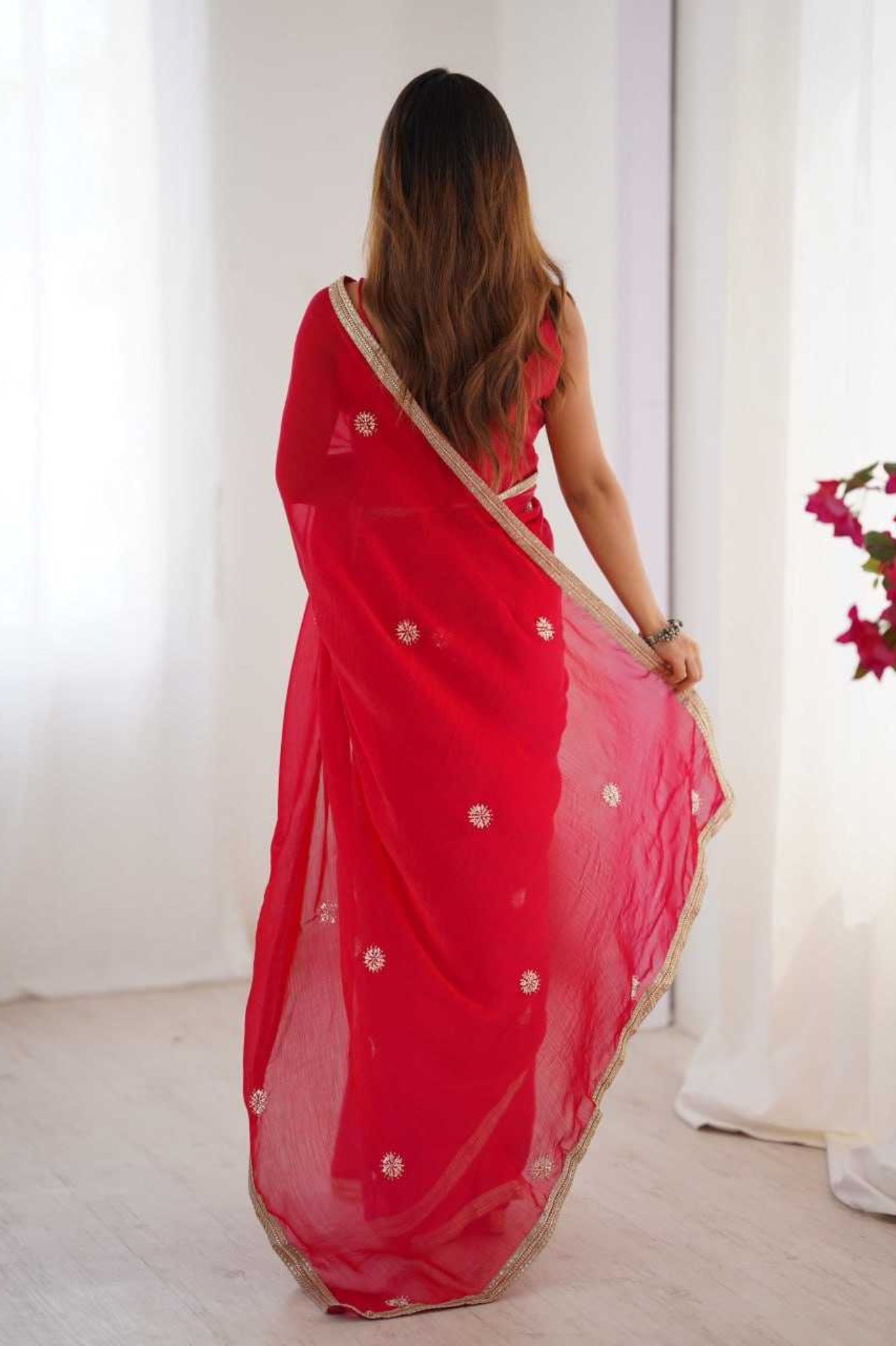 Elegant Red Fandy Saree with Beads & Sequin Embroidery