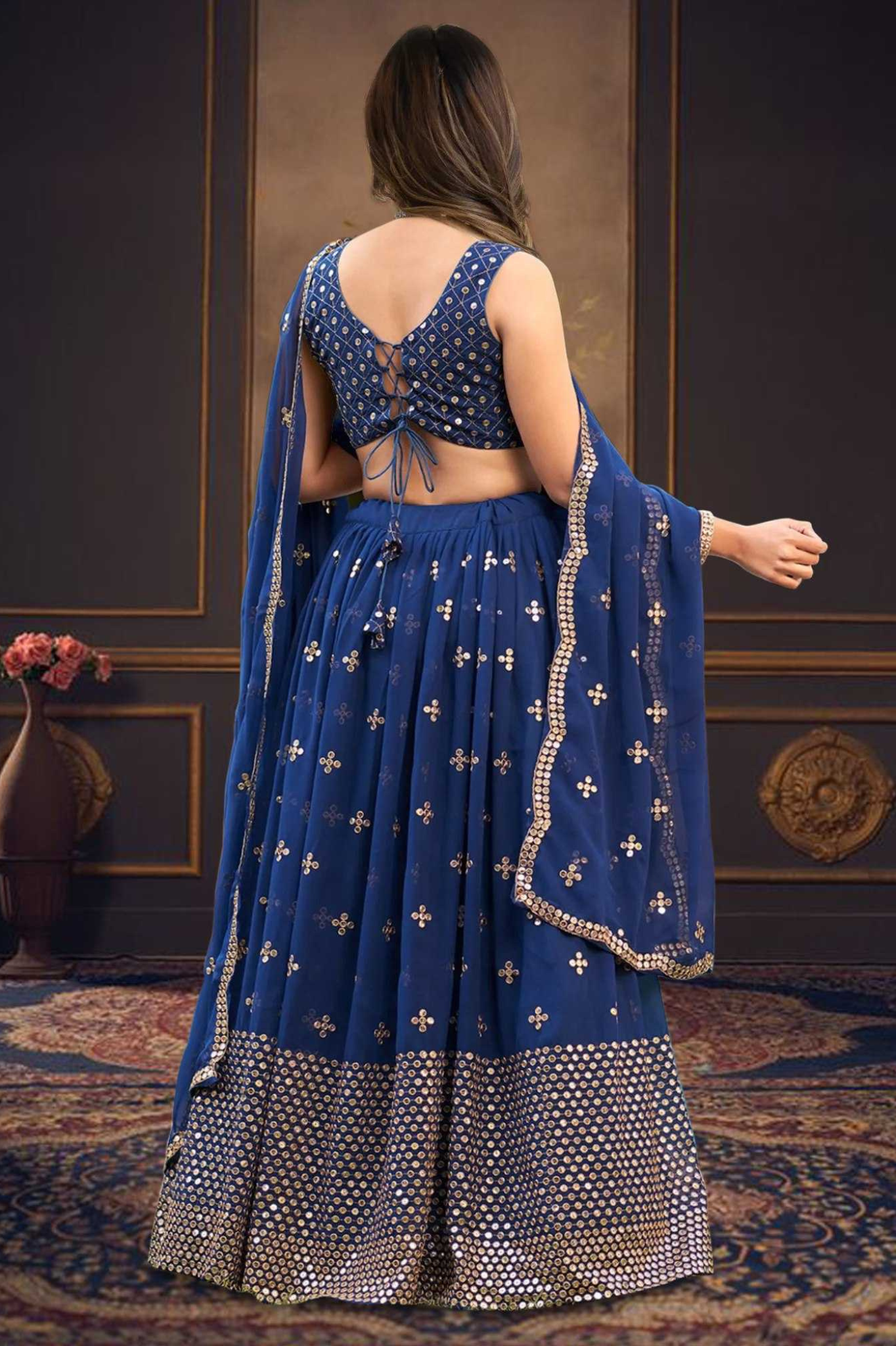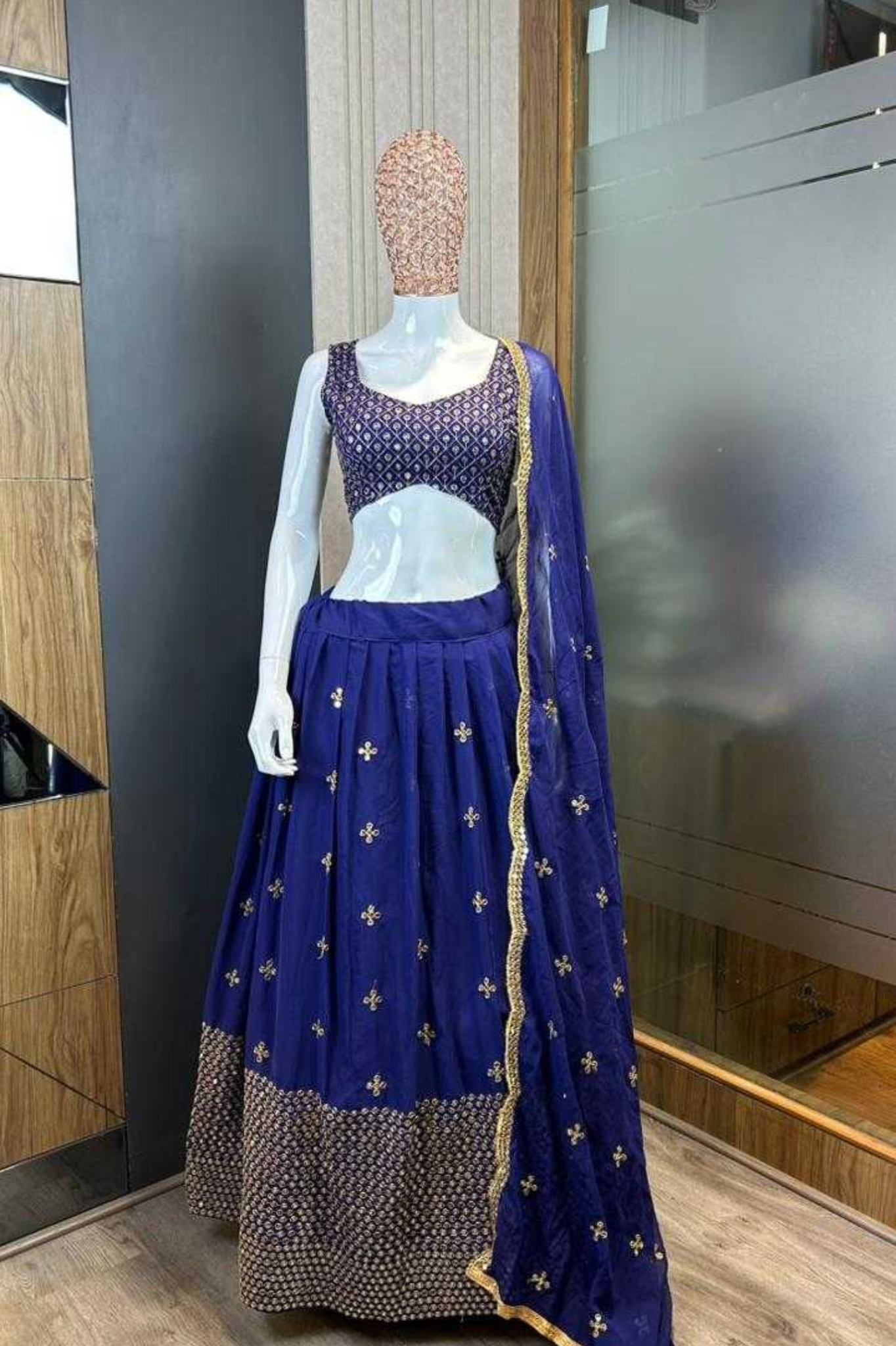 Embroidered Georgette Lehenga Choli with Dupatta – Blue Malay