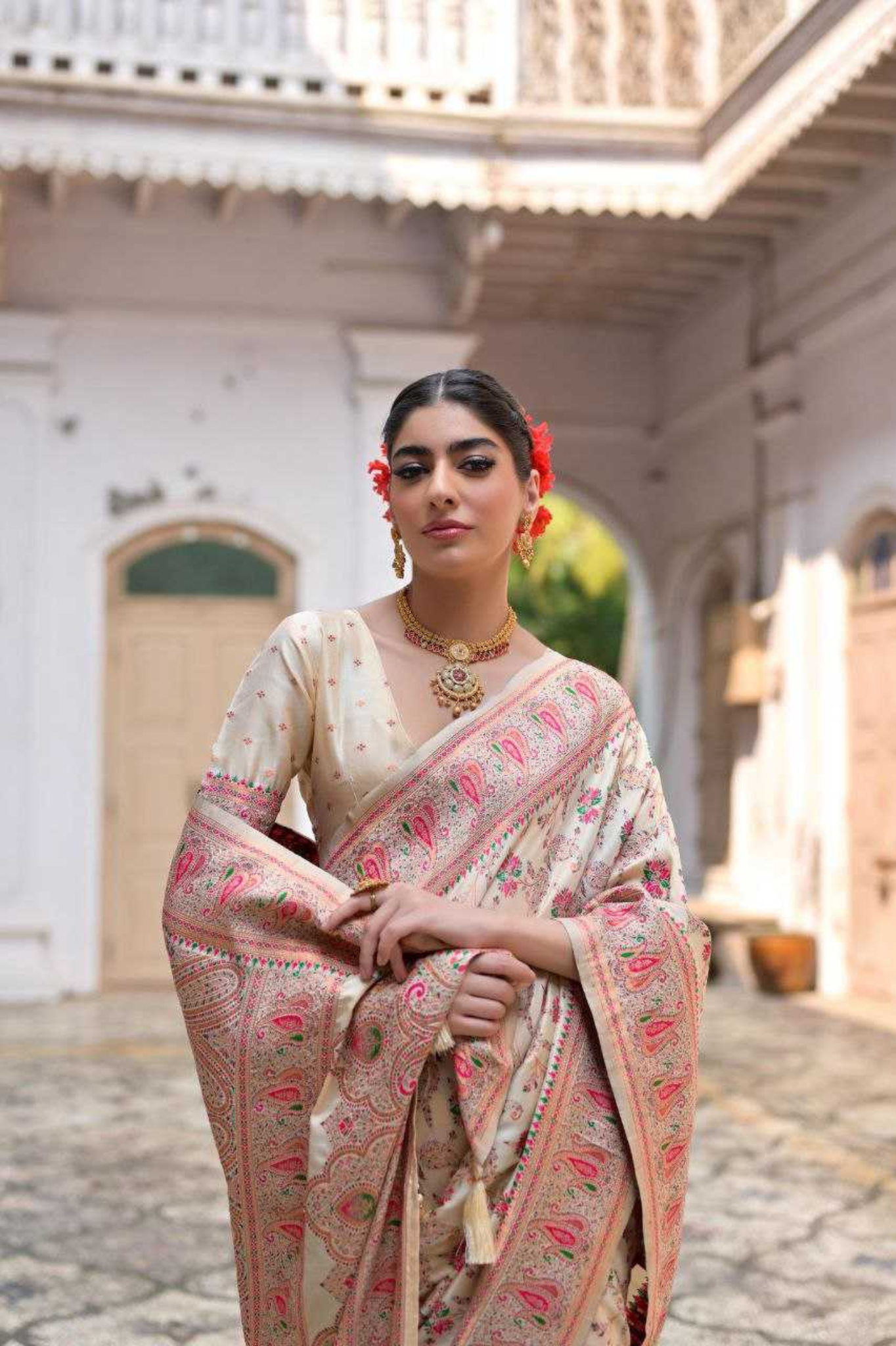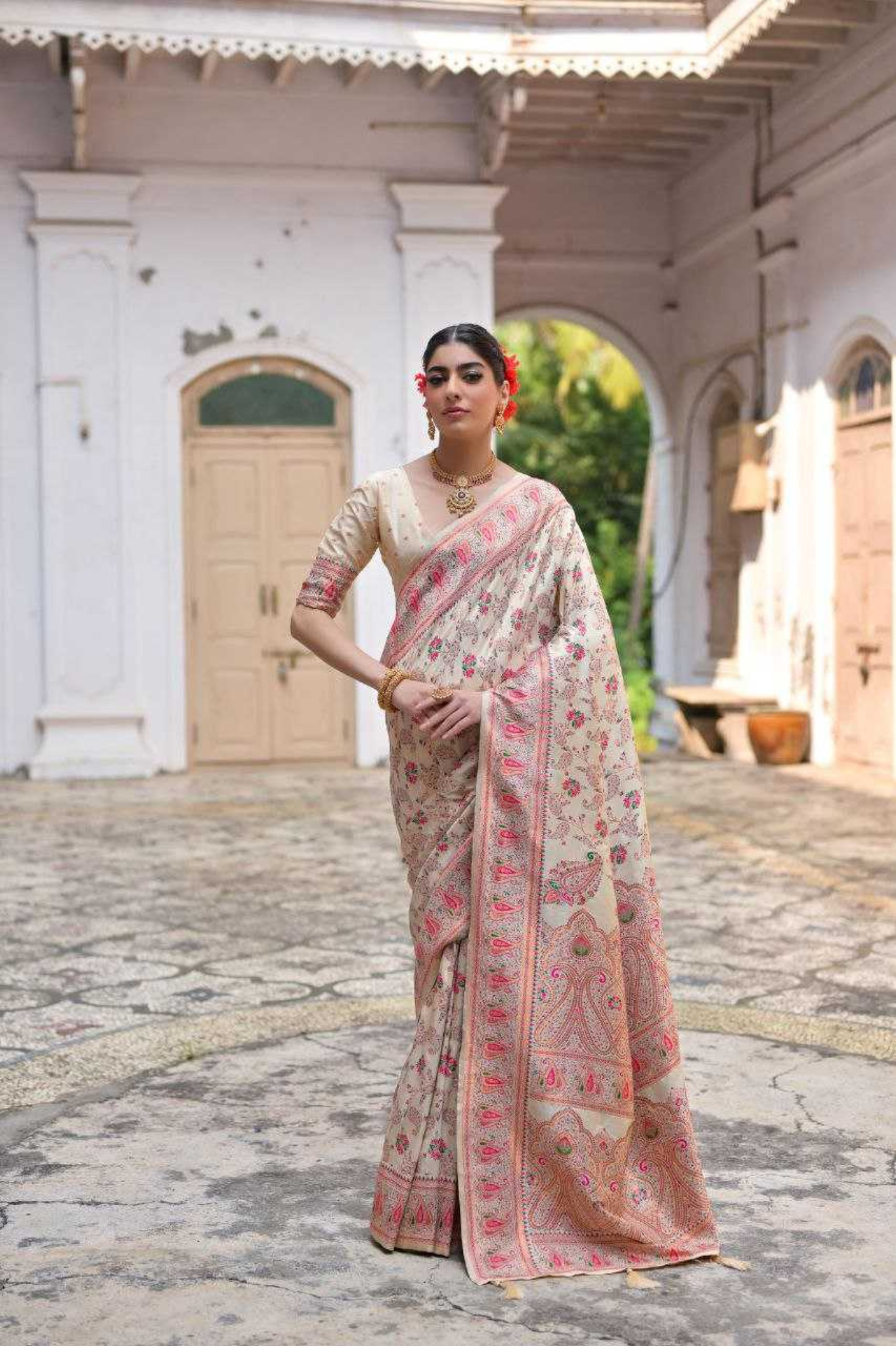 Extra Soft Pashmina Silk Saree with Kashmiri Jal Weaving & Zari-Meena Work