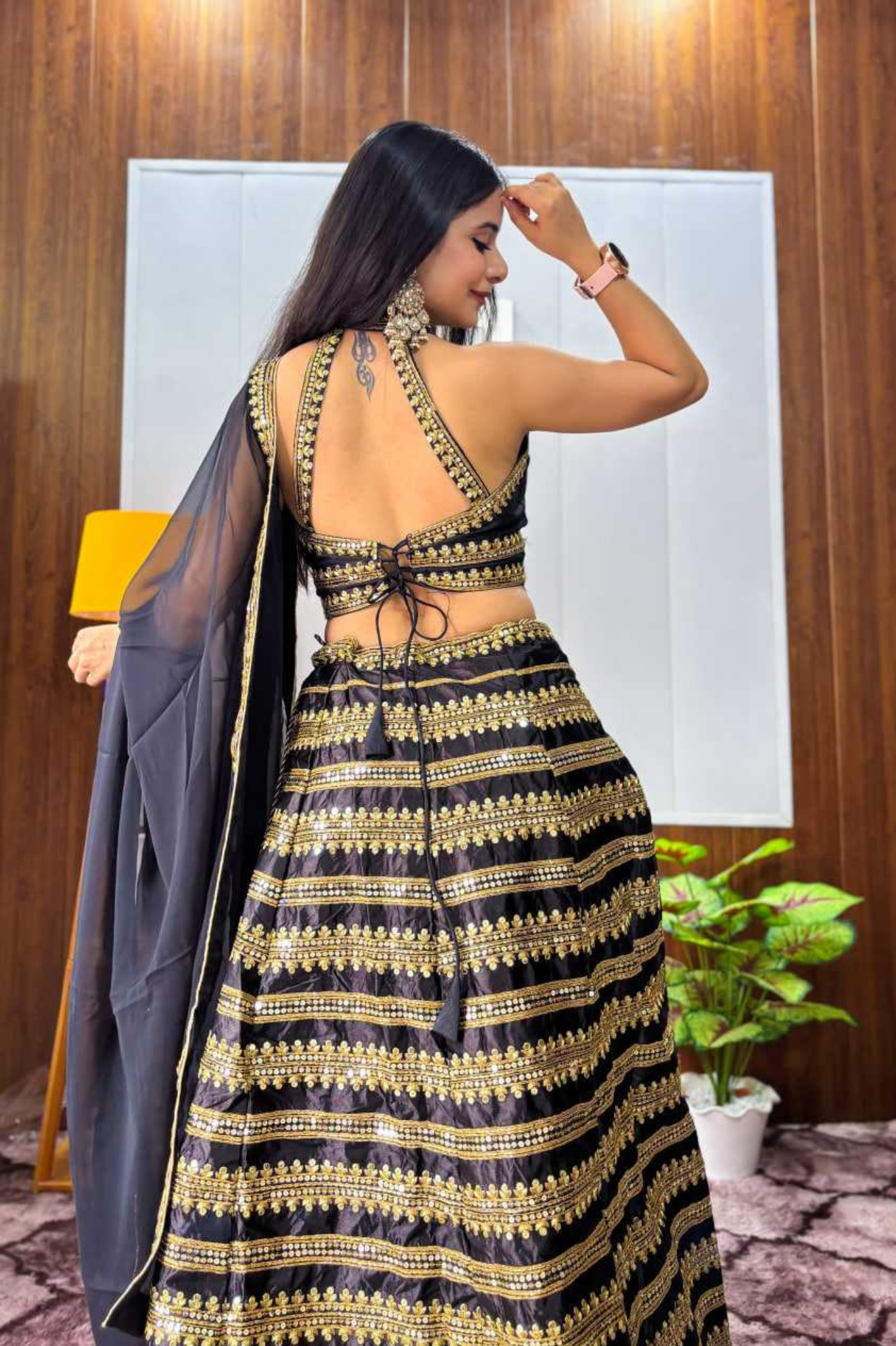 This stunning black lehenga choli set is crafted in heavy Kasturi silk with exquisite sequins and dori work, offering a...