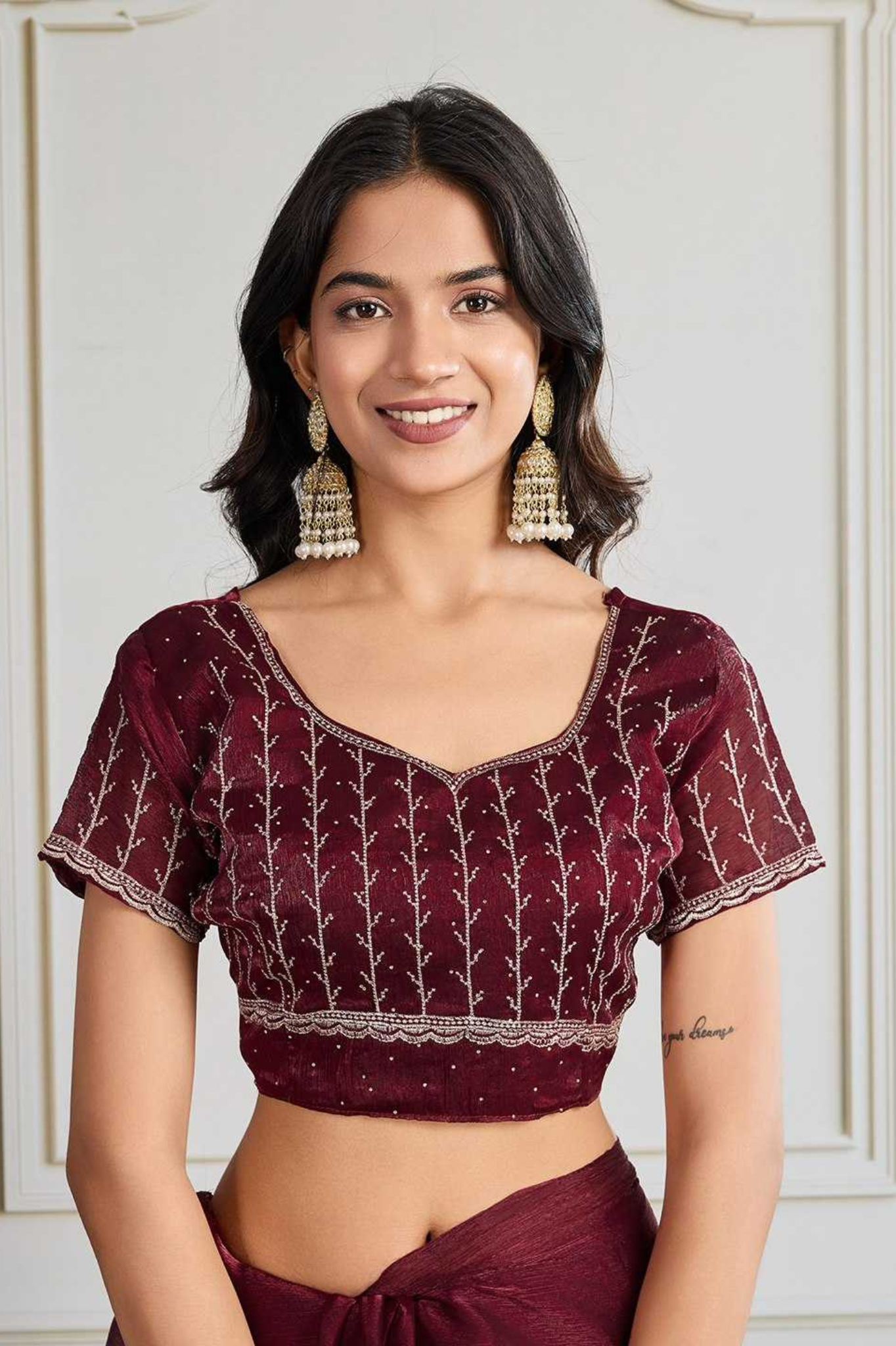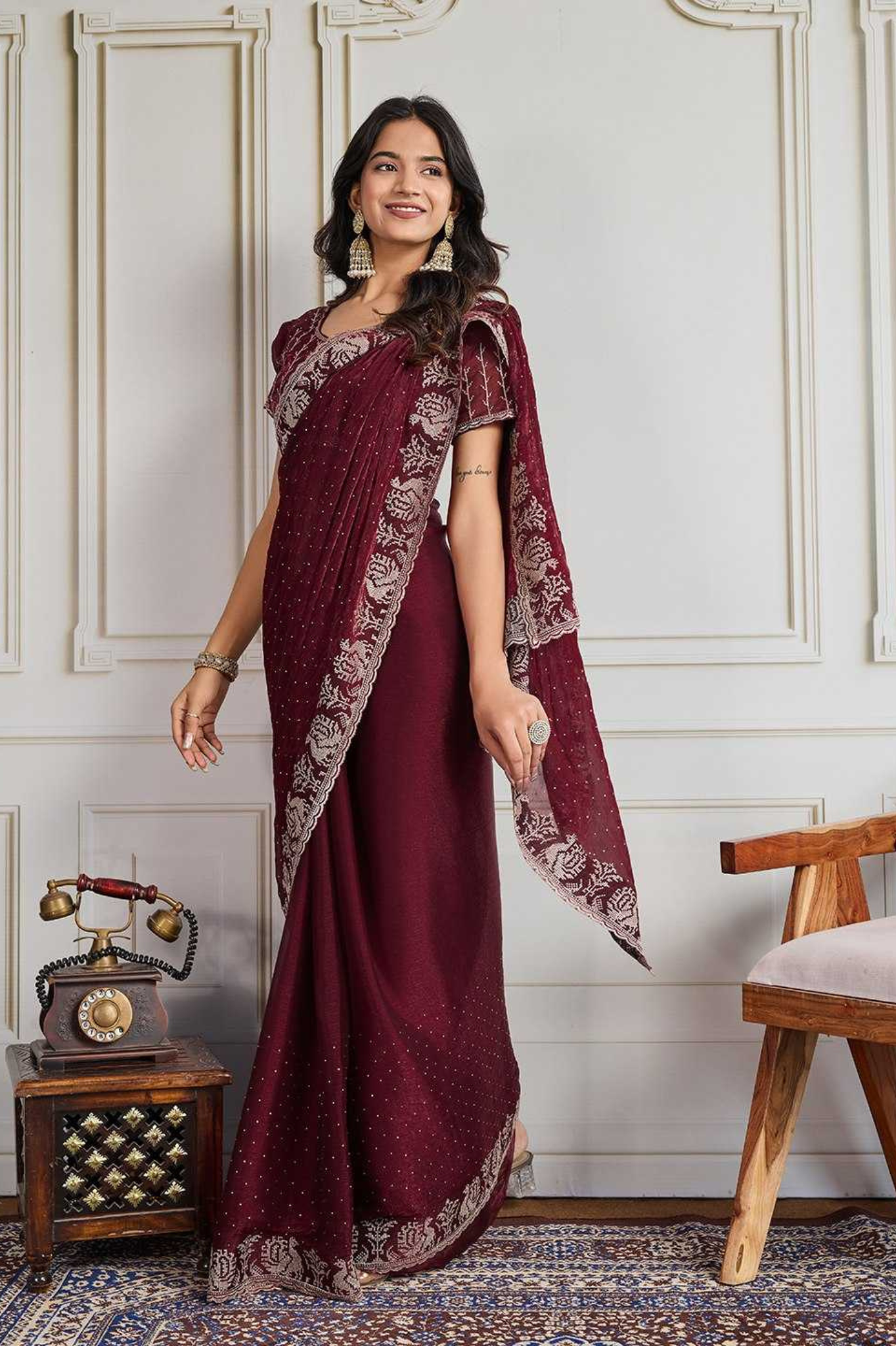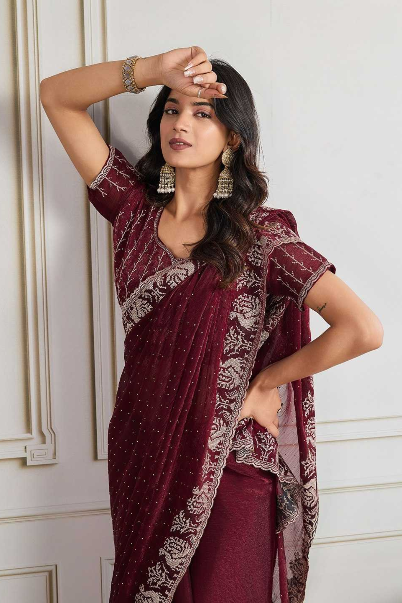 Complemented with an embroidered blouse crafted from matching Fendy Chiffon Silk, this saree captures a timeless blend of sparkle and sophistication — ideal for the modern woman with a love for classic beauty.