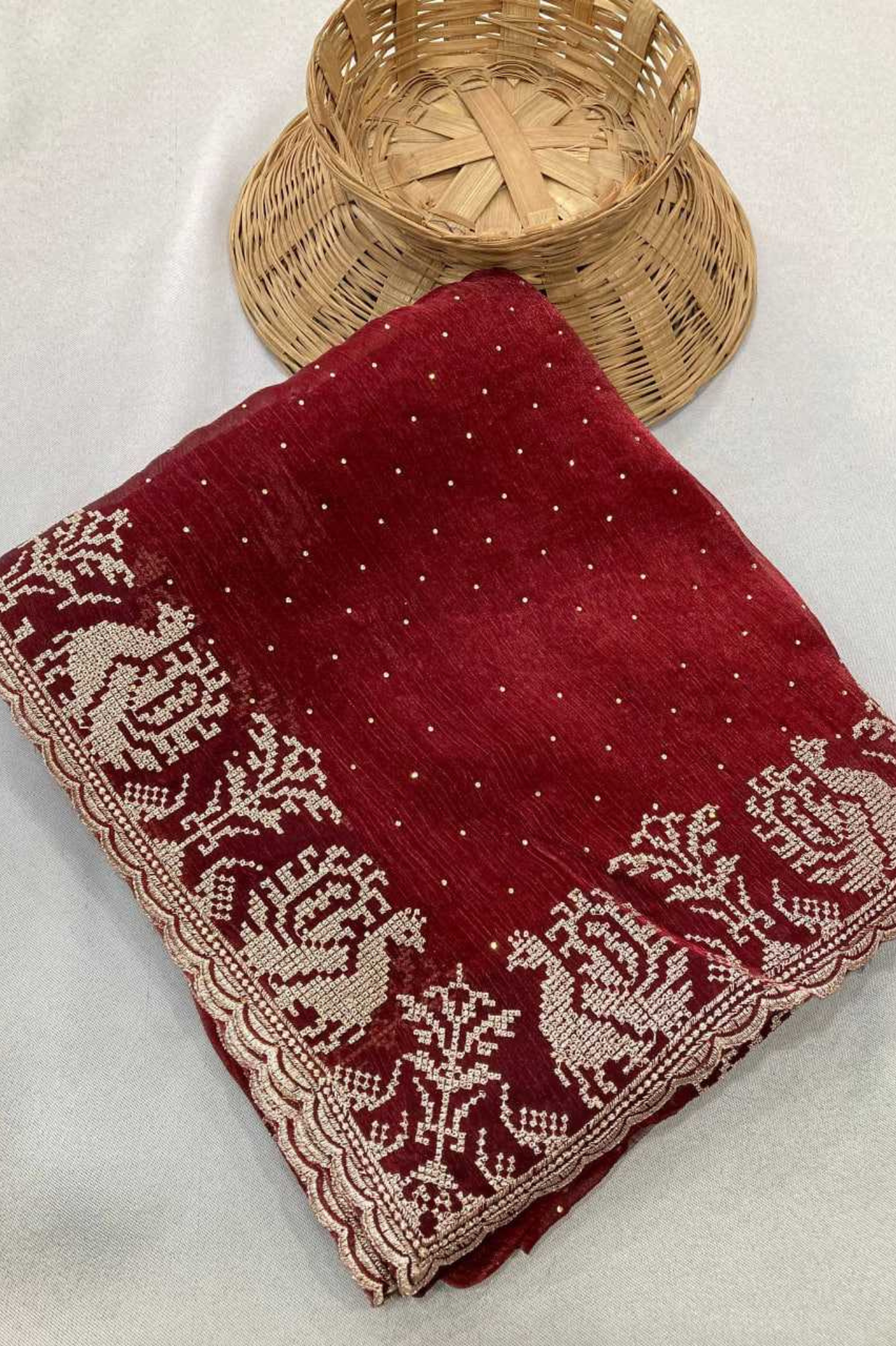 Fendy Chiffon Silk Saree with Swarovski Detailing & Cutwork Border