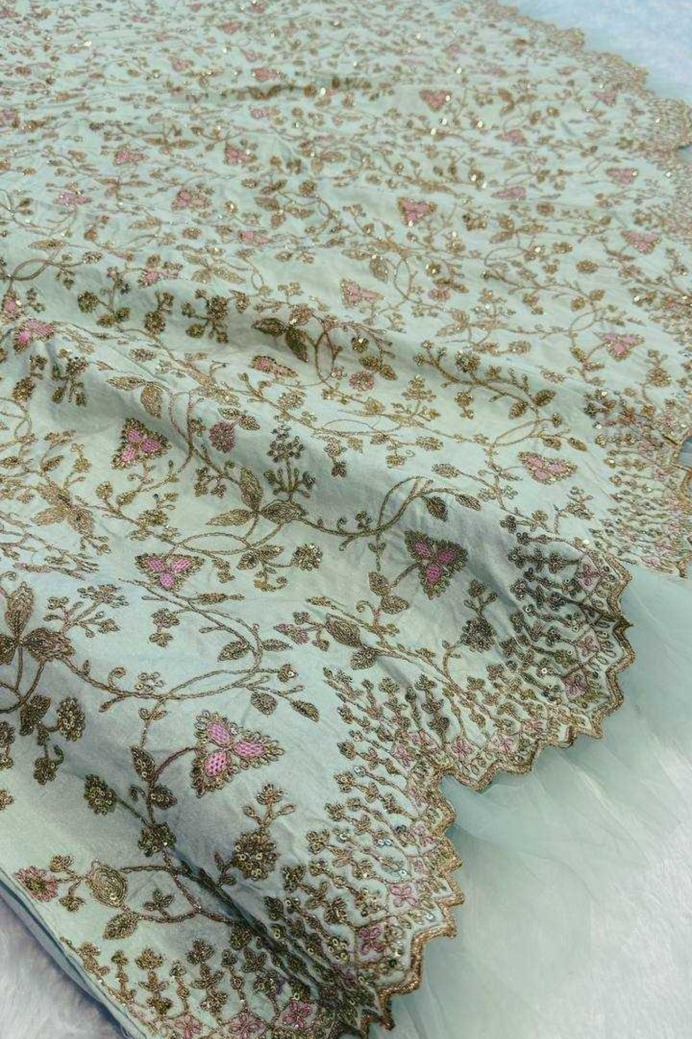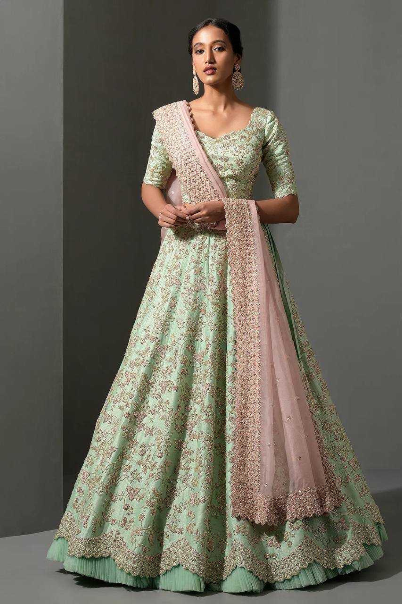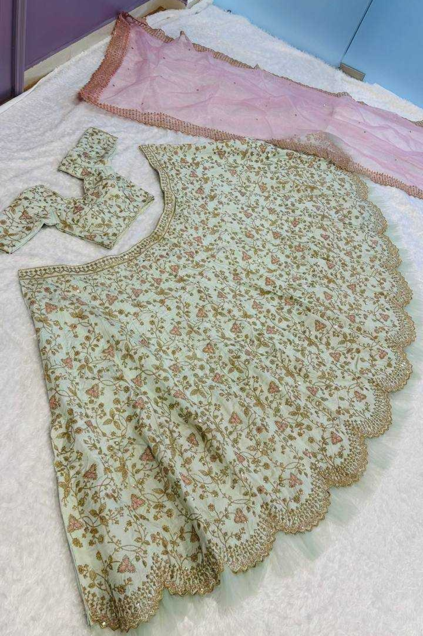 Mint Green Mulberry Silk Lehenga with Sequins, Thread & Dori Work
