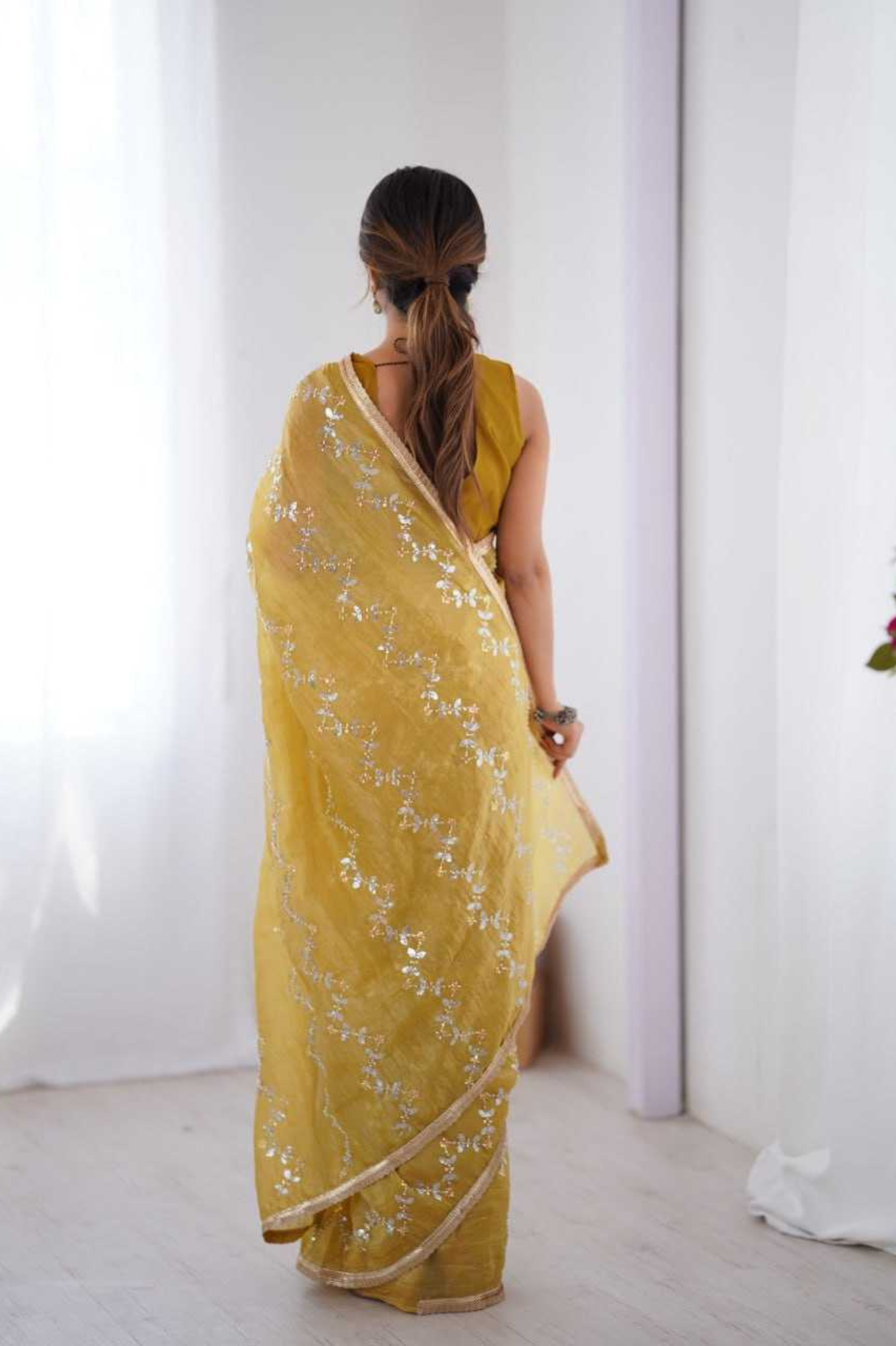 Yellow Glam Crush Saree with Moti & ZigZag Sequin Embroidery