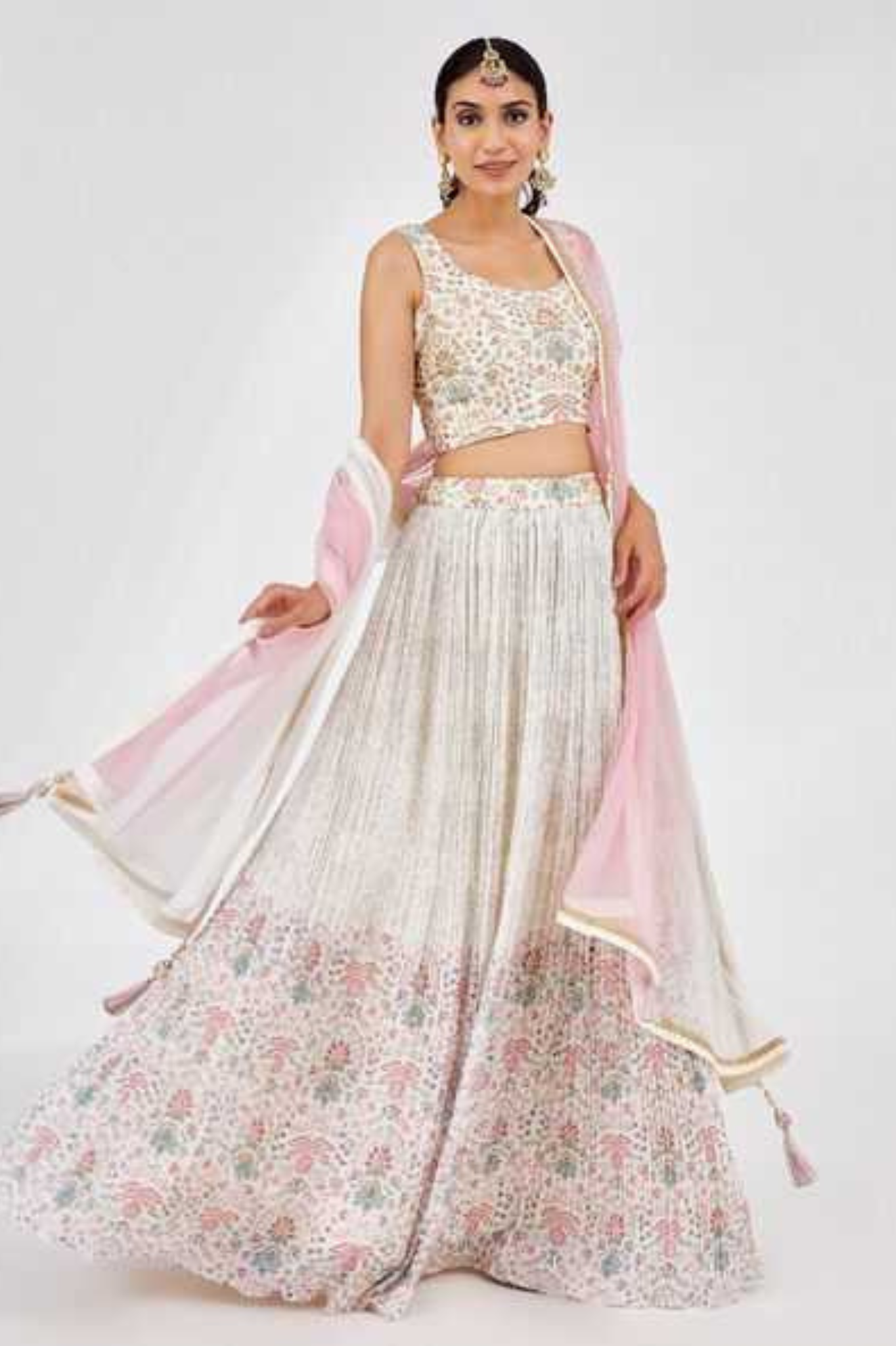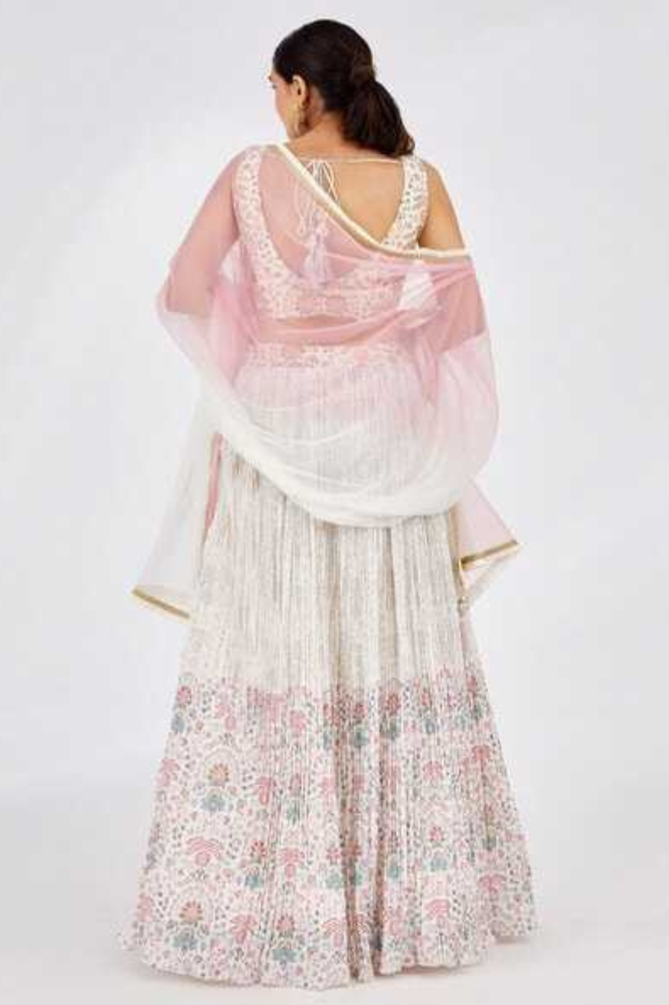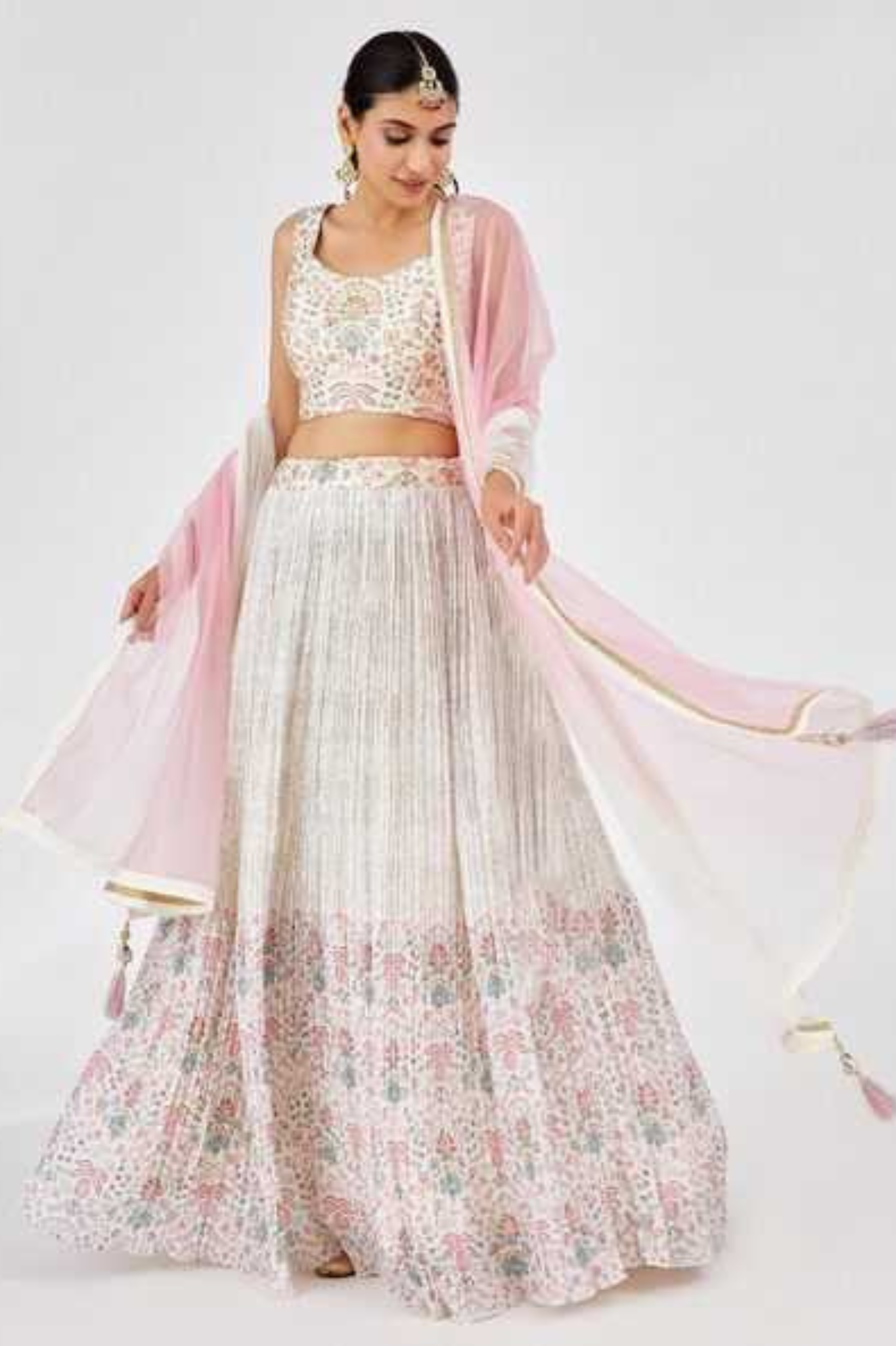 Elegant White & Pink Faux Georgette Lehenga with Net Dupatta
