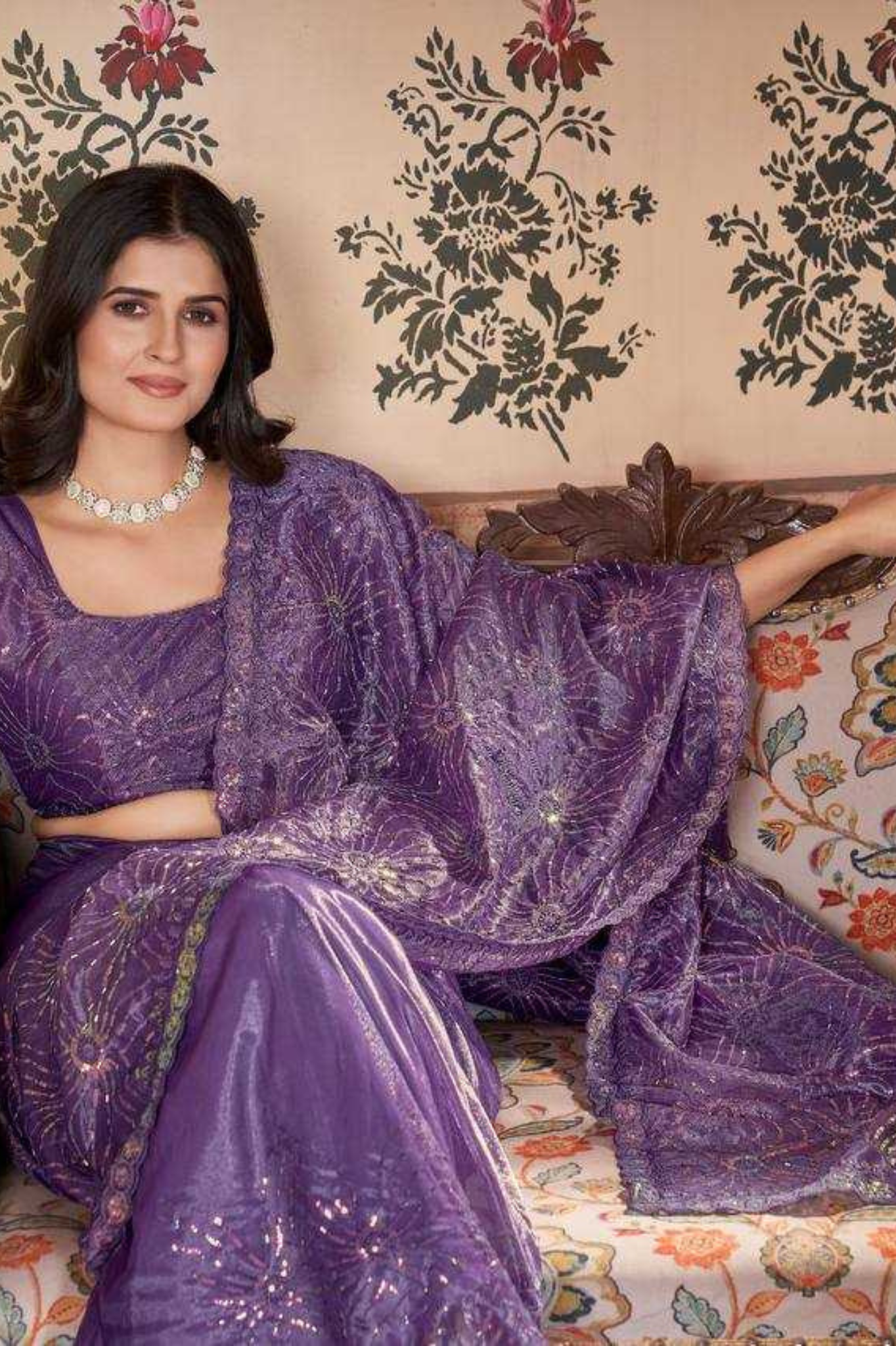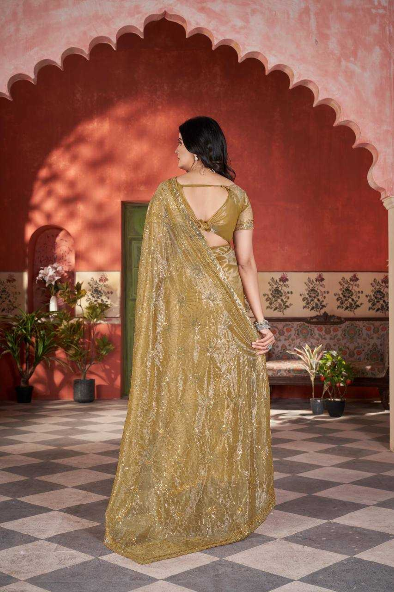 Elegant Twill Net Saree with Two-Tone Sequins & Beads Embroidery