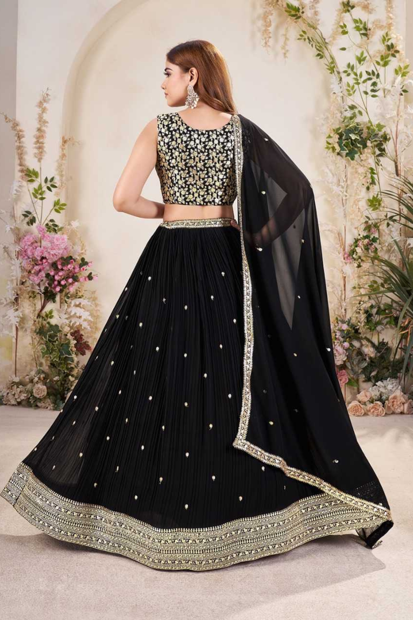 Black Georgette Embroidered Lehenga Choli with Dupatta
