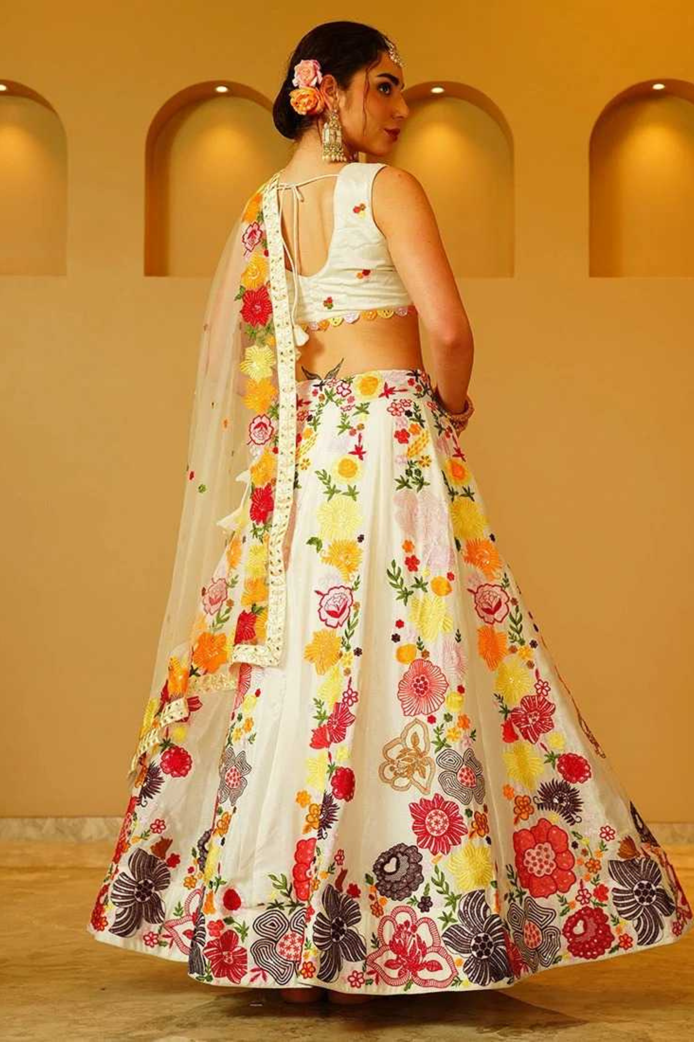 White Multi-Color Floral Embroidered Georgette Lehenga Set