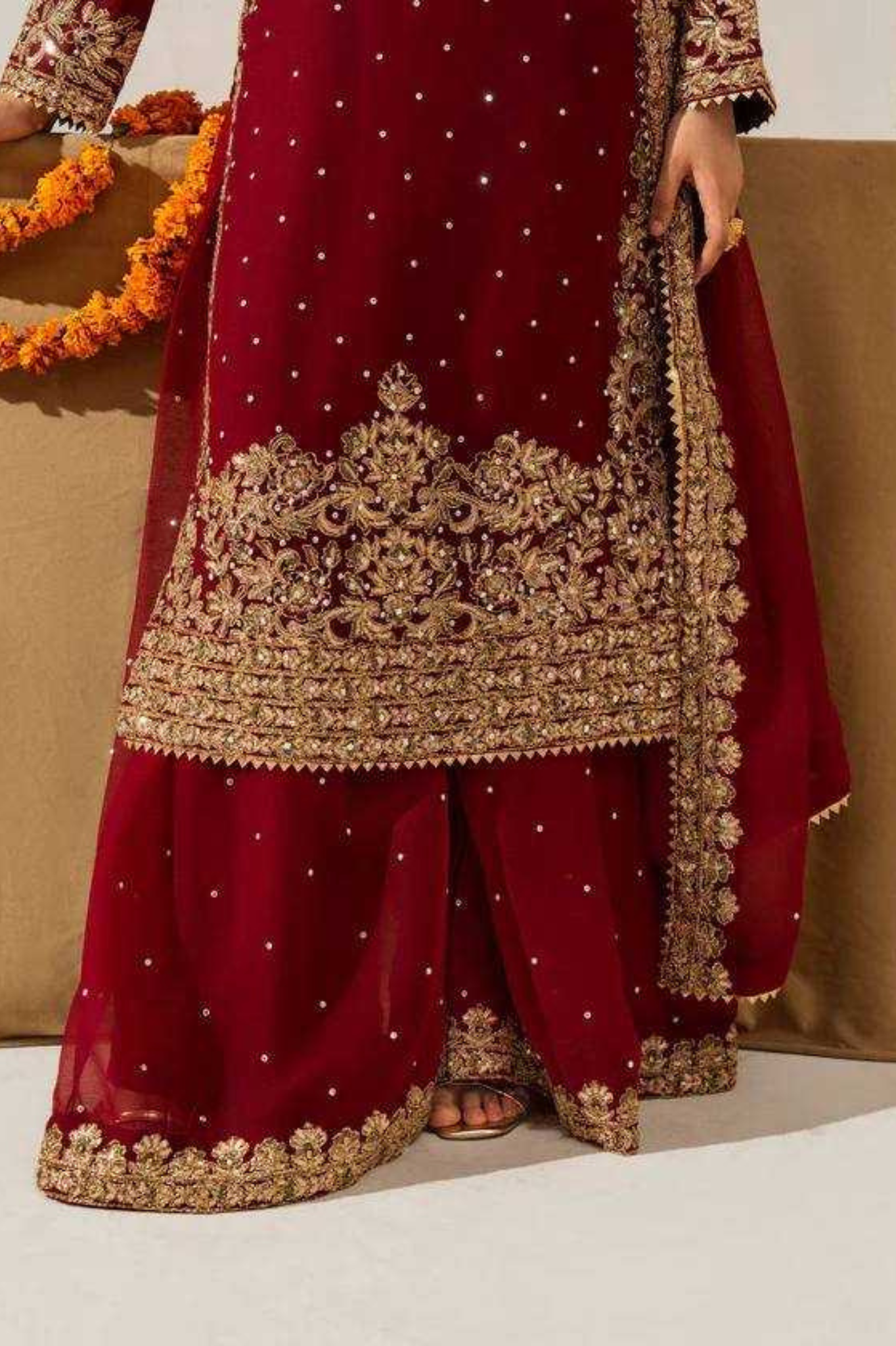 Maroon Heavy Georgette Embroidered Suit with Dupatta