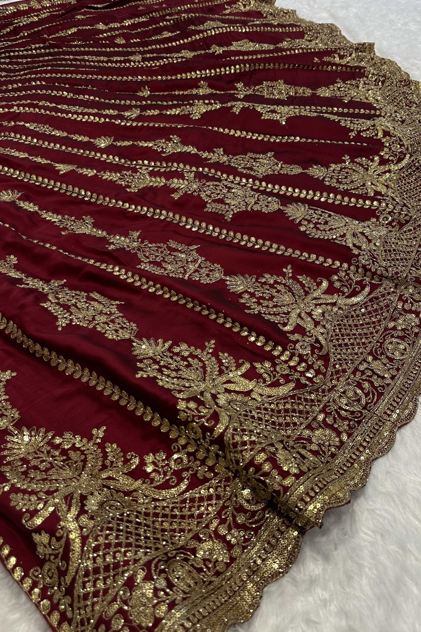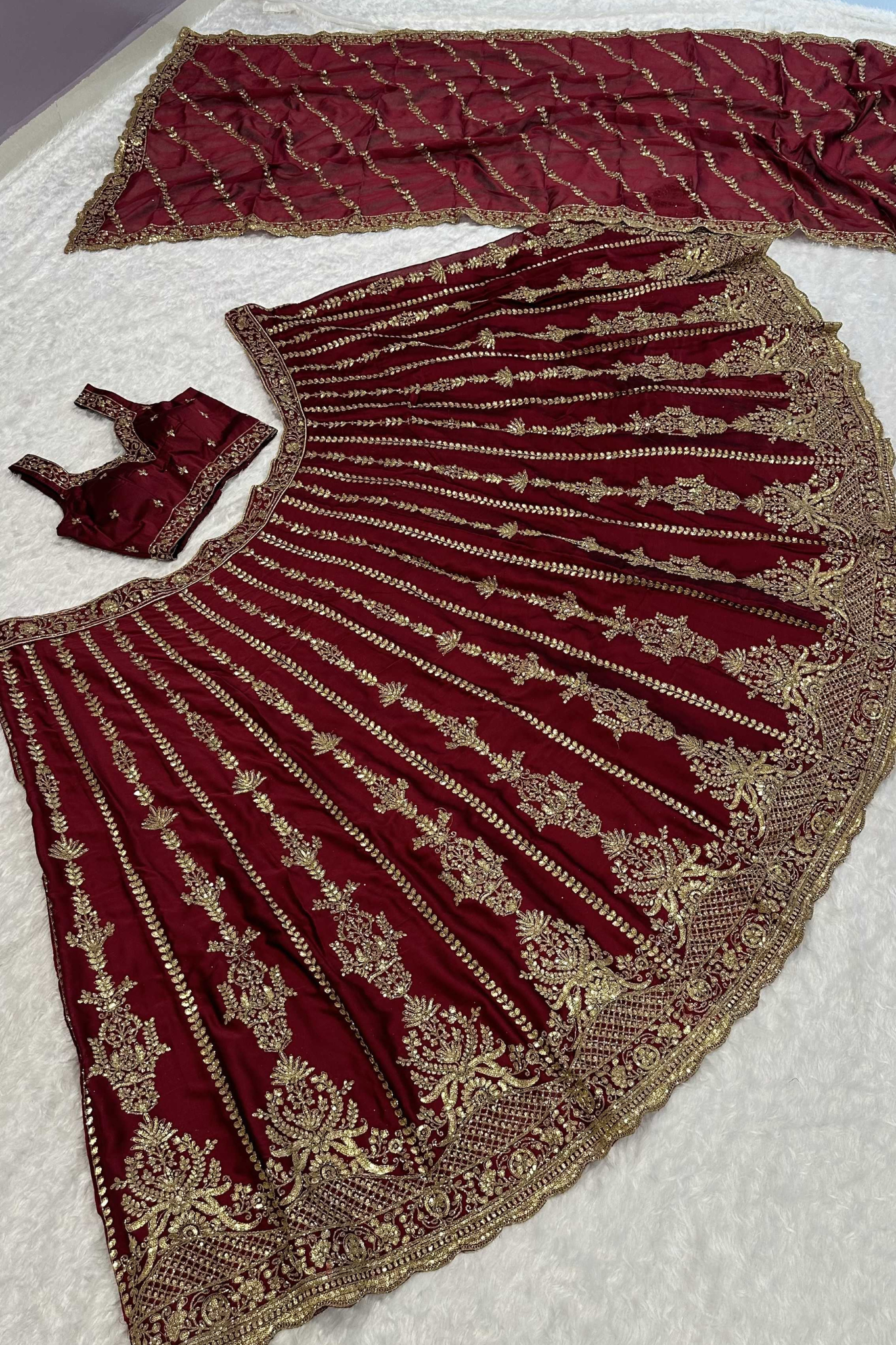 Regal Maroon Kasturi Silk Bridal Lehenga with Zari & Sequins Work