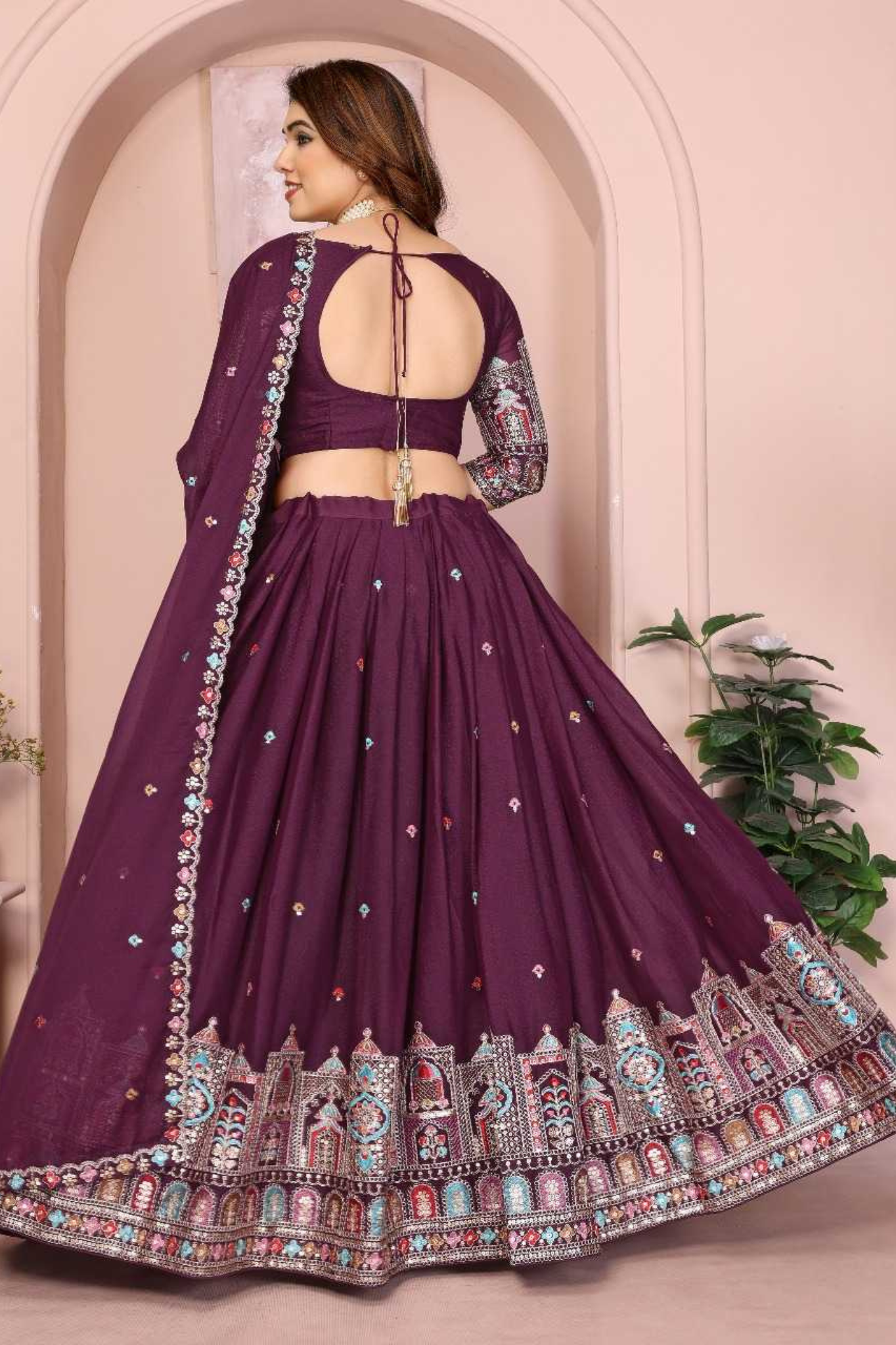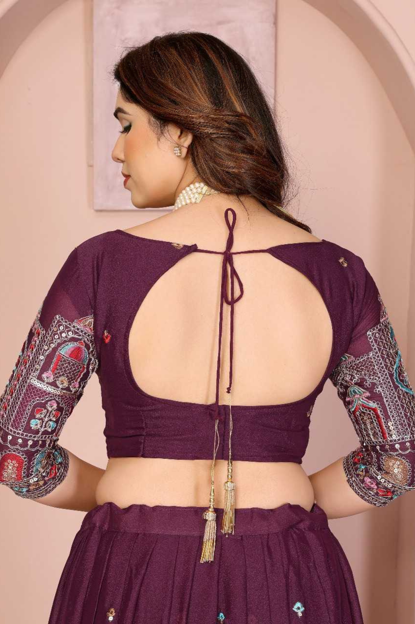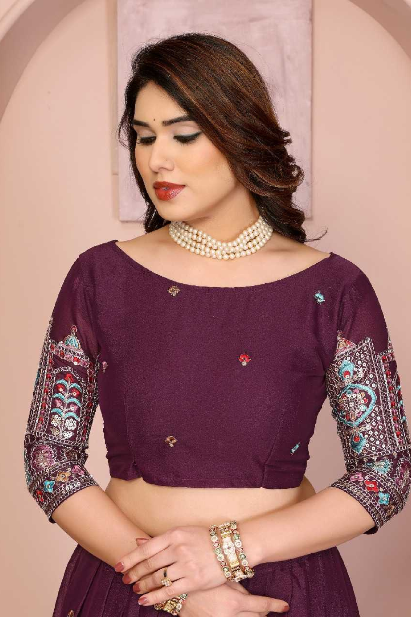 Step into elegance with this Star Georgette lehenga set in a majestic plum shade. The lehenga is adorned with exquisite...