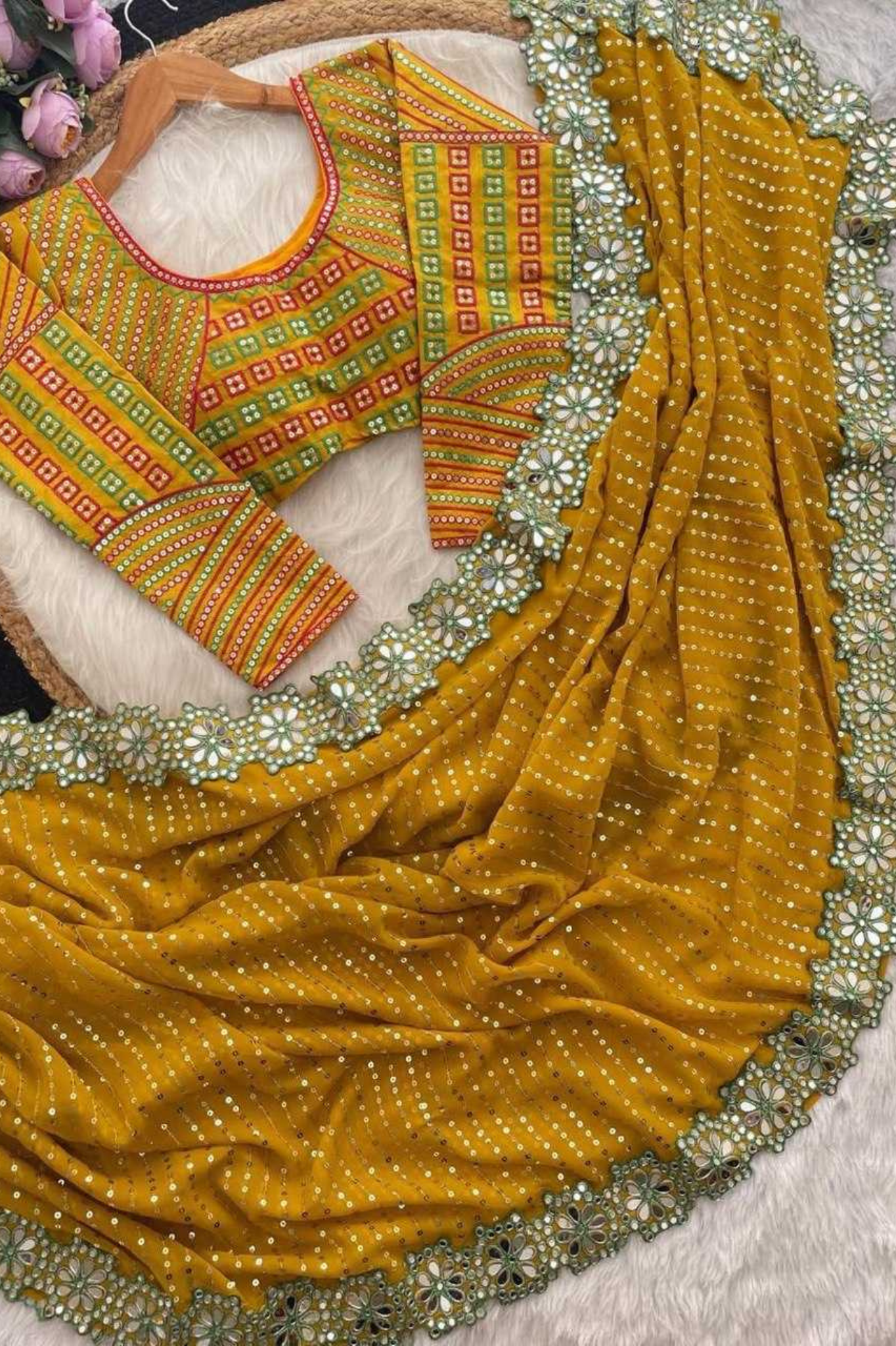 Luxury Georgette Mirror Work Saree with Embroidered Cutwork Border