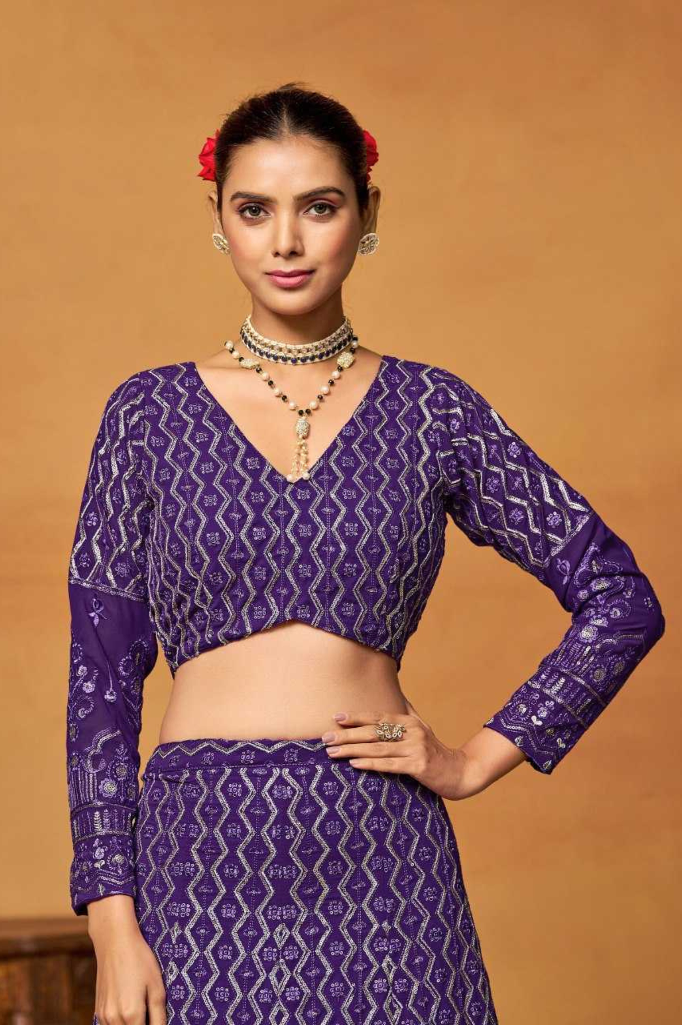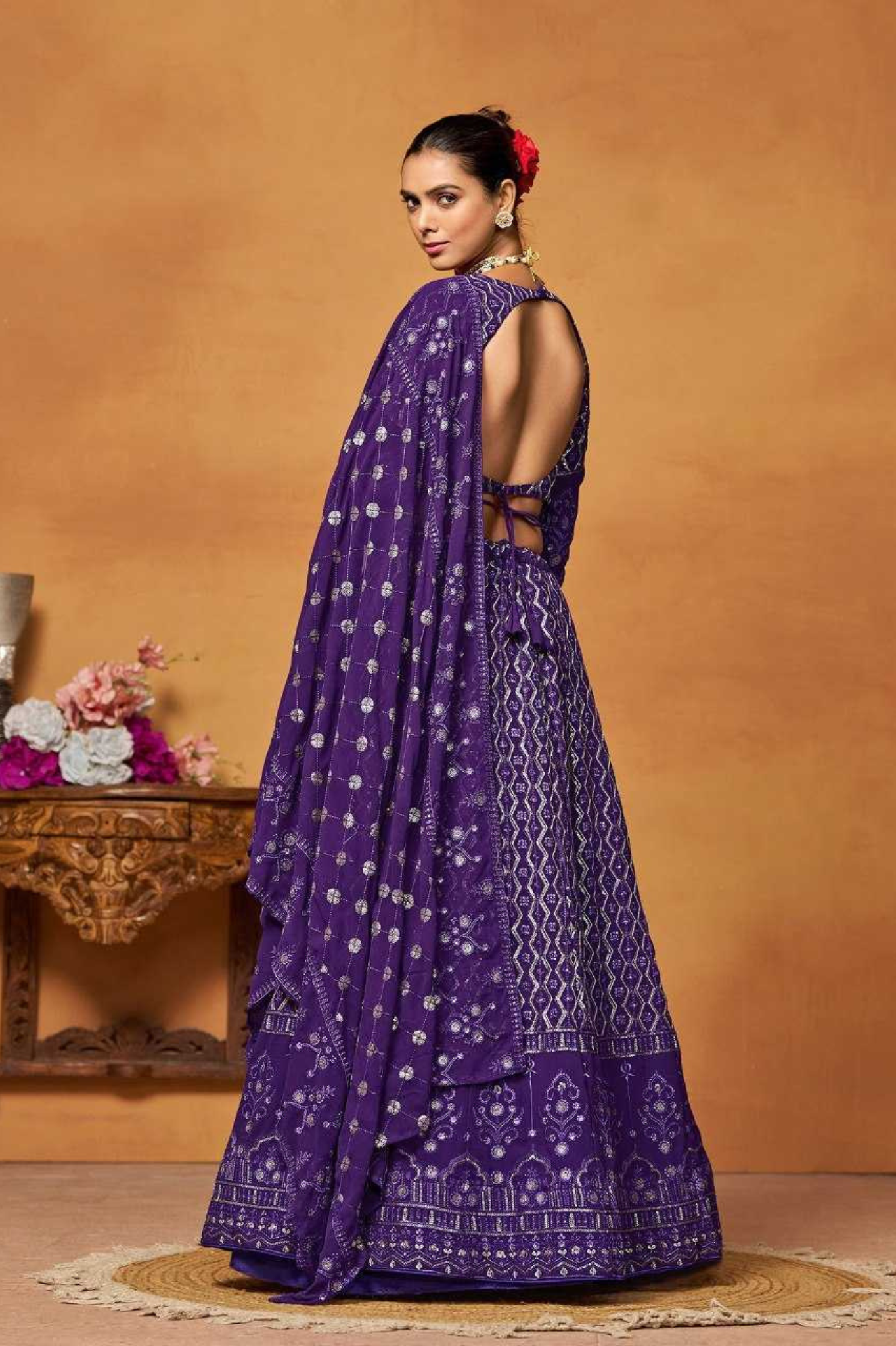 Elevate your festive charm with this Purple Faux Georgette Lehenga Set, designed with intricate embroidery for a regal look. The...