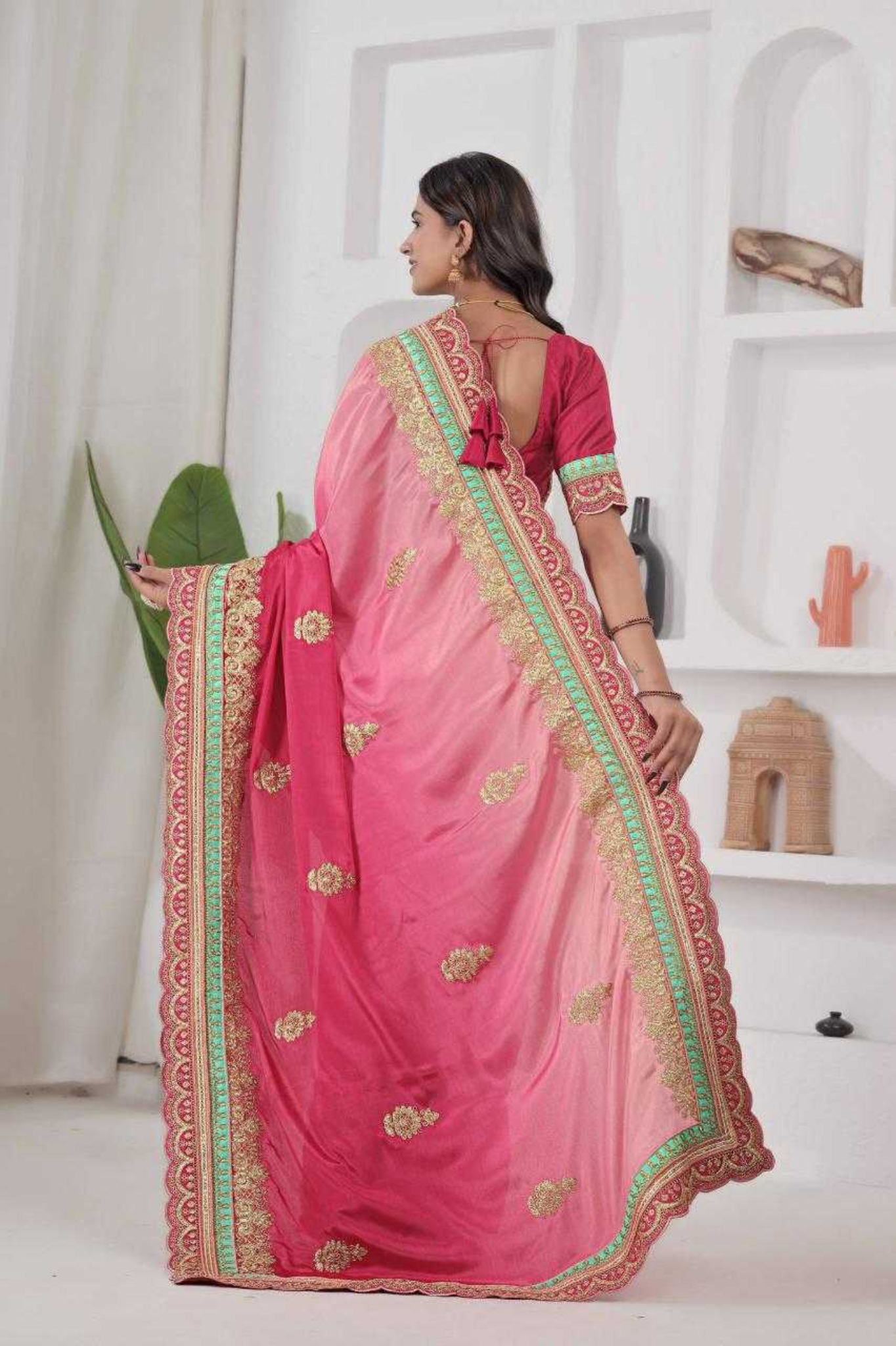 Step into timeless elegance with this Chinon Silk Pedding Saree, beautifully crafted with delicate embroidery codding design work that adds...