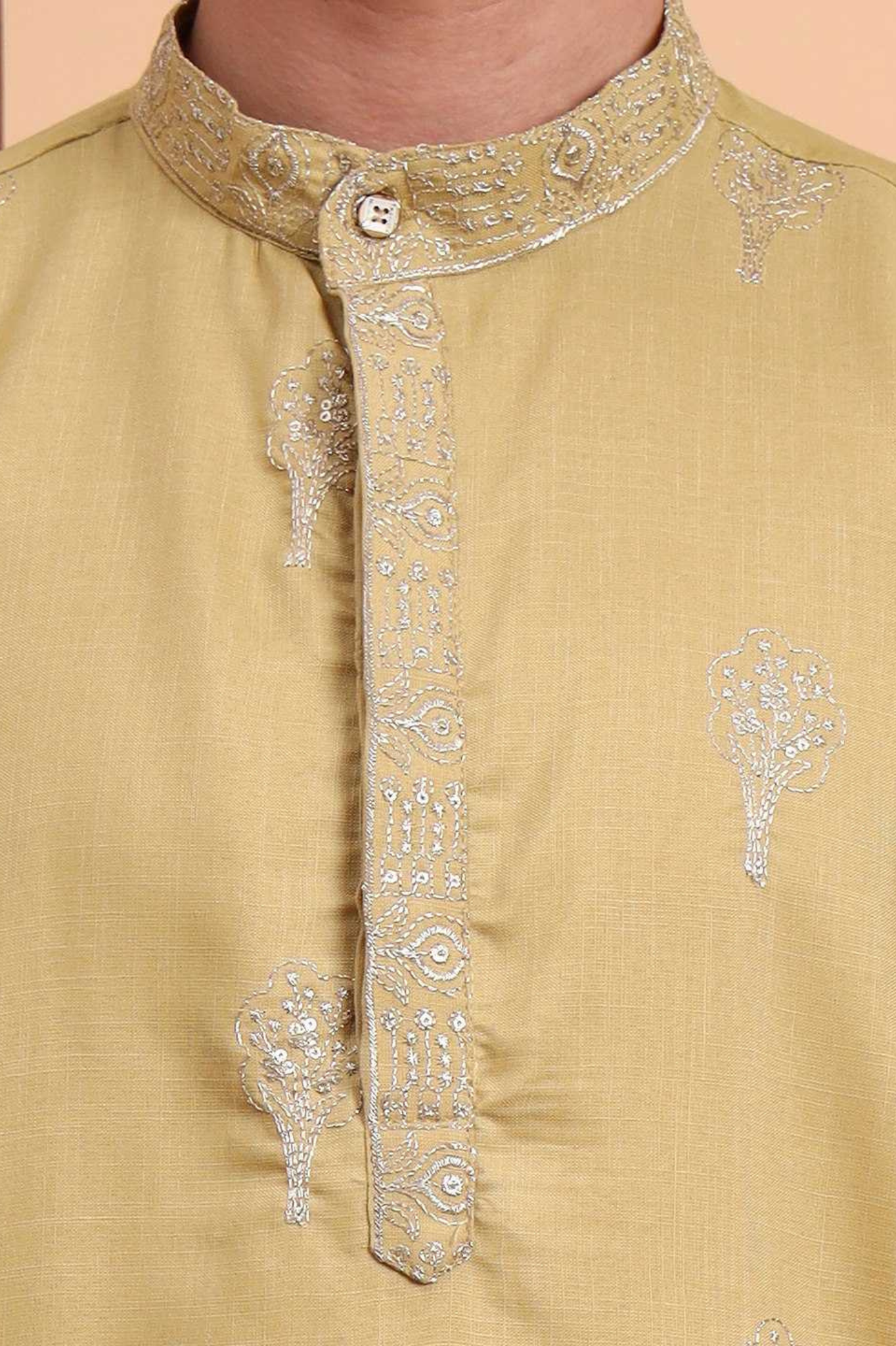 Design: Classic mandarin collar with embroidered placket & cuffs