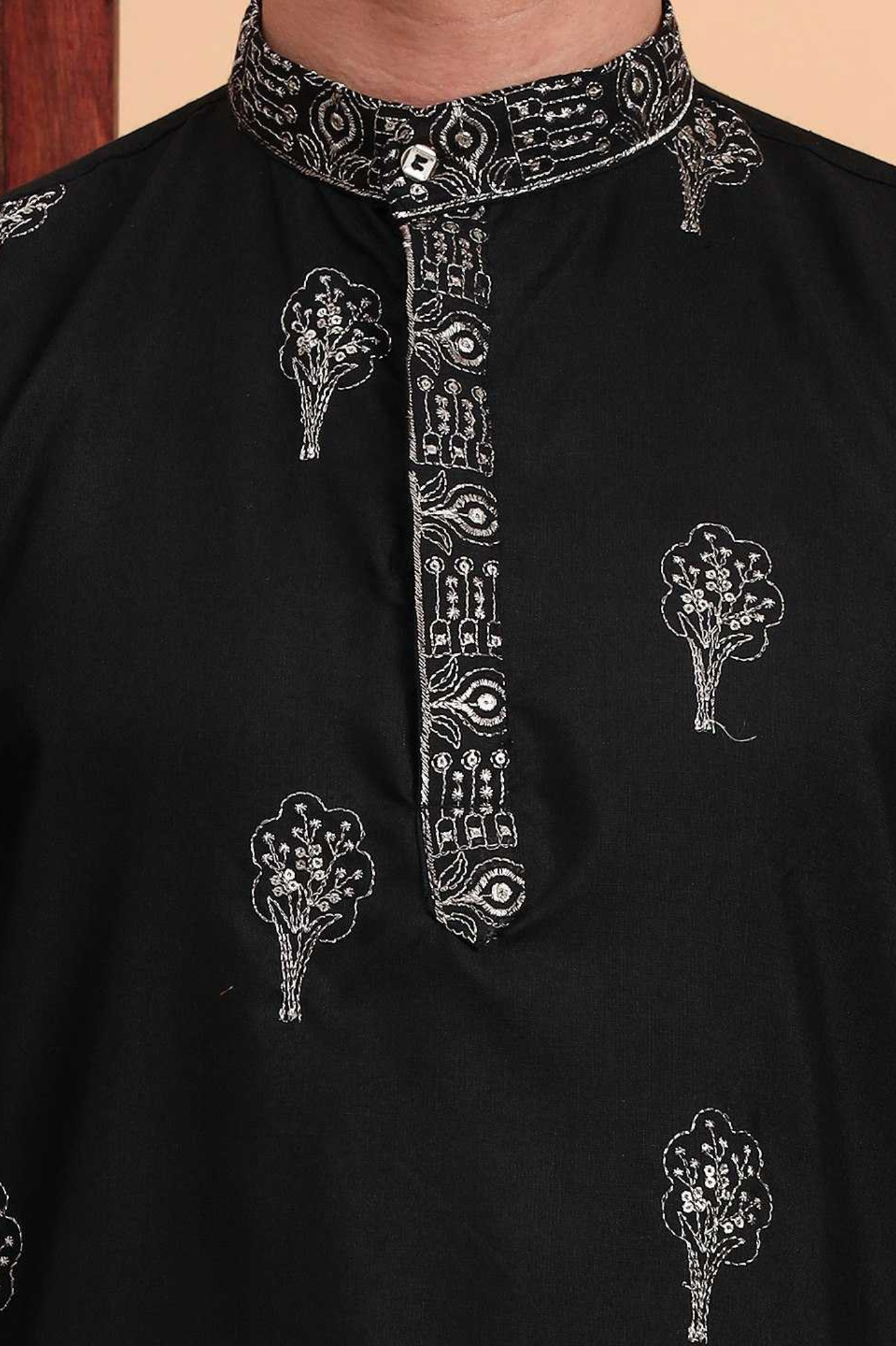 Step into timeless elegance with this black cotton kurta featuring intricate front and back heavy embroidery work. Designed with detailed motifs on the chest, cuffs, and hemline, this kurta perfectly blends tradition with modern sophistication. The breathable cotton fabric ensures all-day comfort, making it an ideal pick for festive occasions, weddings, or cultural gatherings.
