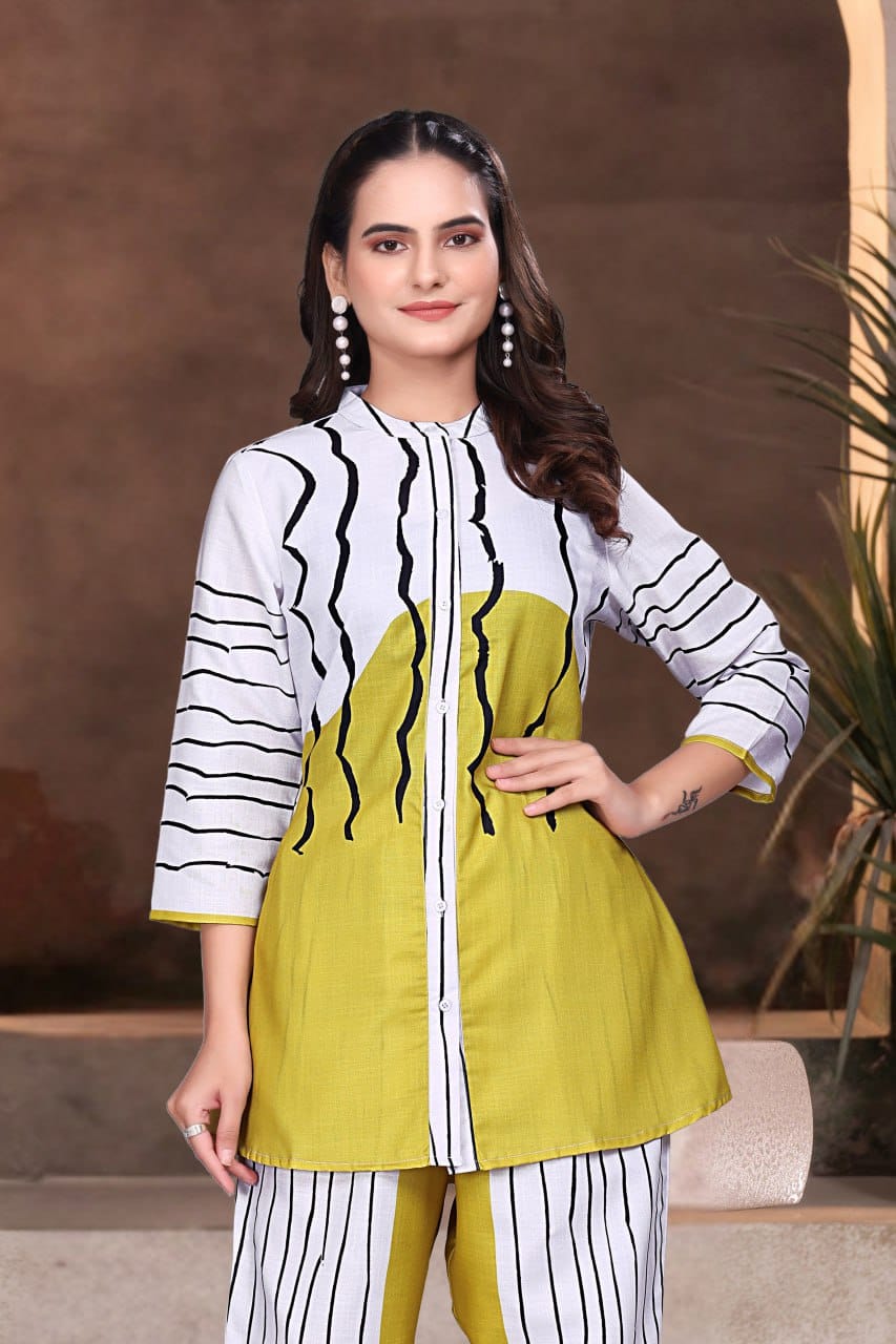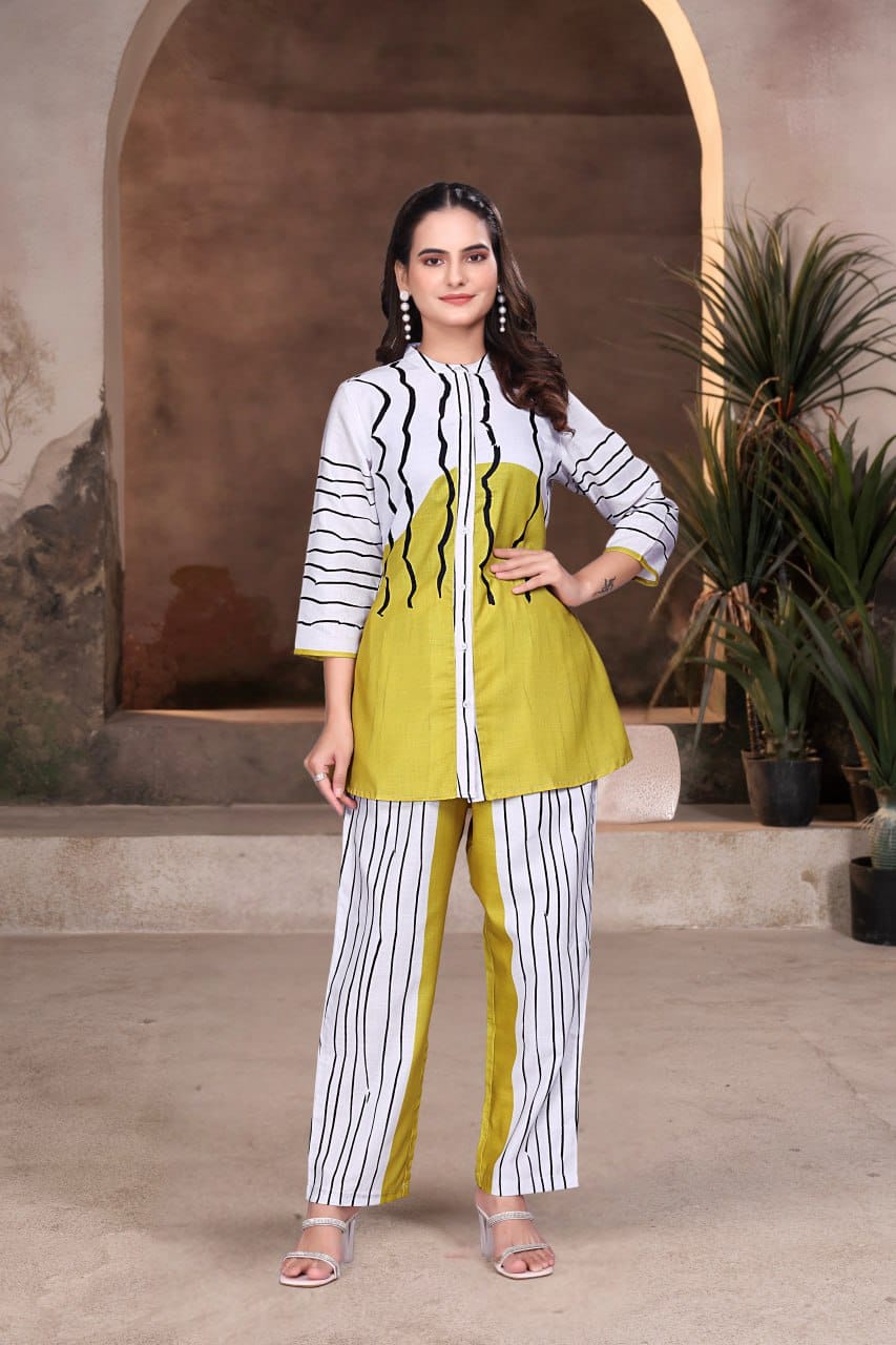 Step into bold elegance with this Olive Stripe Co-ord Set, designed for the modern woman who loves to stand out....