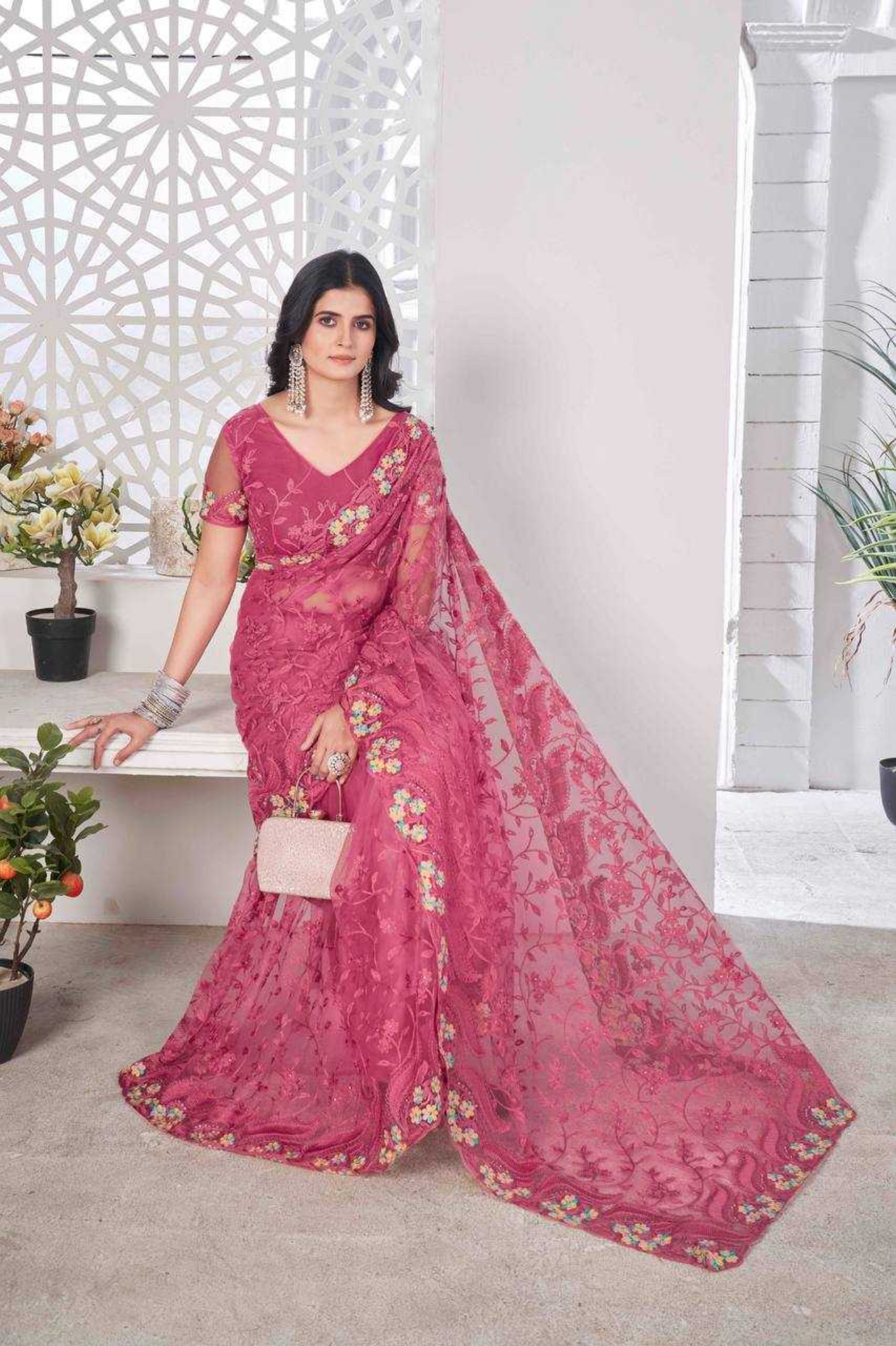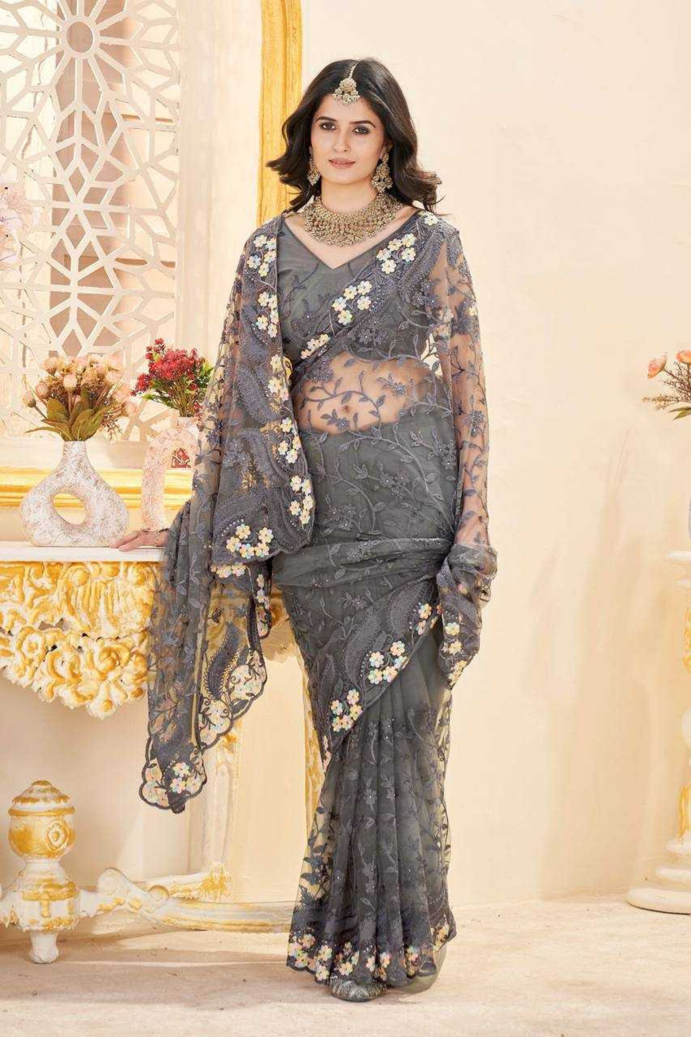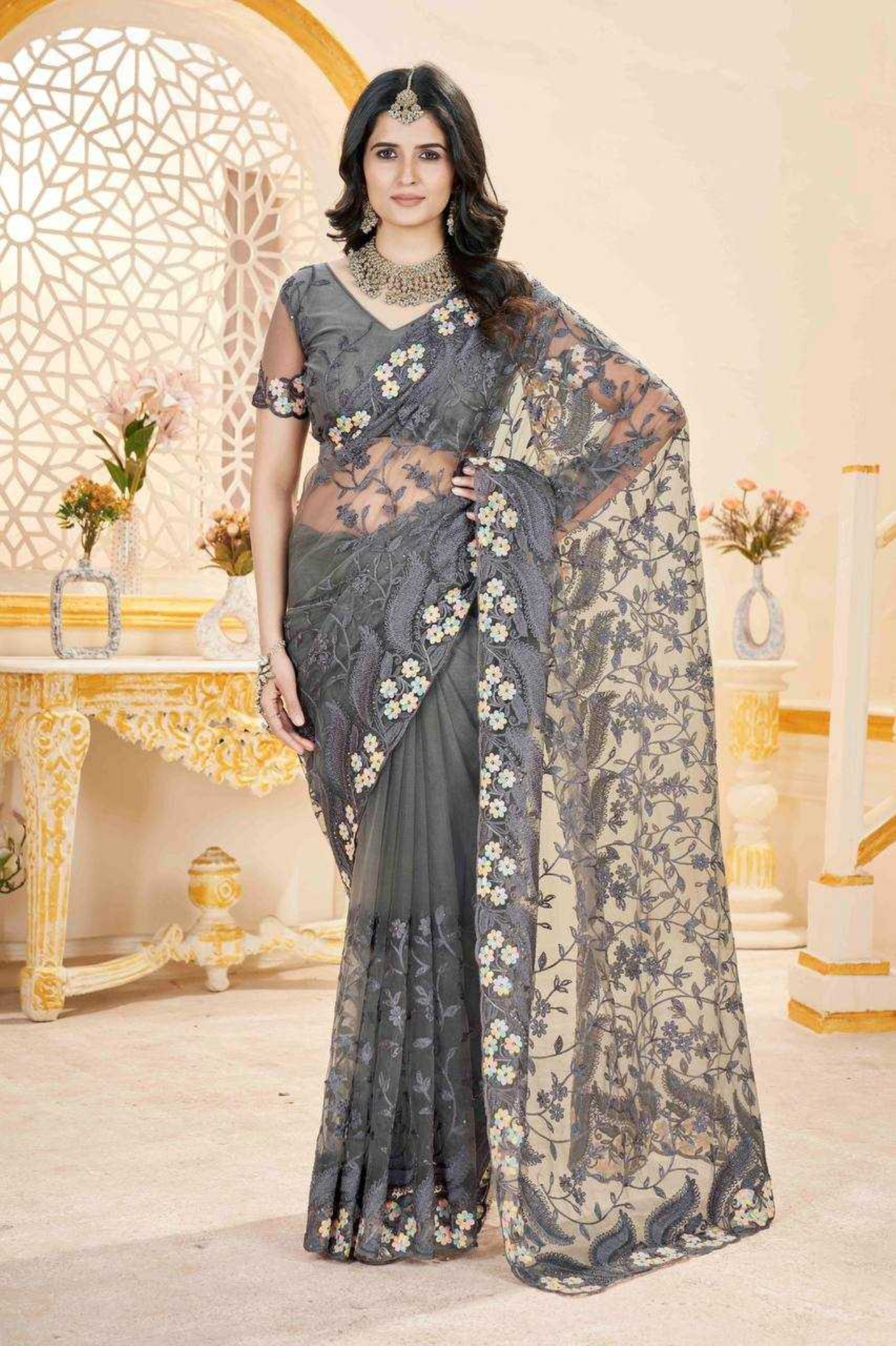 Heavy Butterfly Net Saree with Multi-Thread Embroidery & Stone Work