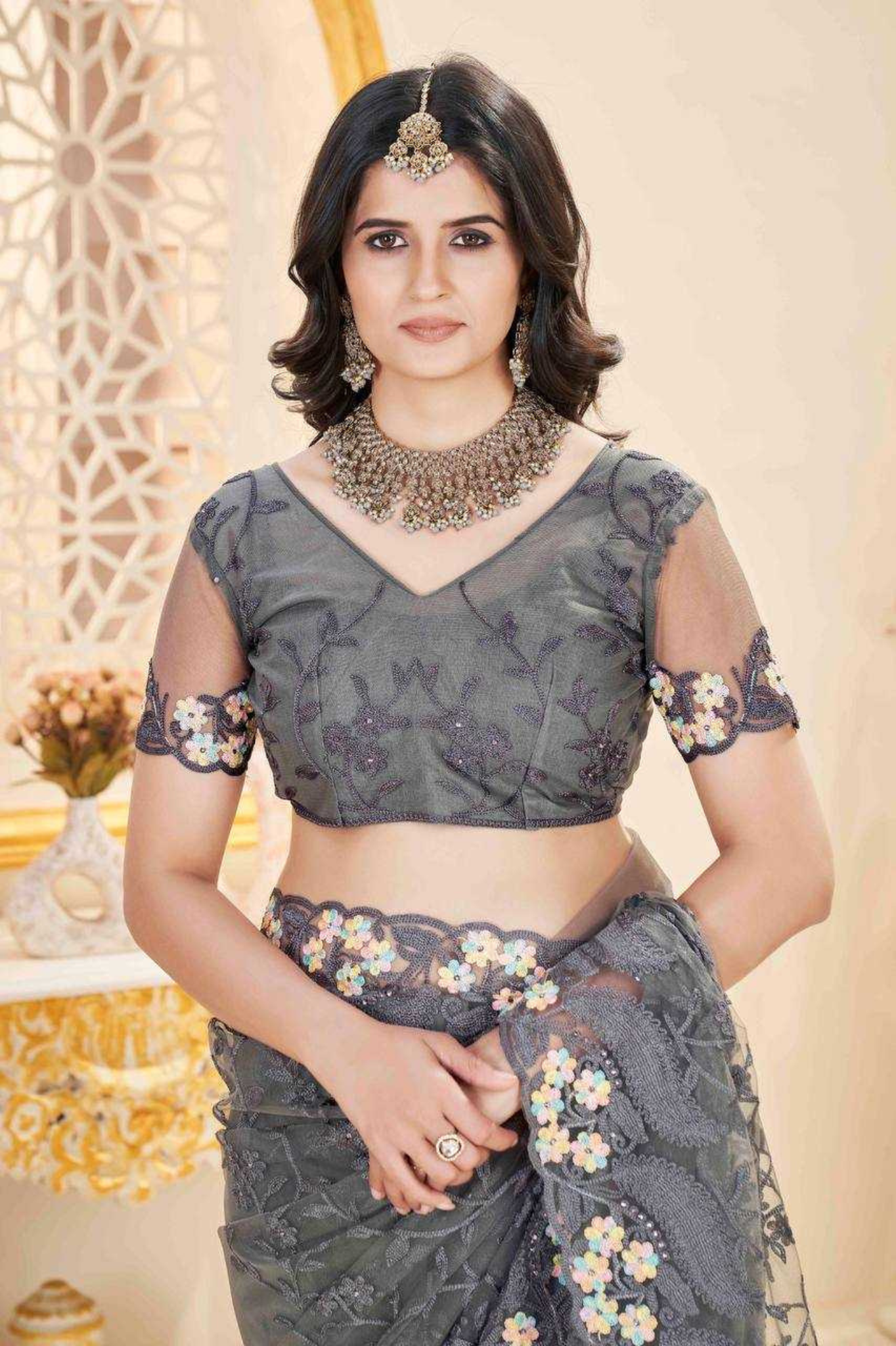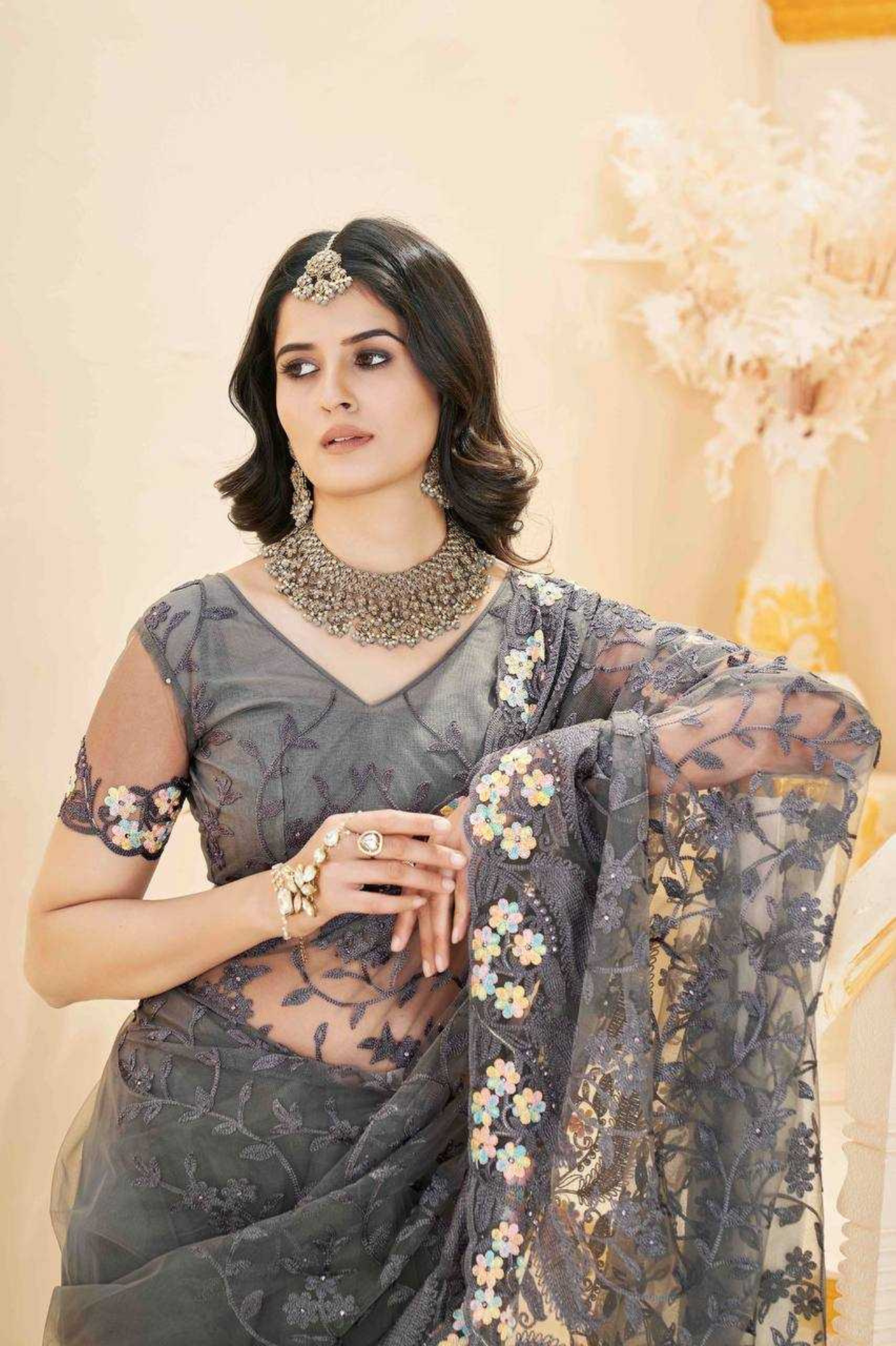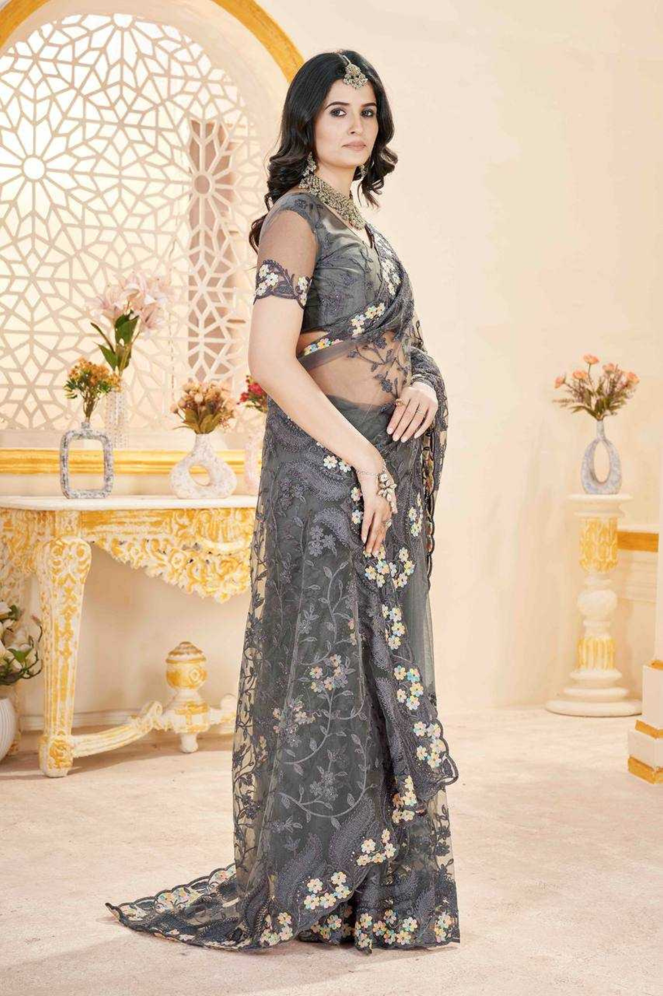 Heavy Butterfly Net Saree with Multi-Thread Embroidery & Stone Work