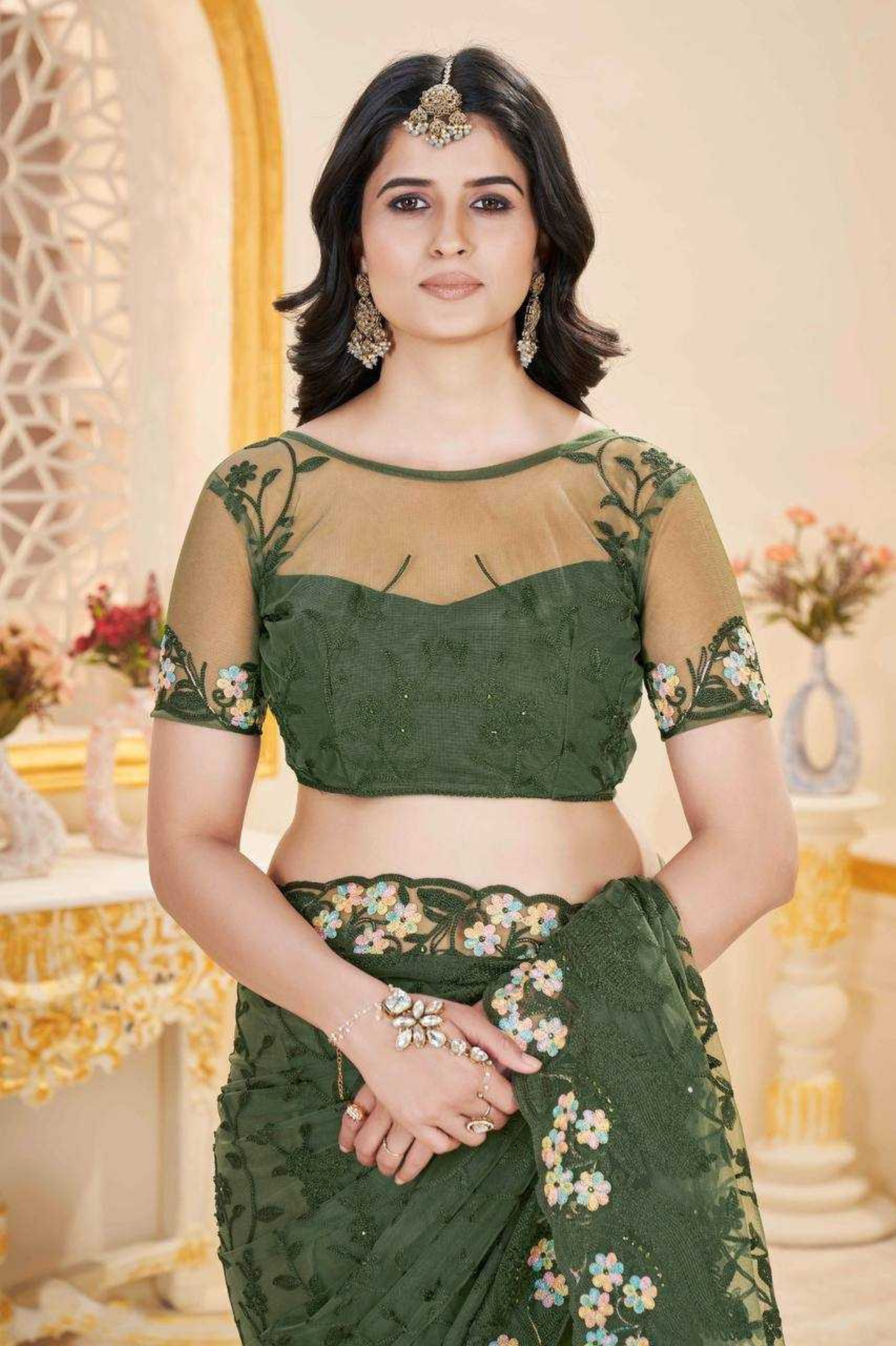 Step into elegance with this Heavy Butterfly Net Saree, beautifully crafted with chain stitch embroidery in multi-color threads. Adorned with delicate stone work and a stunning cutwork border, this saree perfectly blends sophistication and festive charm. Ideal for weddings, receptions, and grand celebrations.