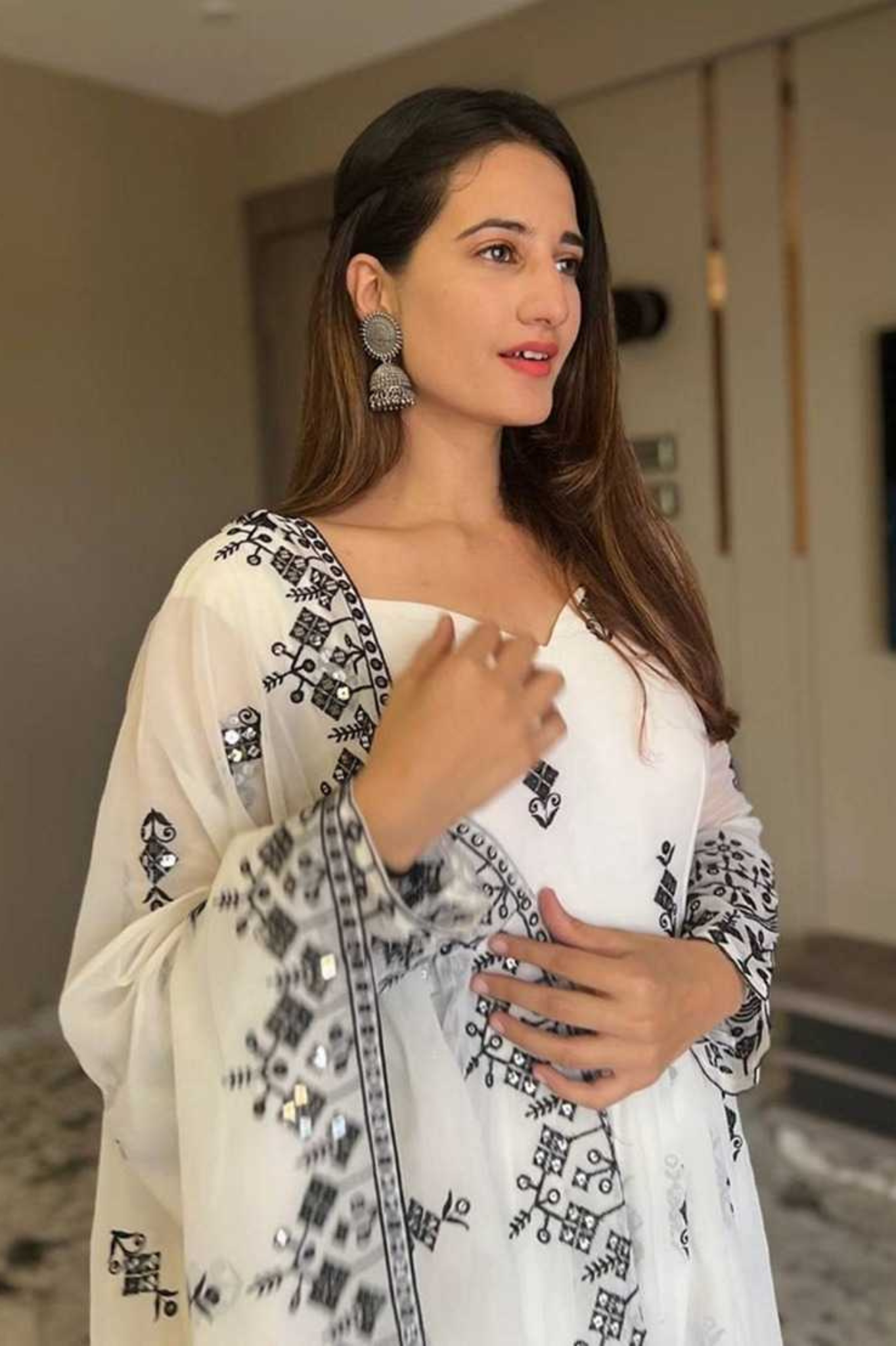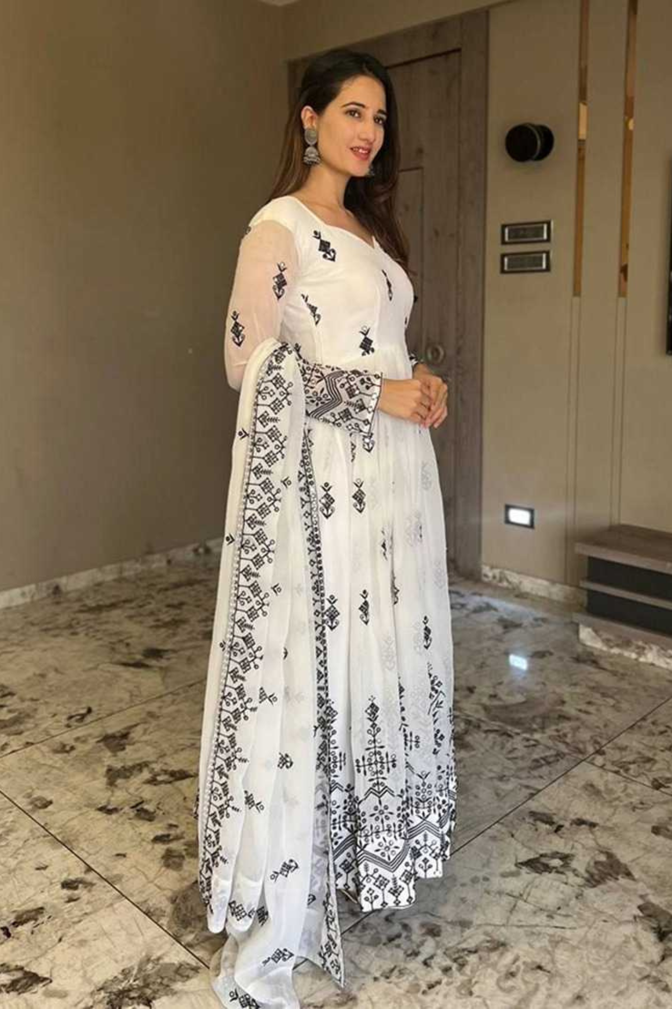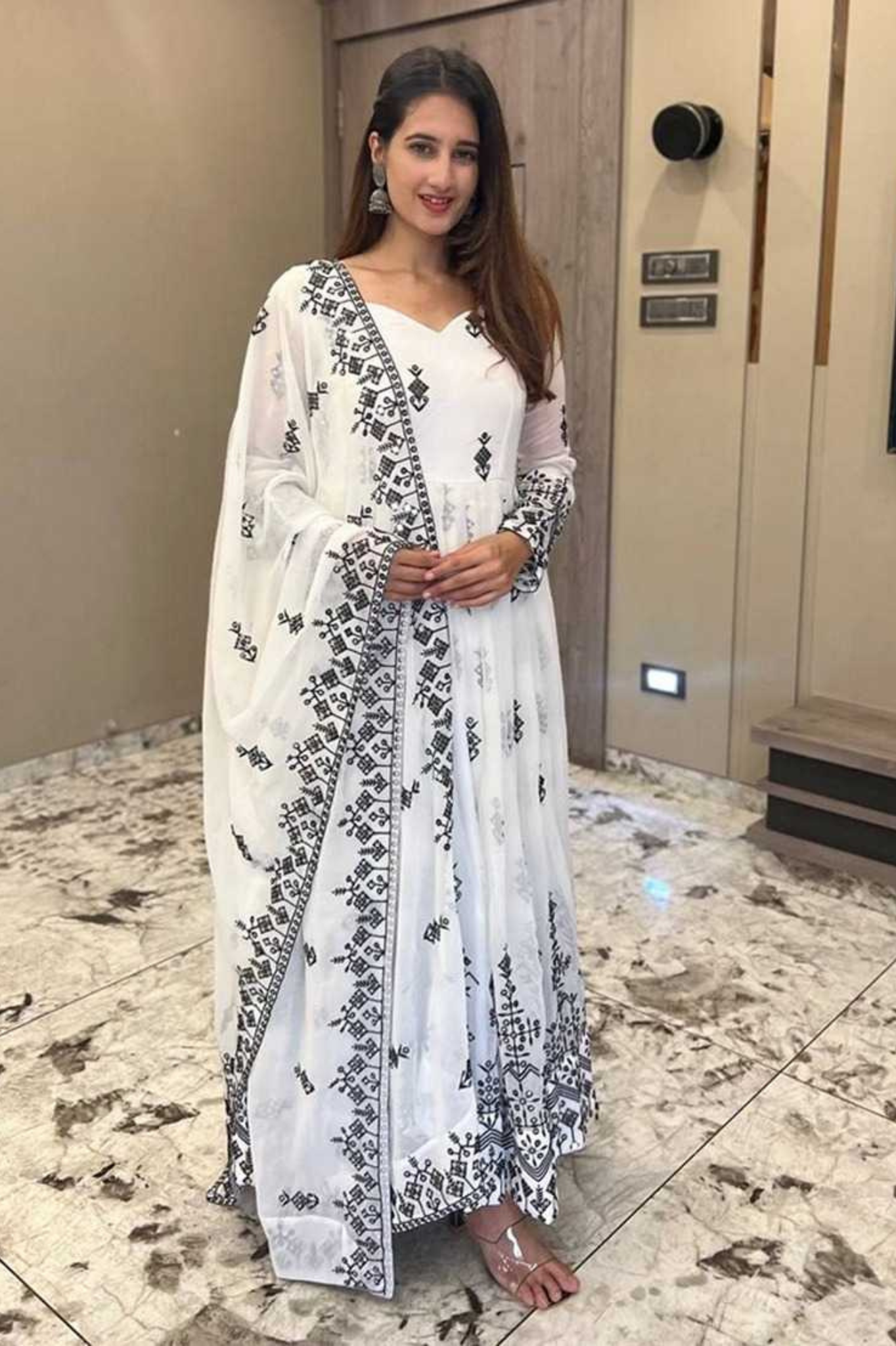 Discover the perfect fusion of tradition and trend with this gorgeous White & Black Anarkali Set. A graceful 3-piece ensemble, it offers both comfort and sophistication, making it a timeless wardrobe essential.