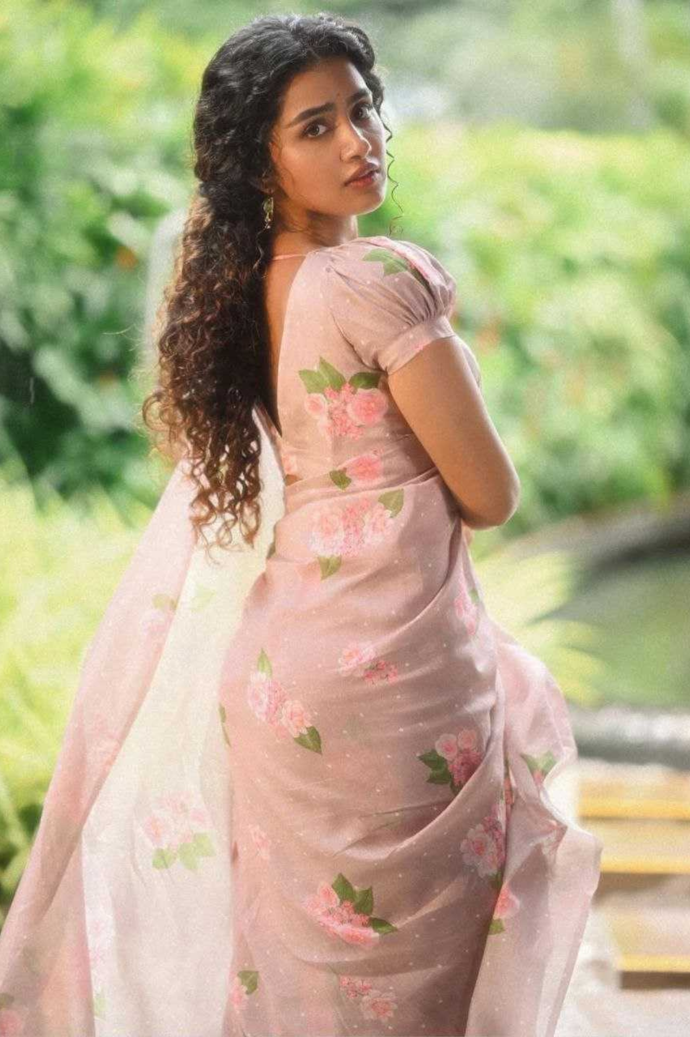 Fabric: Plain Linen Work: Elegant digital floral print all over Saree Length: 6.30 meters (including digital print blouse) Blouse Fabric: Plain Linen with matching digital print Occasion: Perfect for daytime gatherings, festive brunches, and casual celebration.