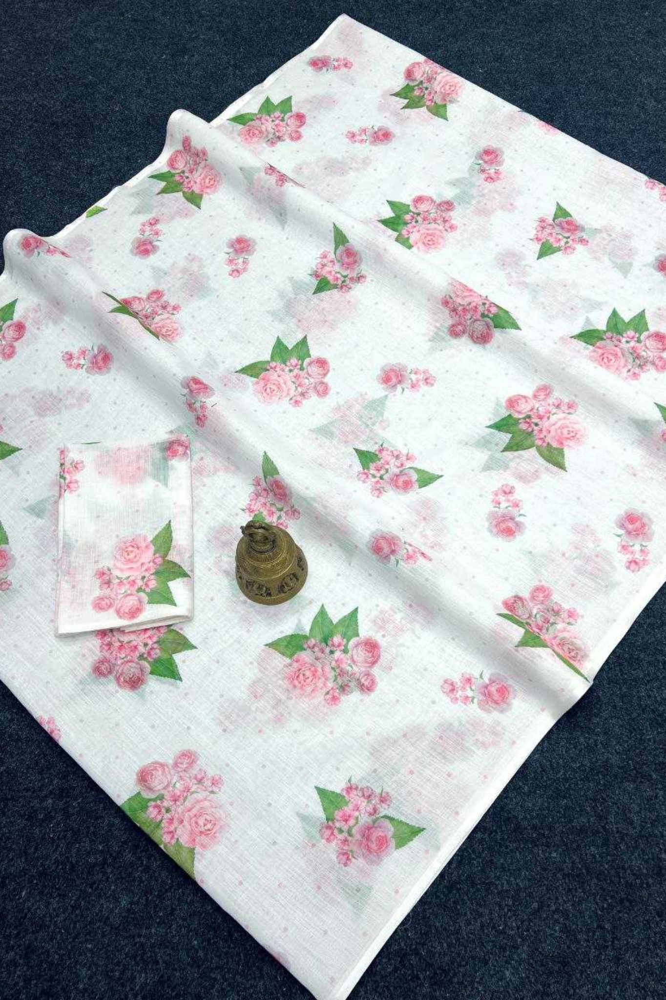 Plain Linen White Saree with Digital Floral Print & Matching Blouse