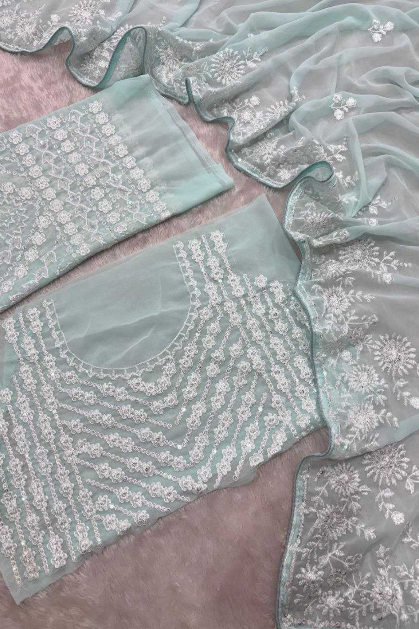 Premium Georgette Saree with Exquisite Thread & Sequins Embroidery Work