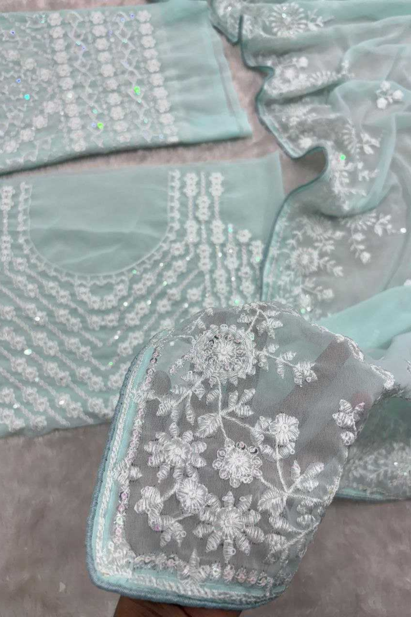 Grace personified — this Premium Georgette Saree is a masterpiece of timeless elegance. Intricately adorned with thread embroidery and shimmering sequins work, it beautifully combines tradition with modern sophistication. The soft drape and refined detailing make it a perfect choice for weddings, receptions, and festive occasions.