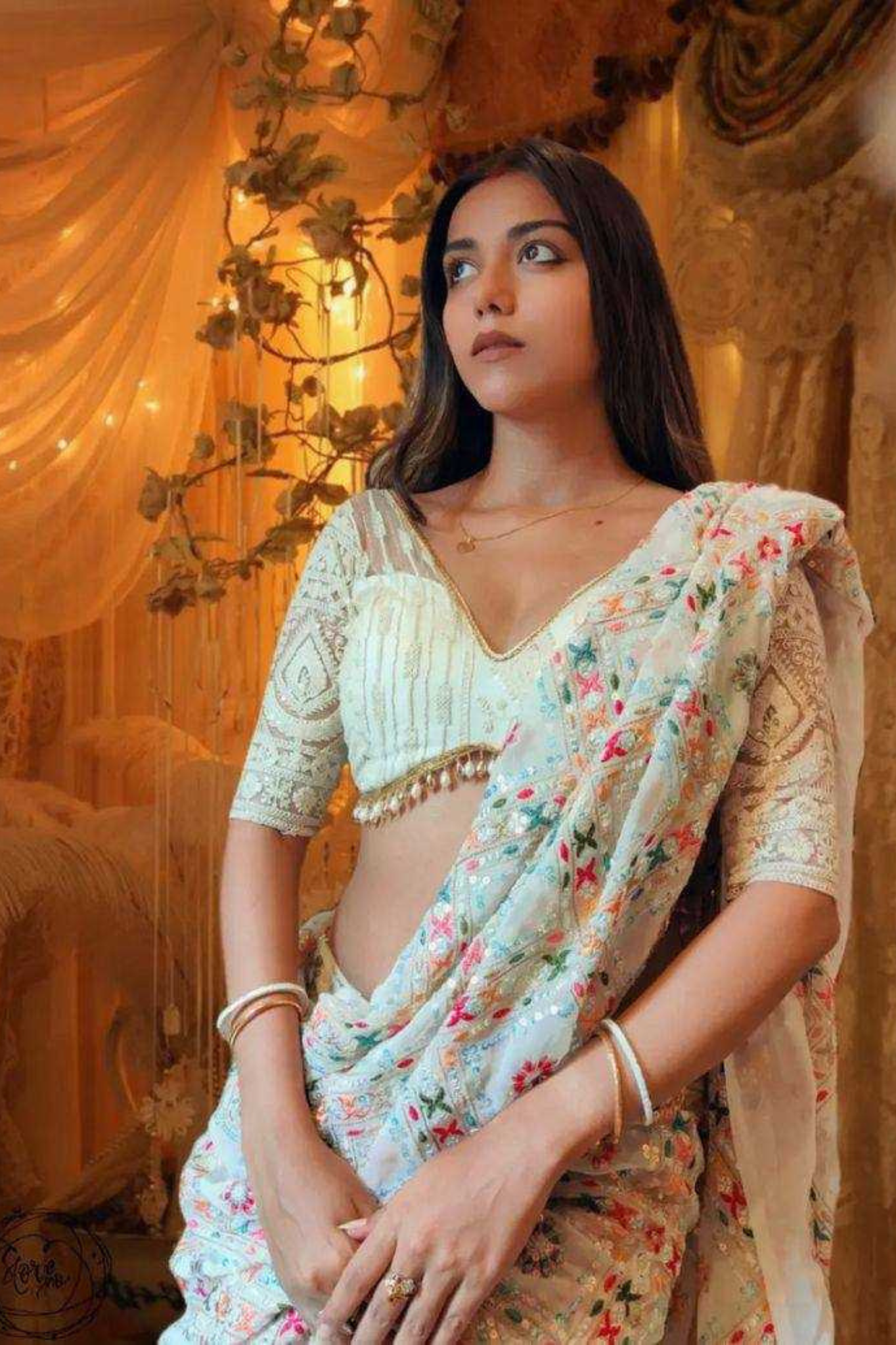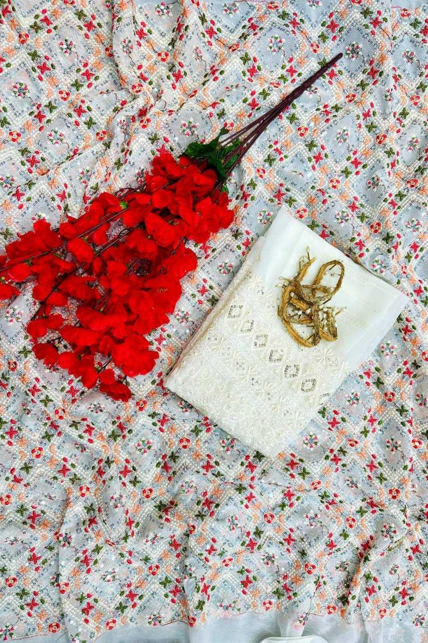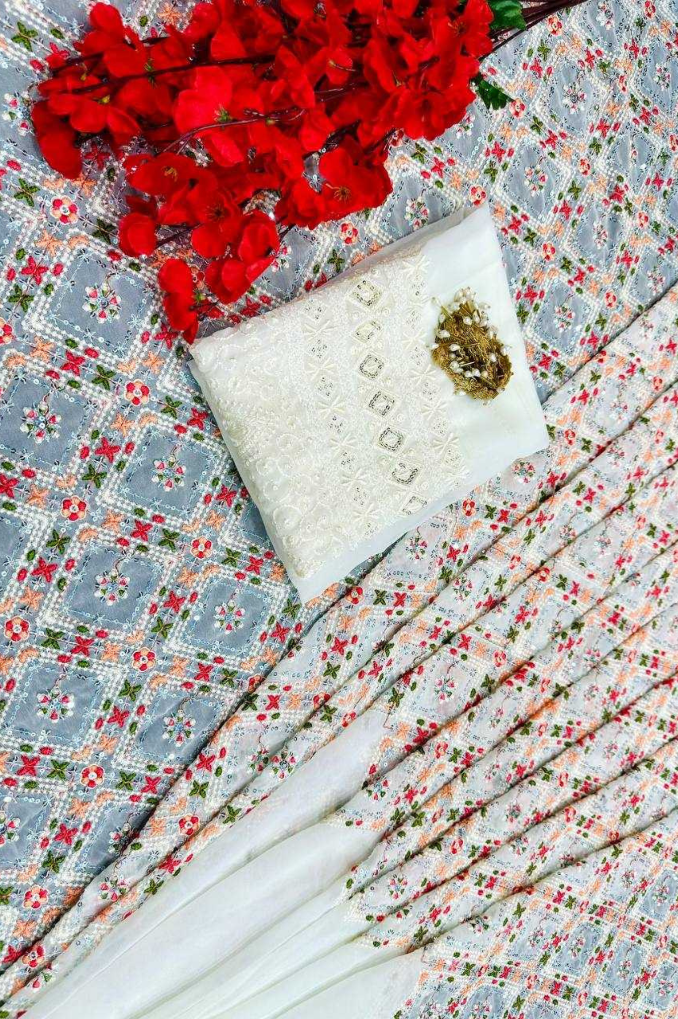 Light as air, lovely as a dream. Embrace effortless elegance with our Chiffon Saree, featuring floral prints kissed with a dainty pearl lace border. Whether it’s a festive brunch or a graceful evening look, this saree lets you float through the moment in soft...