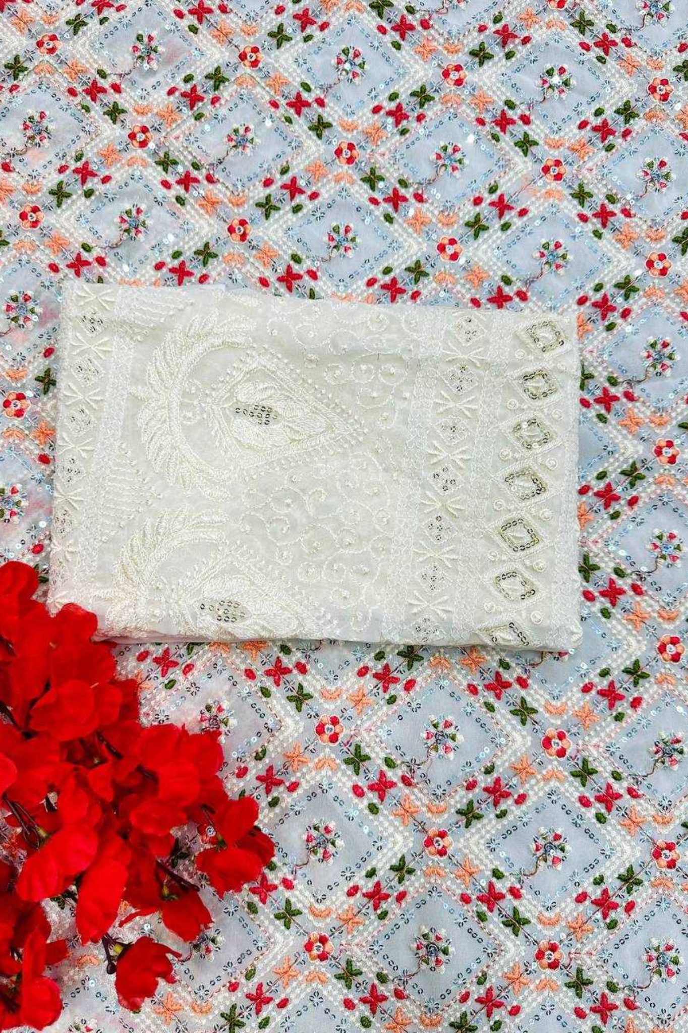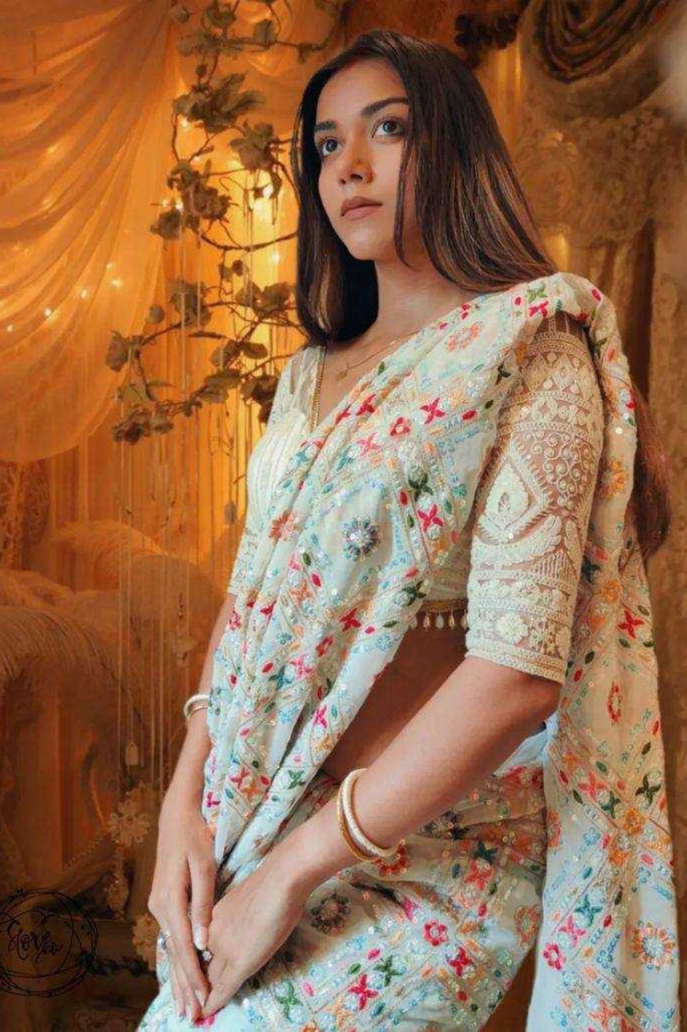 Saree Work: Multicolor Embroidery with Sequins Work